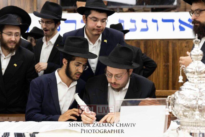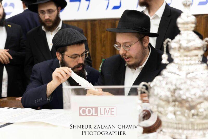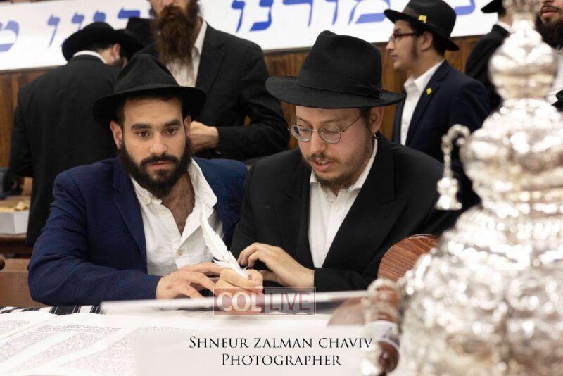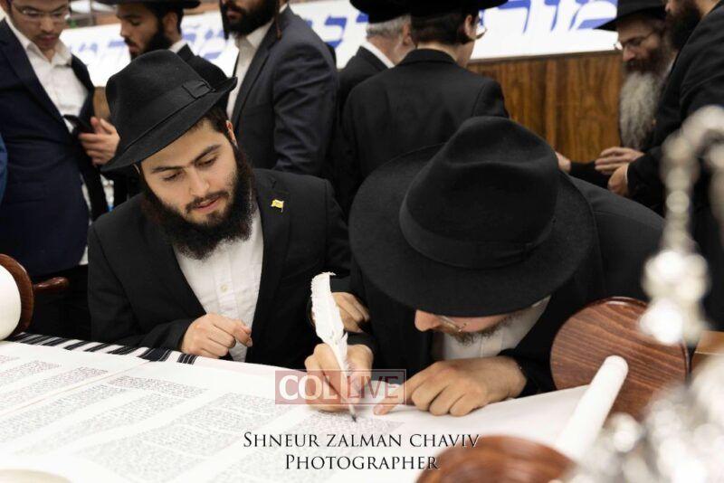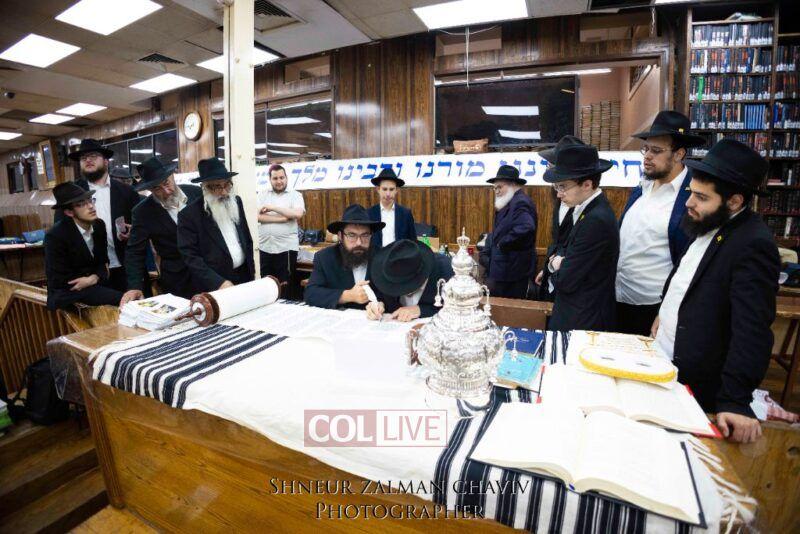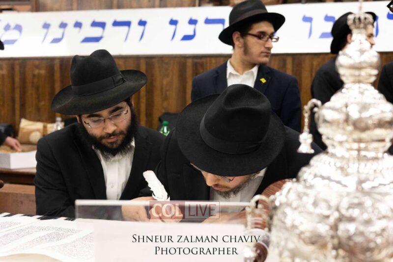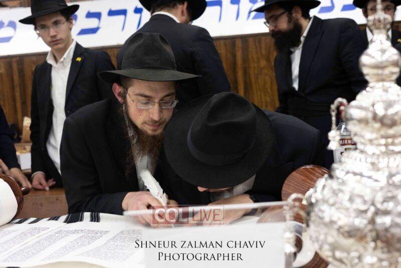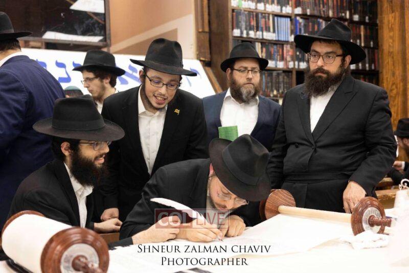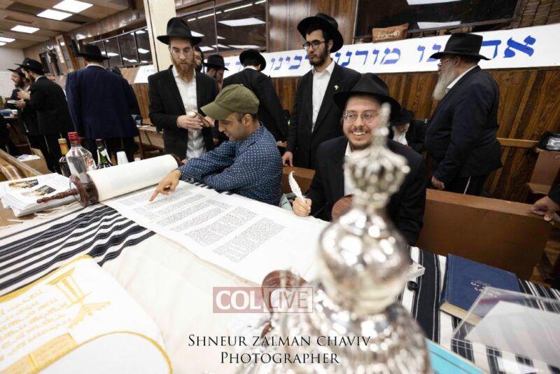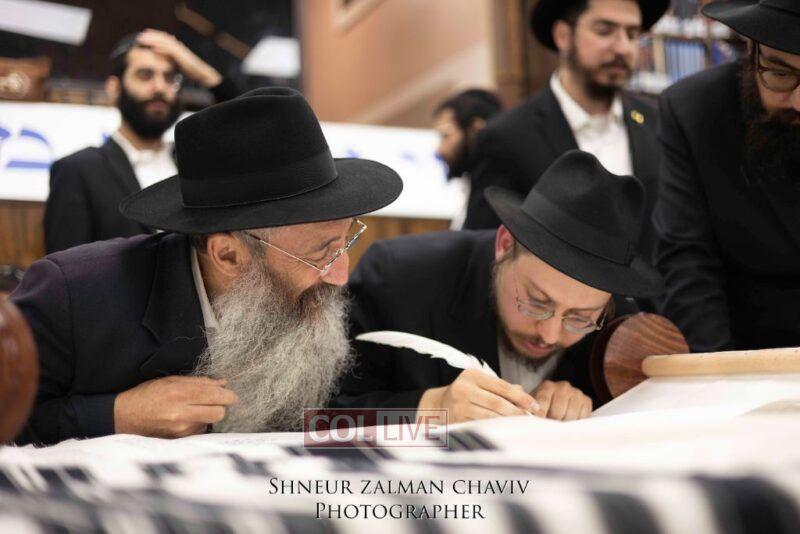 A new Torah was completed in honor of the Rebbe on Chof Av at the main shul of 770 Eastern Parkway by the Reich family of Crown Heights. Photos