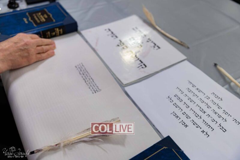 The first letters were written by his family, friends, and community leaders, including members of Hatzalah of Crown Heights and representatives of Central Hatzalah. R’ Zalmy Cohen, a close friend and organizer of the Sefer Torah, recited the Birkas Kohanim and offered a special bracha for a Refuah Sheleima immediately.