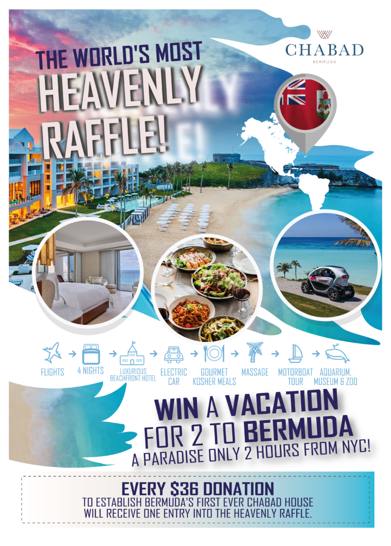 You can win a luxurious trip to Bermuda, and definitely win an abundance of incredible yeshuos, opening the first ever Chabad House on the gorgeous Island of Bermuda