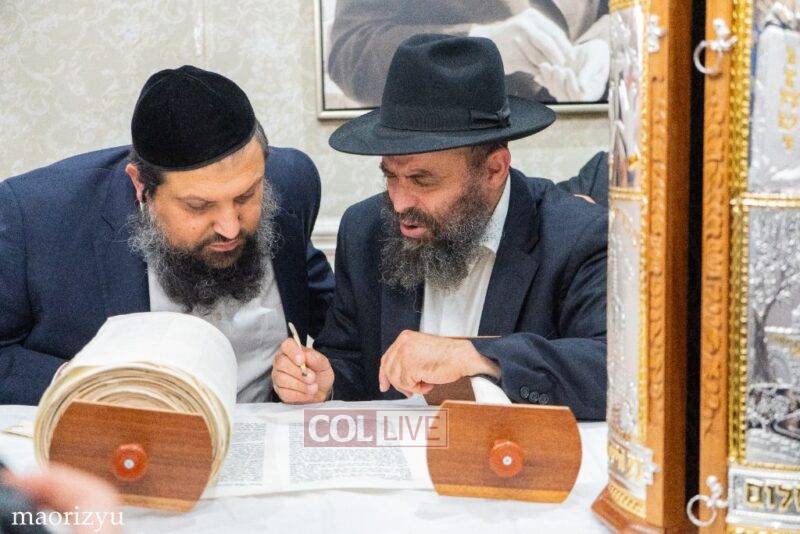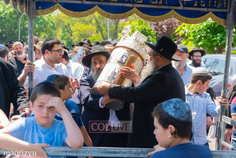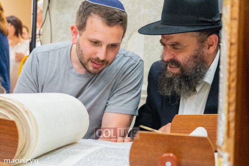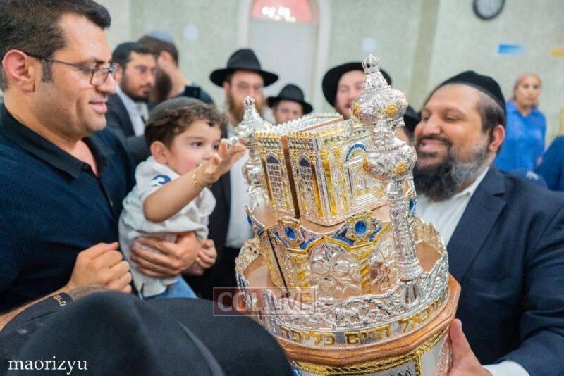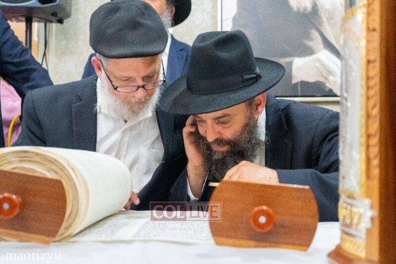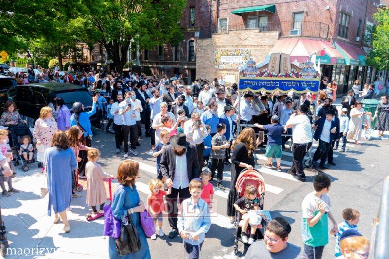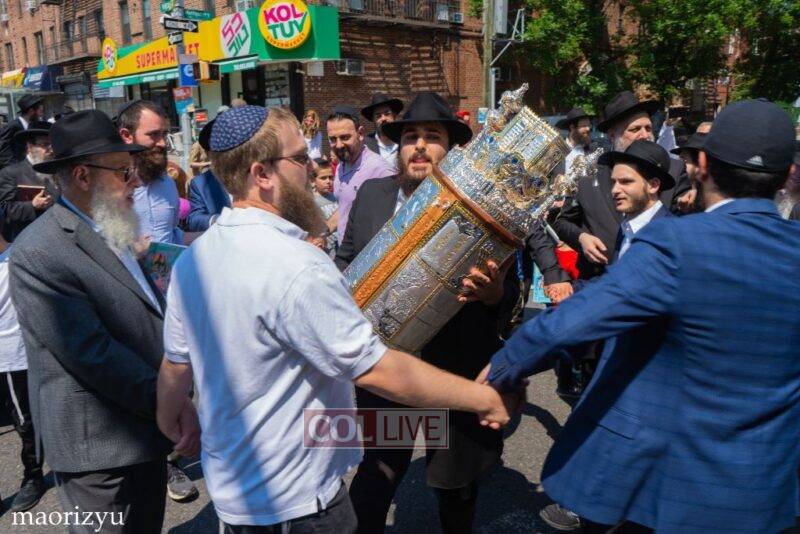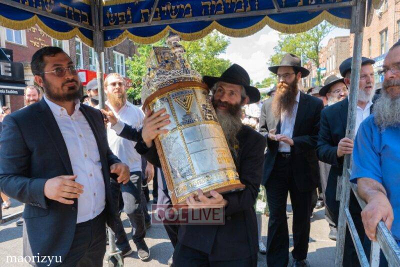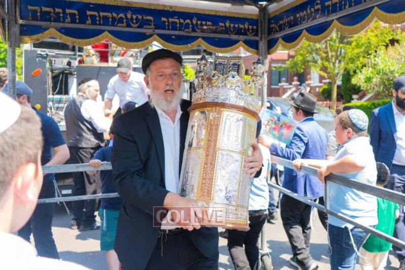 After the completion of the final letters, the Torah was led with singing and dancing to Rabbi Nimni’s Shul and Kolel at 560 Empire Blvd.