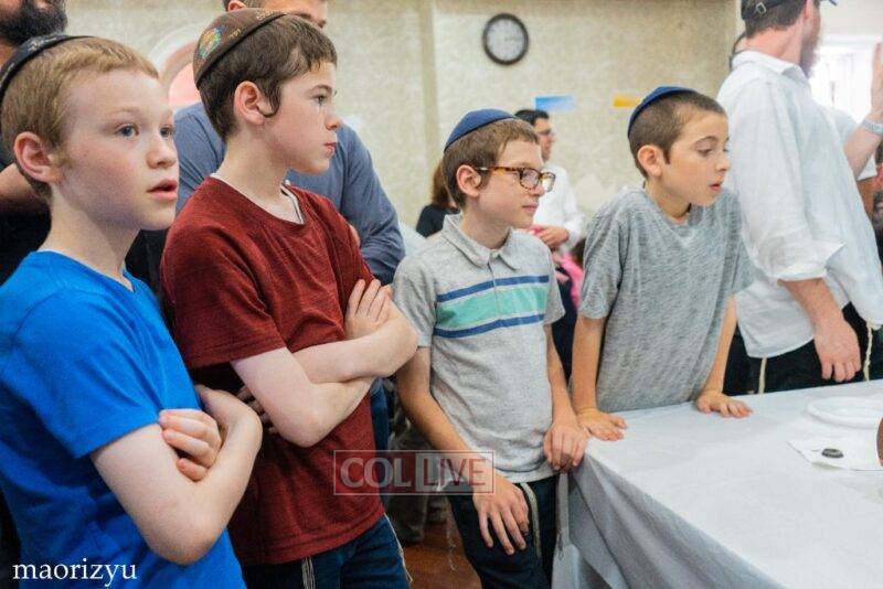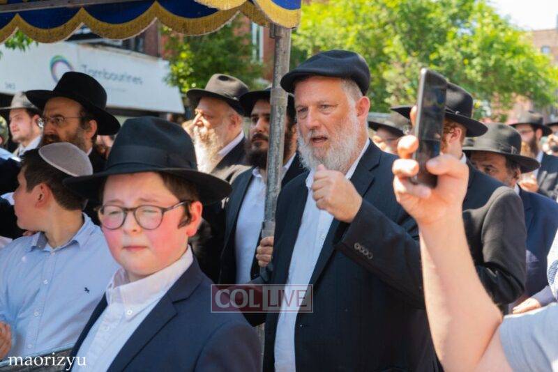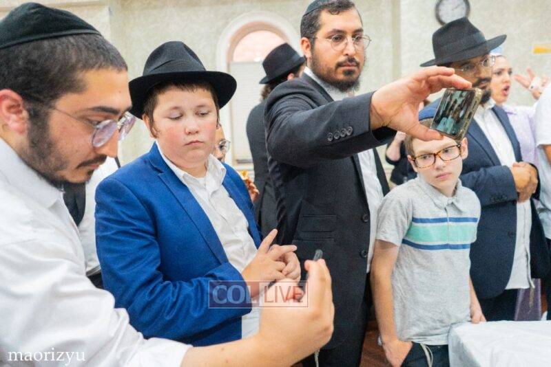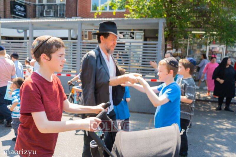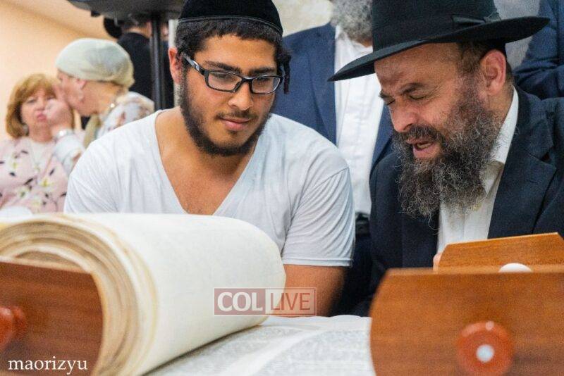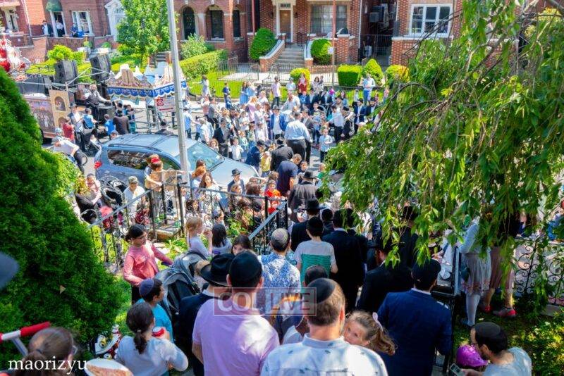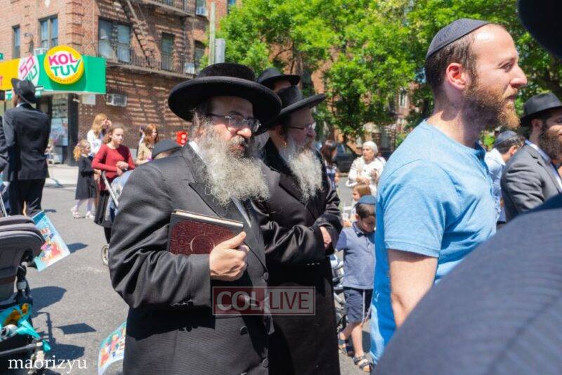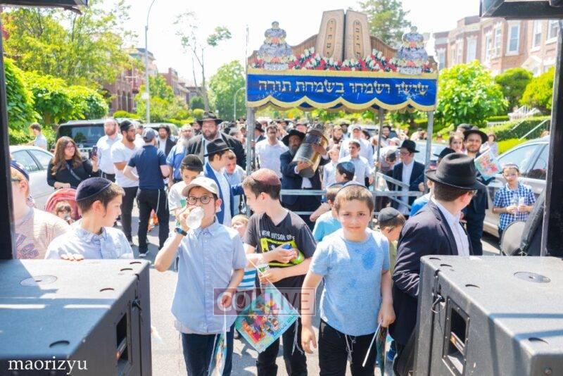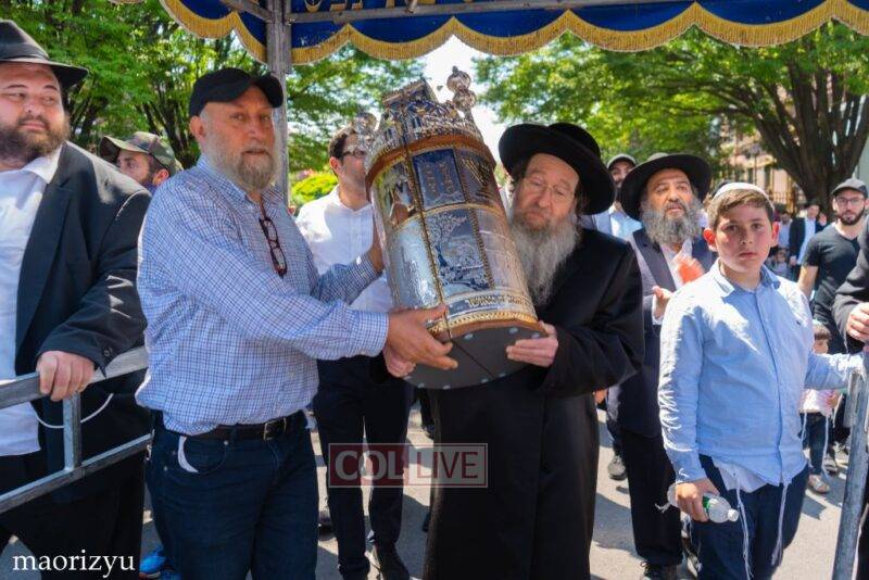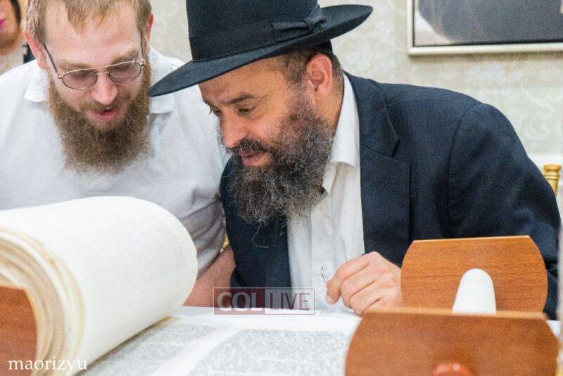 After the completion of the final letters, the Torah was led with singing and dancing to Rabbi Nimni’s Shul and Kolel at 560 Empire Blvd.