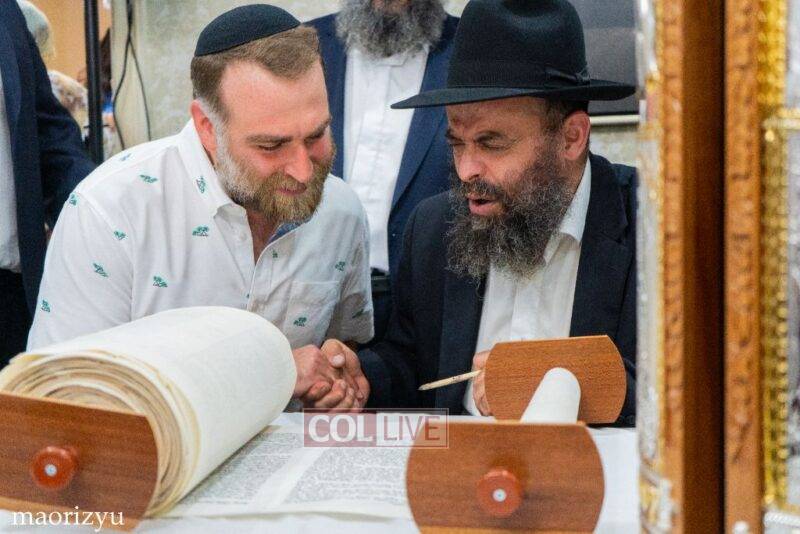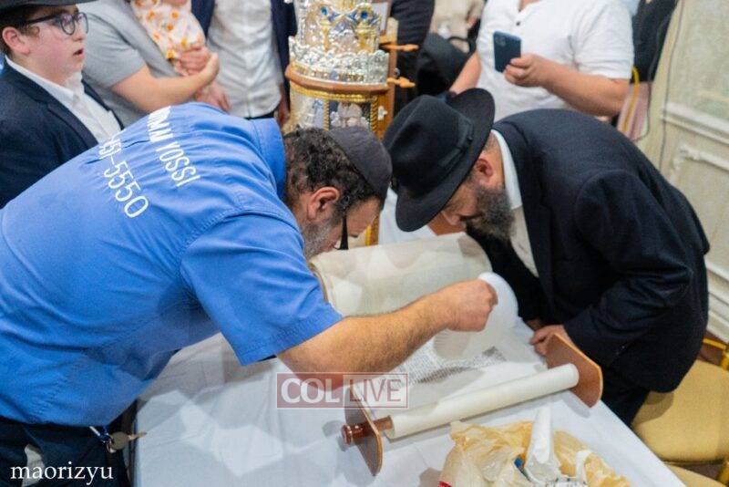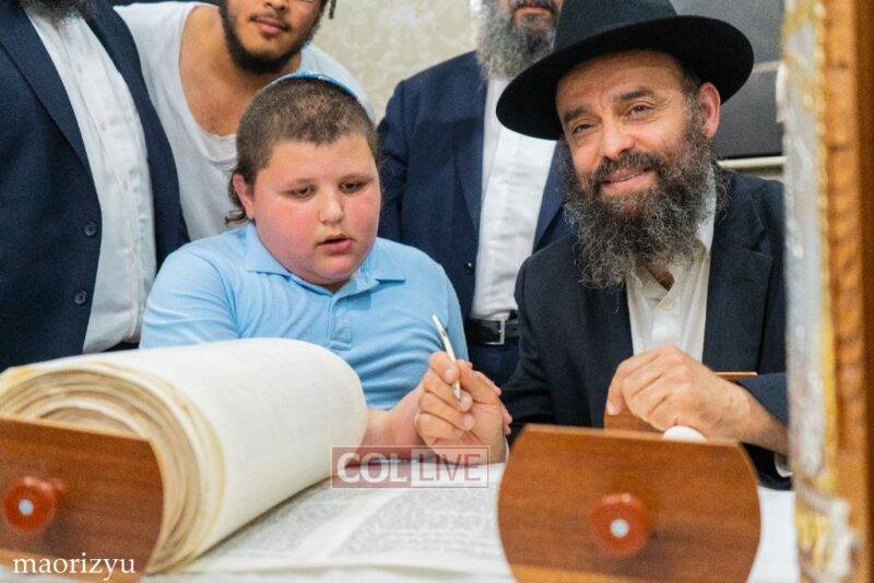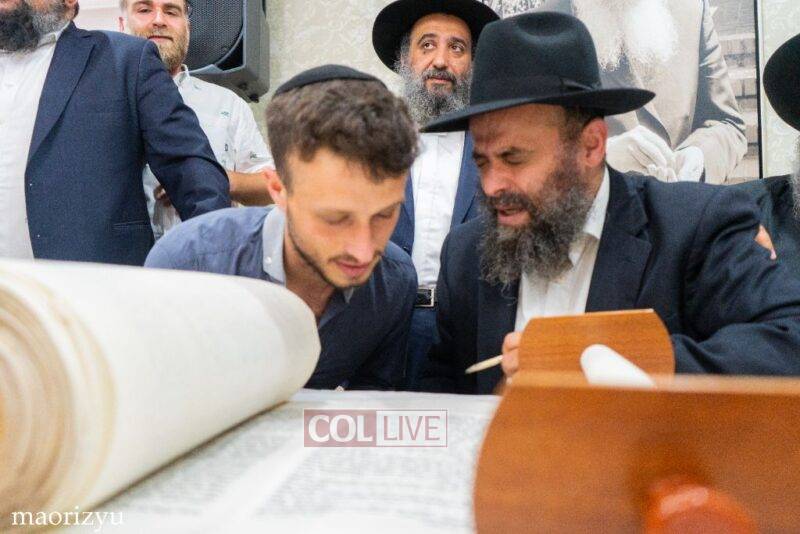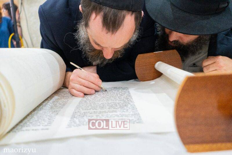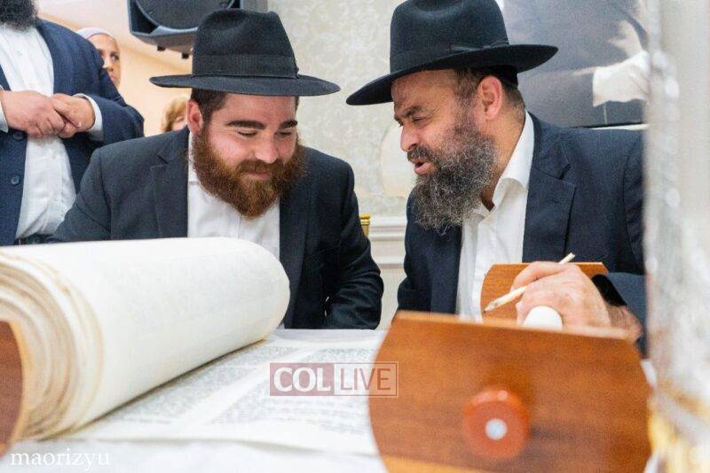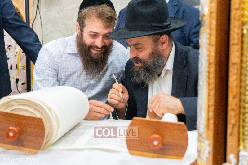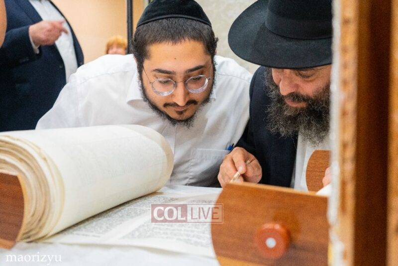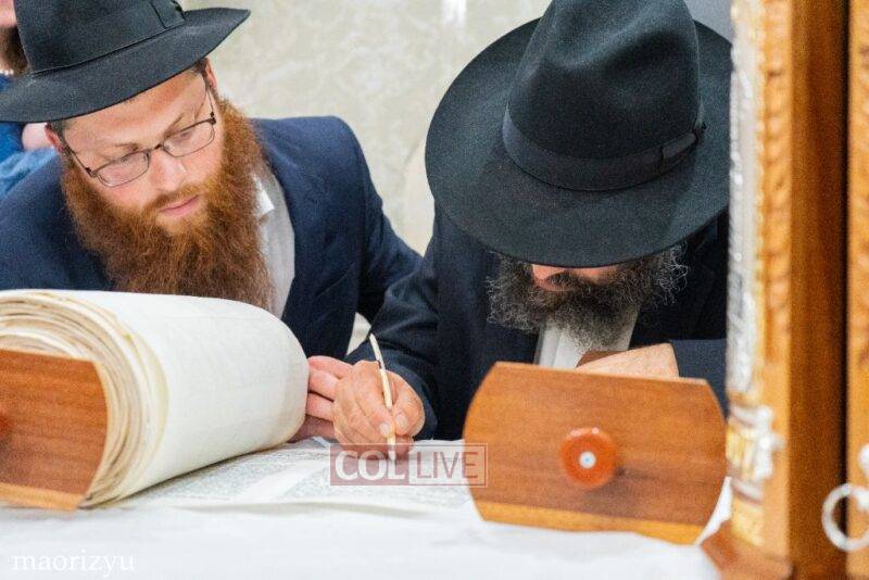 The Nimni family of Crown Heights celebrated the completion of a new Torah Sunday in memory of their father, Rabbi Michoel Nimni obm.
