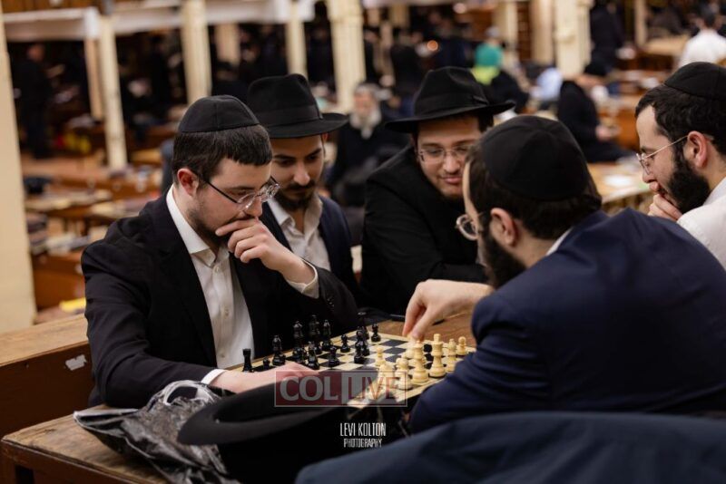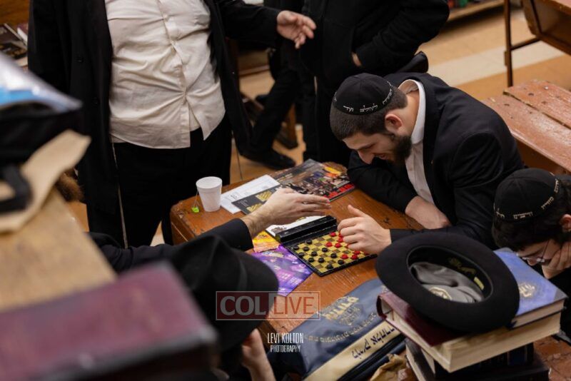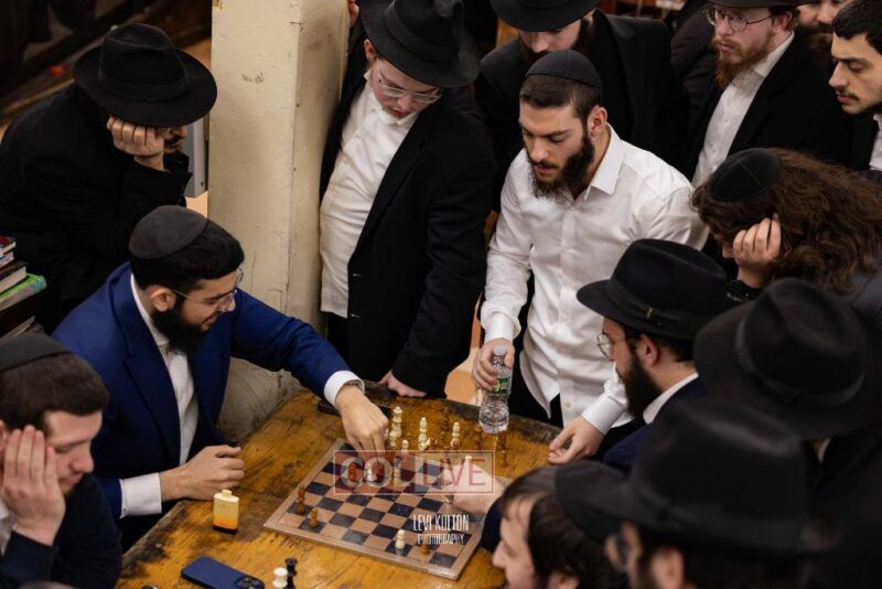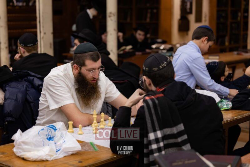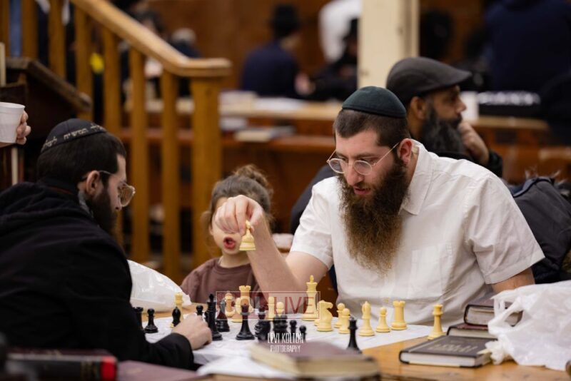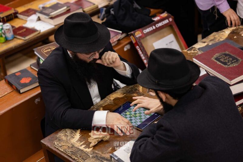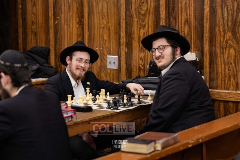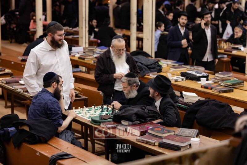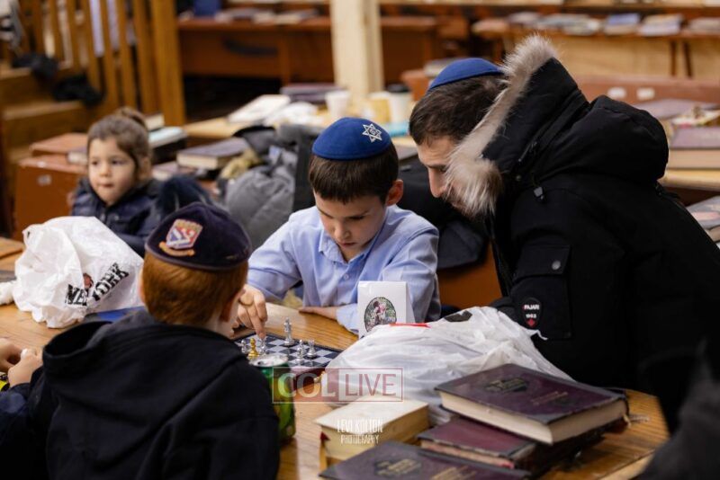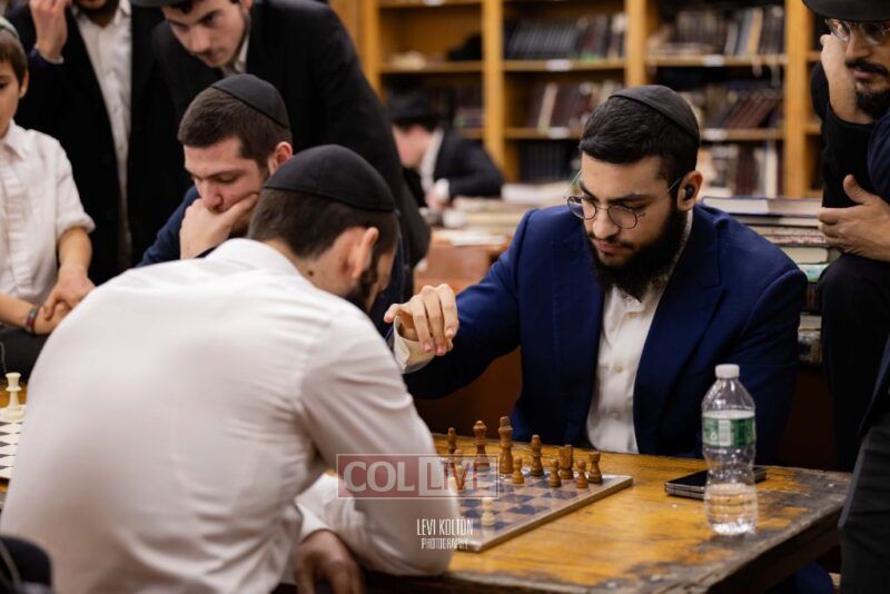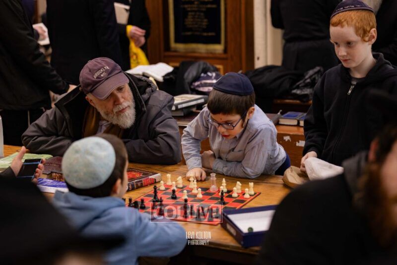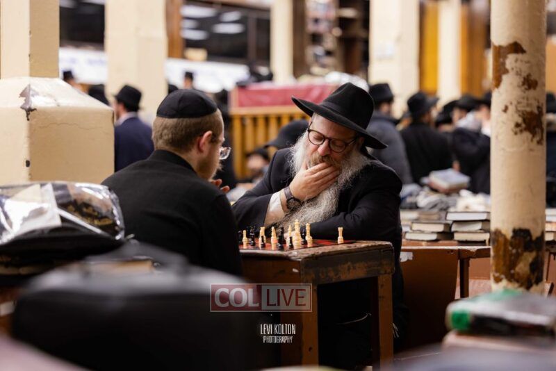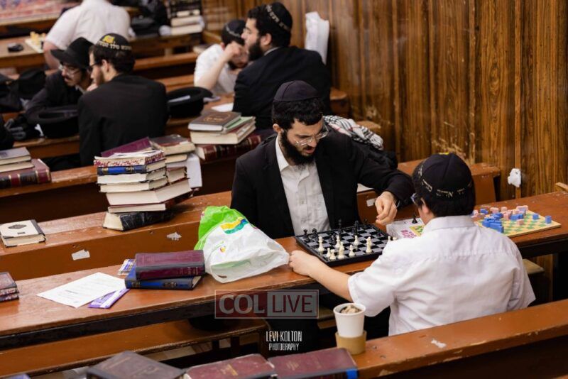 Young and old gathered to play chess games in 770 in Crown Heights on Sunday night, as the Chabad custom is not to learn on "Nittel Nacht." Photos