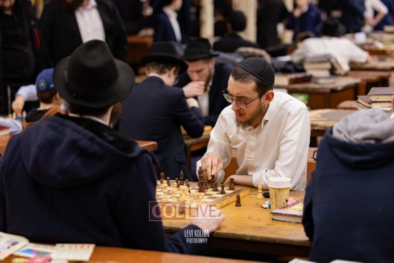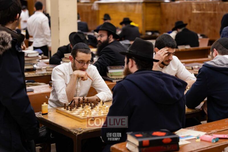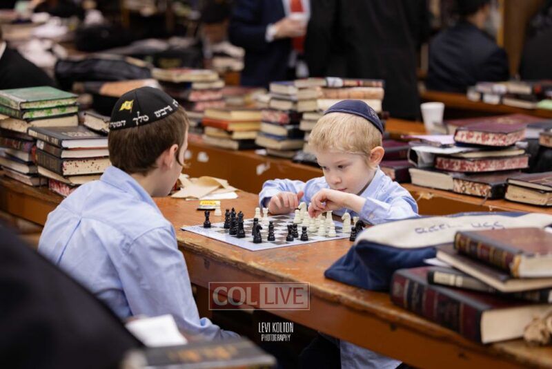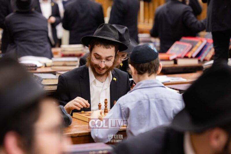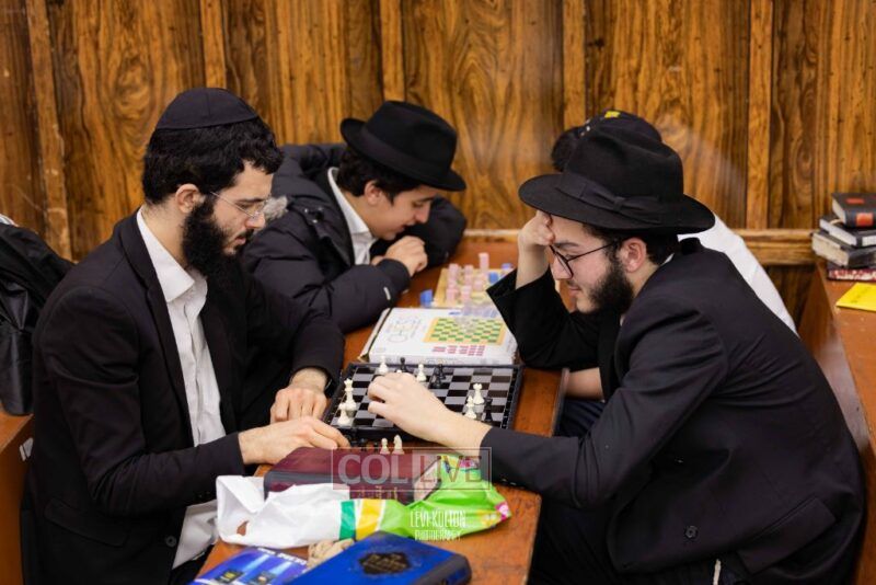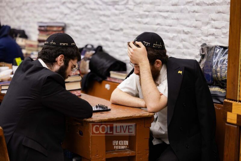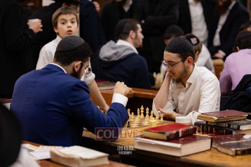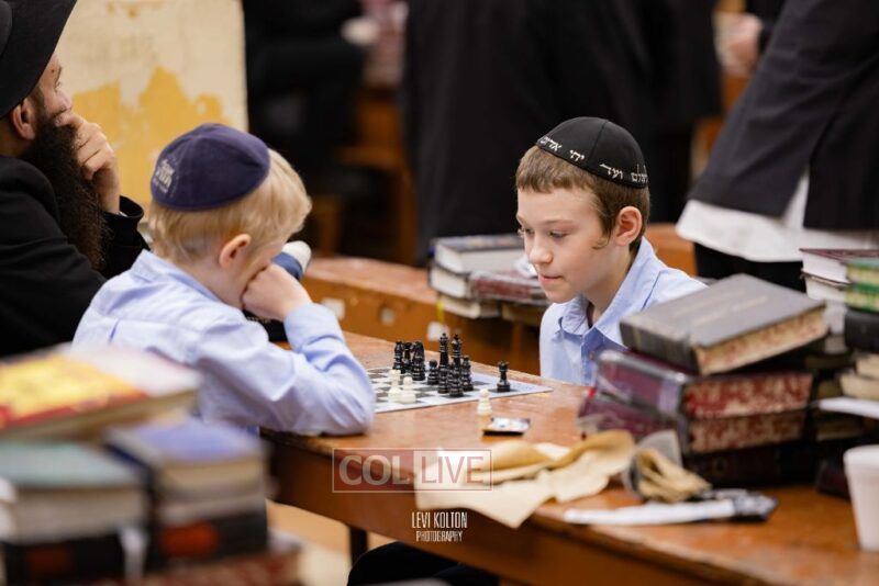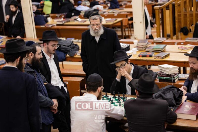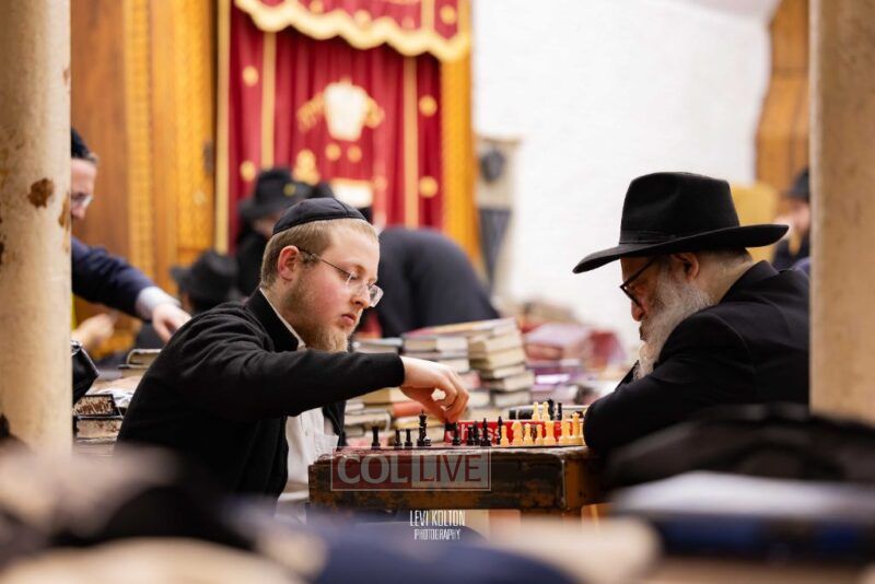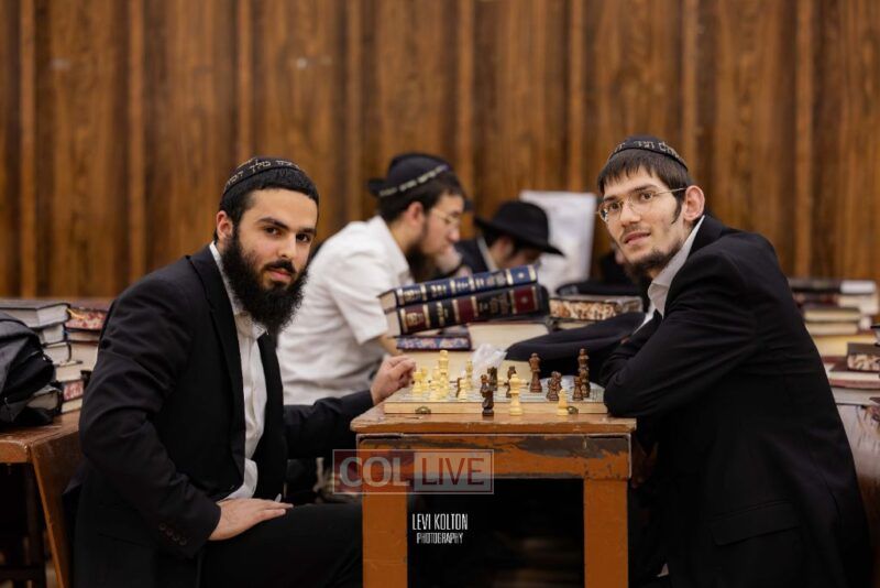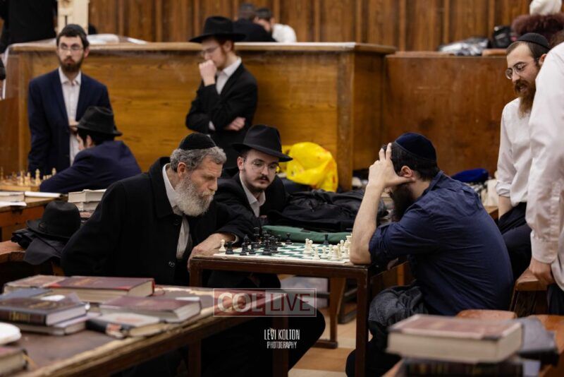Young and old gathered to play chess games in 770 in Crown Heights on Sunday night, as the Chabad custom is not to learn on "Nittel Nacht." Photos