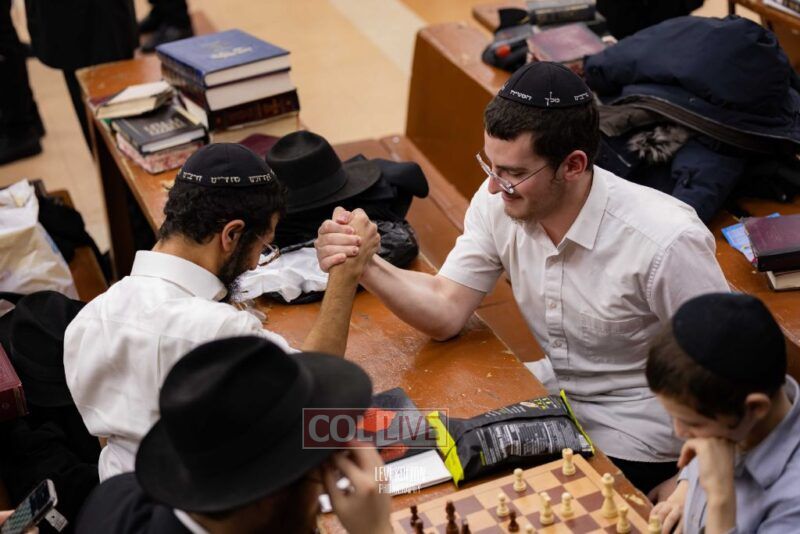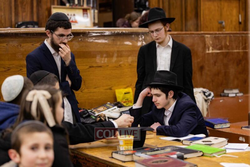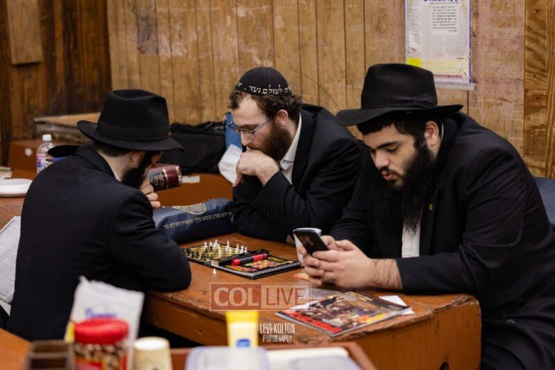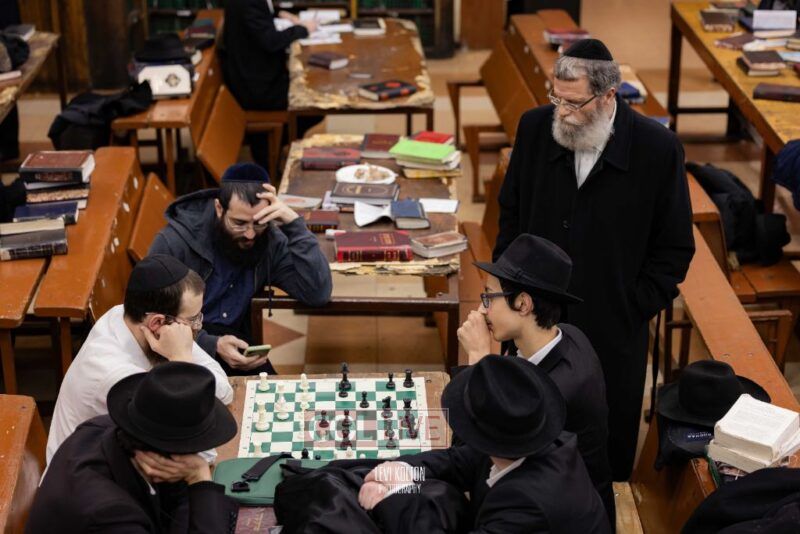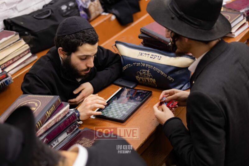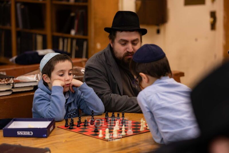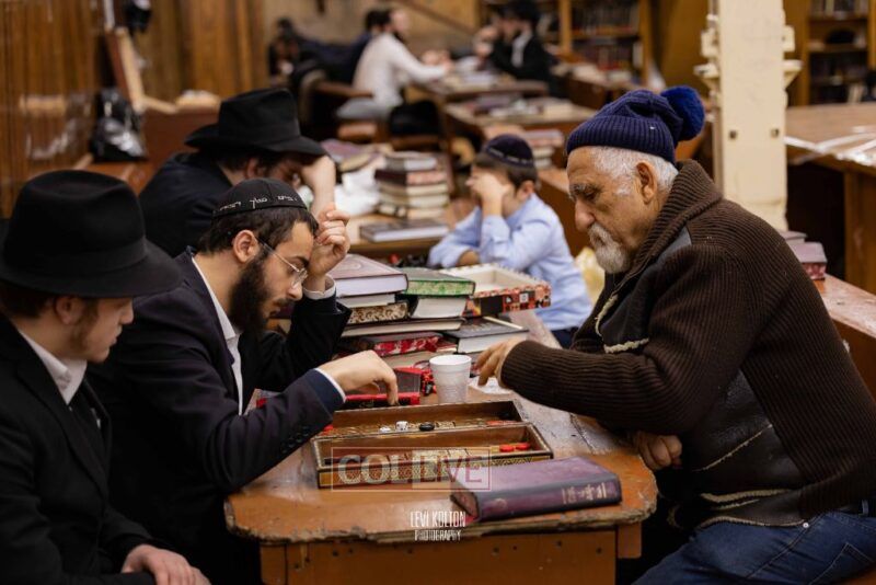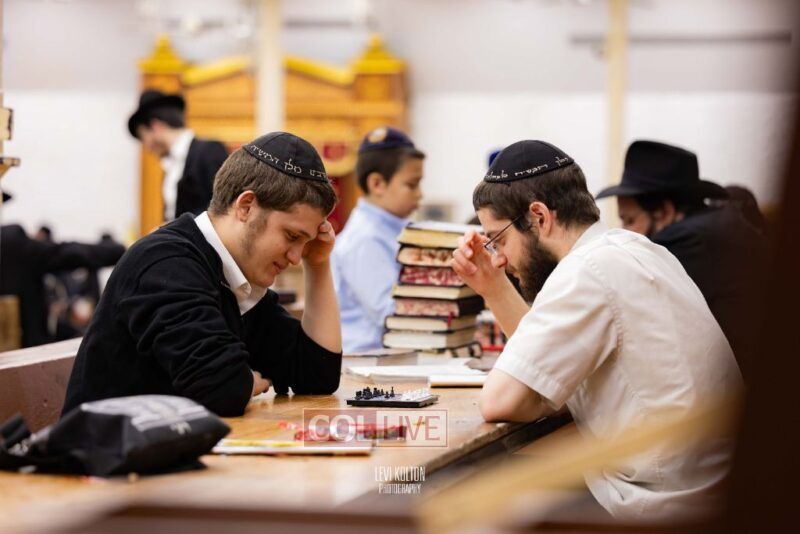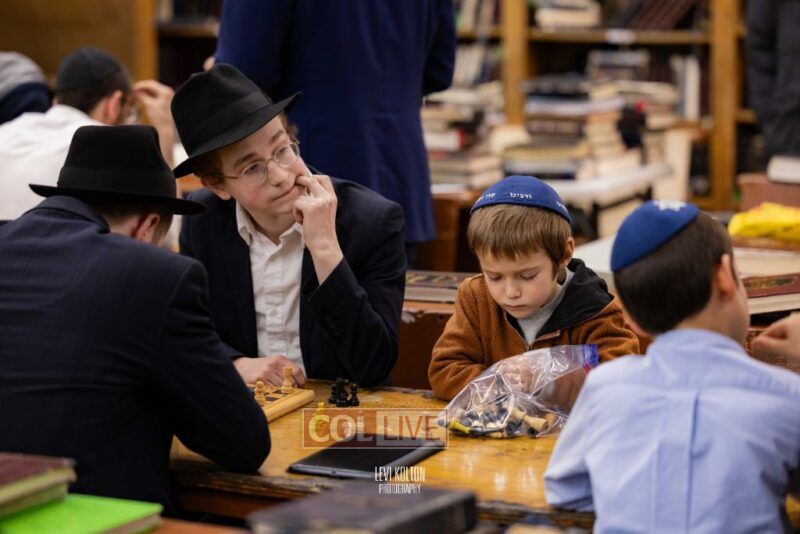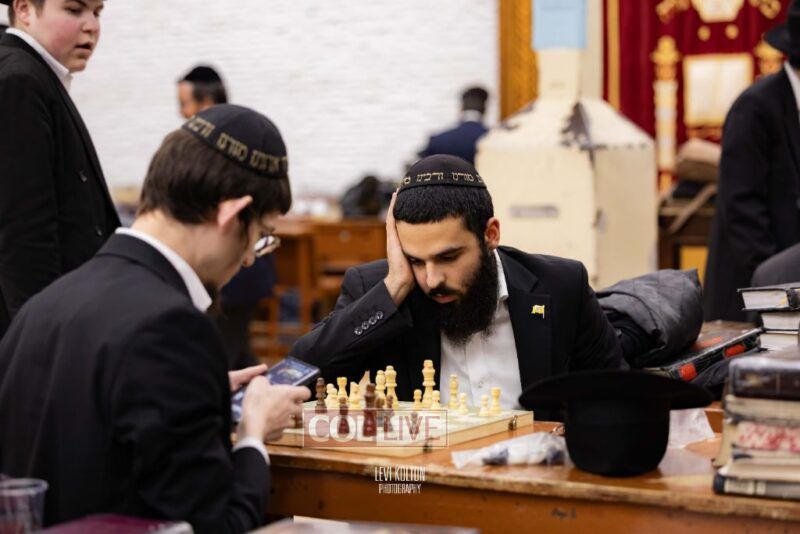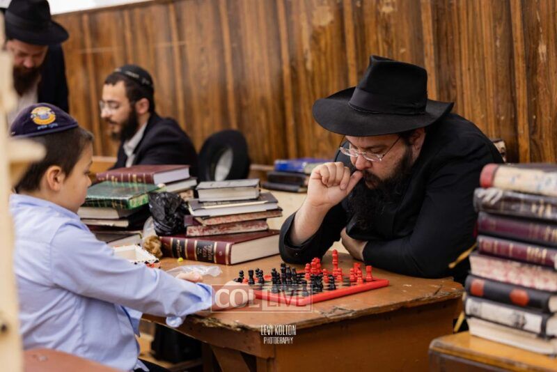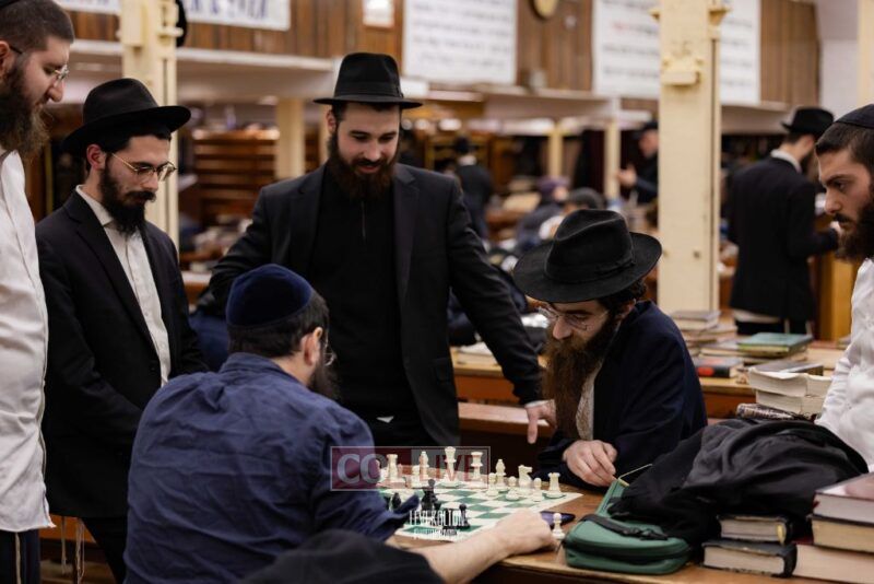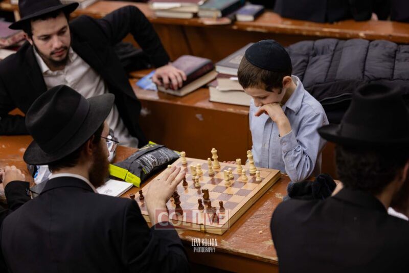 Young and old gathered to play chess games in 770 in Crown Heights on Sunday night, as the Chabad custom is not to learn on "Nittel Nacht." Photos