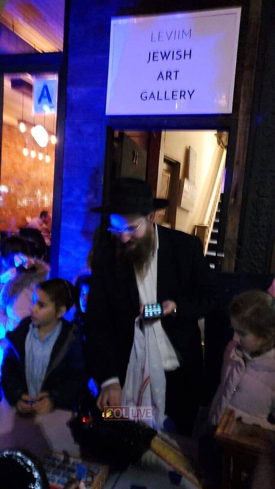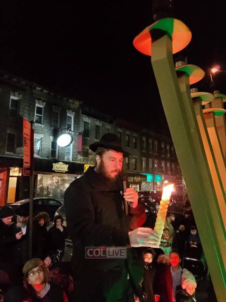 A public Menorah lighting was held in North Crown Heights by the Lincoln Place Shul, hosted by the Leviim Art Gallery.