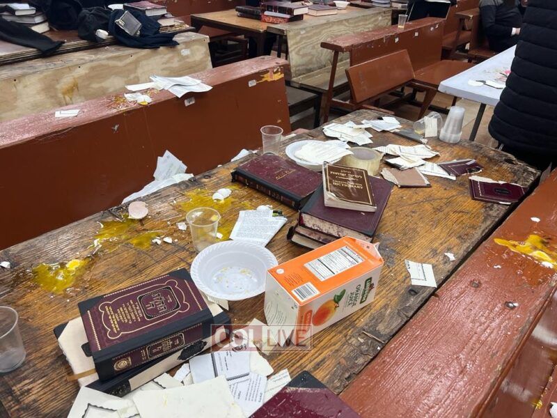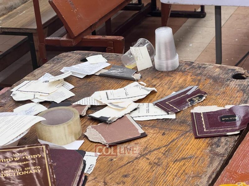 The youngsters also tore apart and desecrated seforim of Chassidus, which referred to the Rebbe with the title “Zya” and similar titles written about tzadikim who passed away. The torn pages were then scattered around.