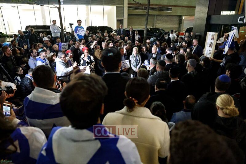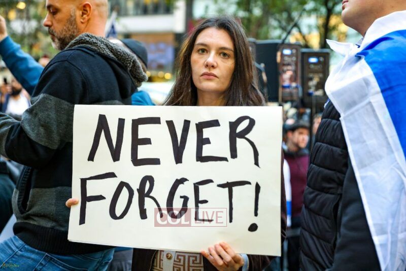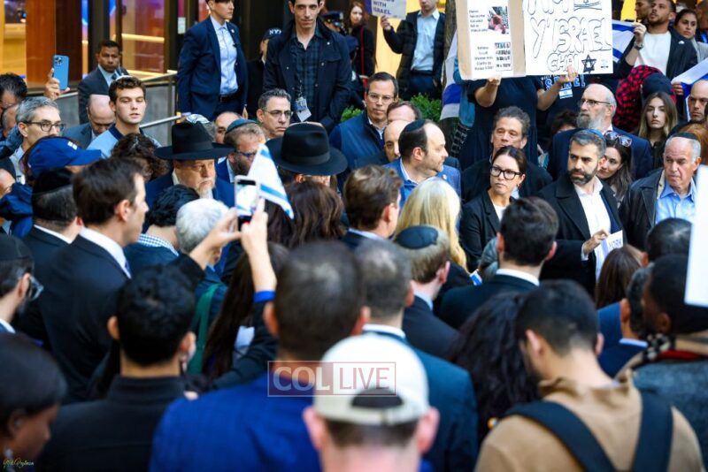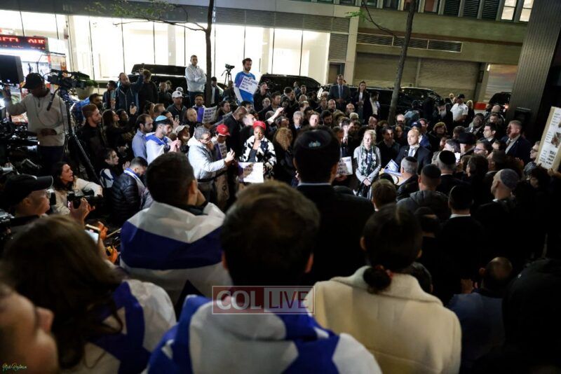 Americans linked arms with Israelis as they sang the Israeli national anthem in an attempt to find solidarity with one another after Israel’s darkest day.