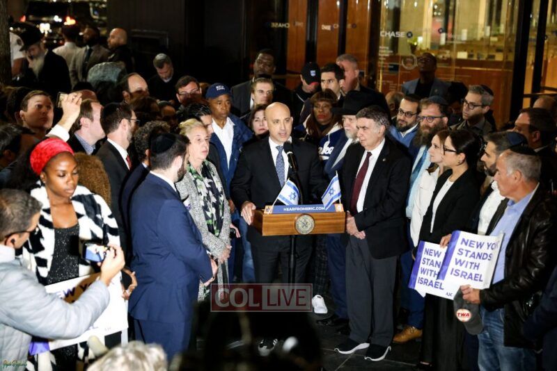 Horrified NYC leaders gathered in Times Square Monday to show support for the Israeli community in New York City, reeling over the lives lost during Hamas’ surprise invasion of Israel over the weekend.