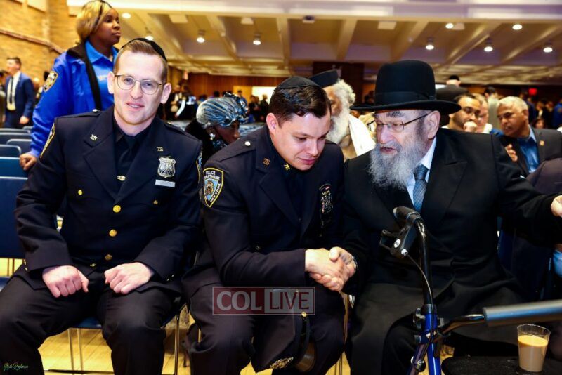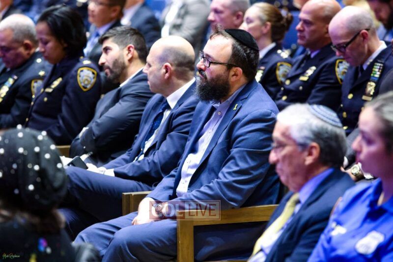 Notable Crown Heights leaders in attendance included NYPD Honorary Commissioner Deborah Halberstam who received beautiful public acknowledgment for her service, NYPD Clergy Liaison Chanina Sperlin, members of Crown Heights Shmira, and Crown Heights Shomrim Coordinators Gadi Hershkop and Mendy Hershkop and an array of other Hatzalah and Shomrim leaders.