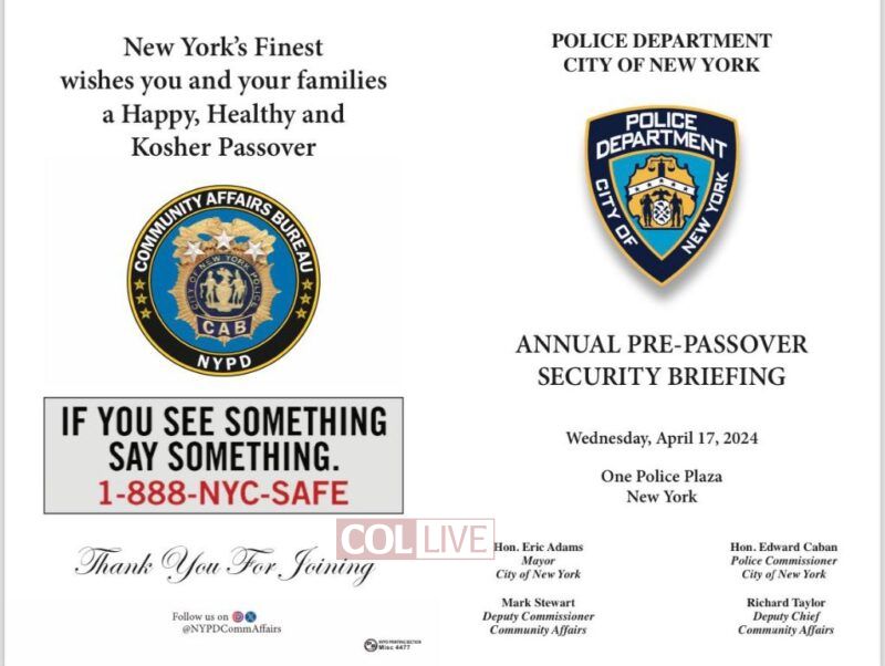 New York Police Departement Commissioner Edward A. Caban and other NYPD and Mayoral officials joined with community leaders for a pre-Pesach Security Briefing at NYPD Police Headquarters on Wednesday, April 17, 2024.