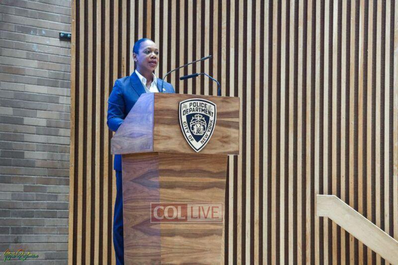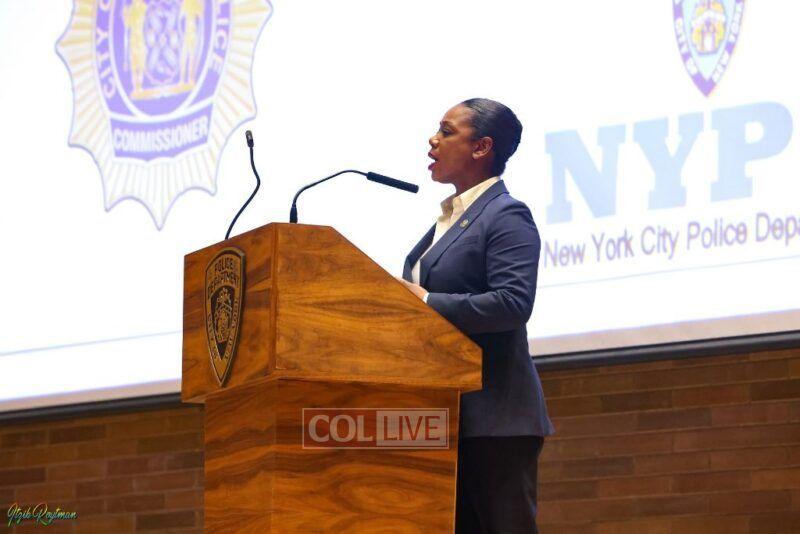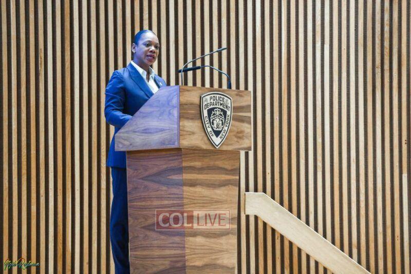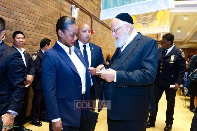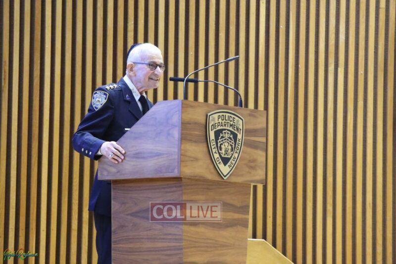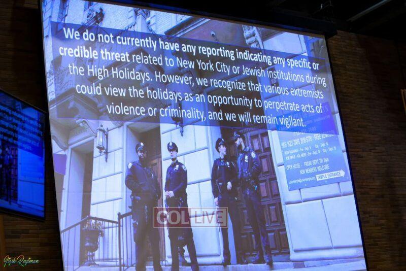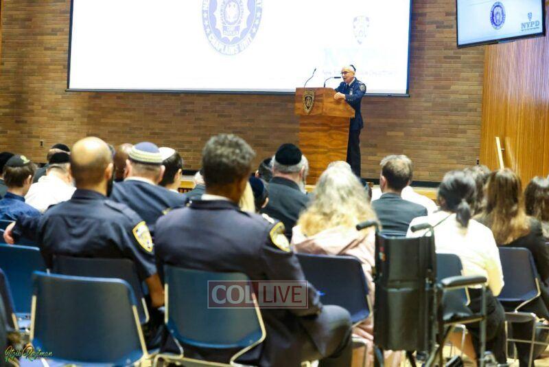 Police Commissioner Keechant Sewell joined a host of NYPD officials to greet Jewish community members and advise them on protocols heading into the occasions with an annual briefing.