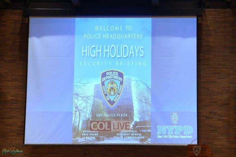 NYPD top brass and Mayor Eric Adams held a special security briefing for Jewish faith leaders Wednesday afternoon at One Police Plaza in preparation for the High Holy Days.