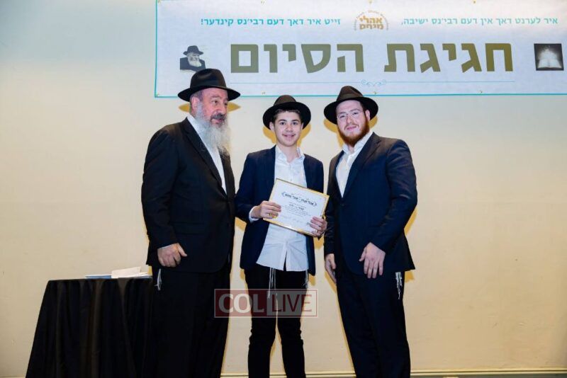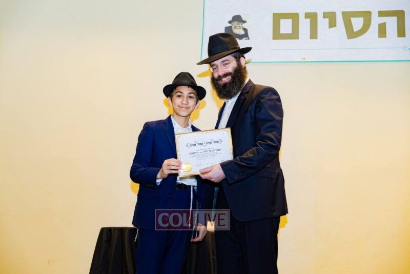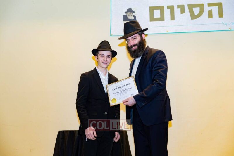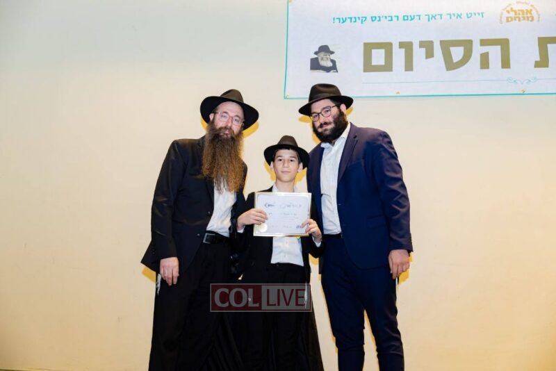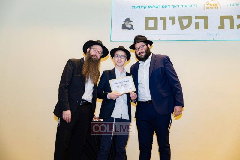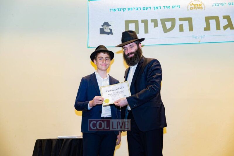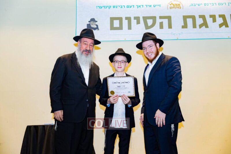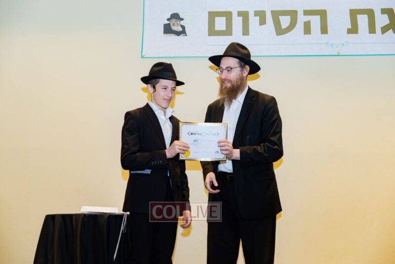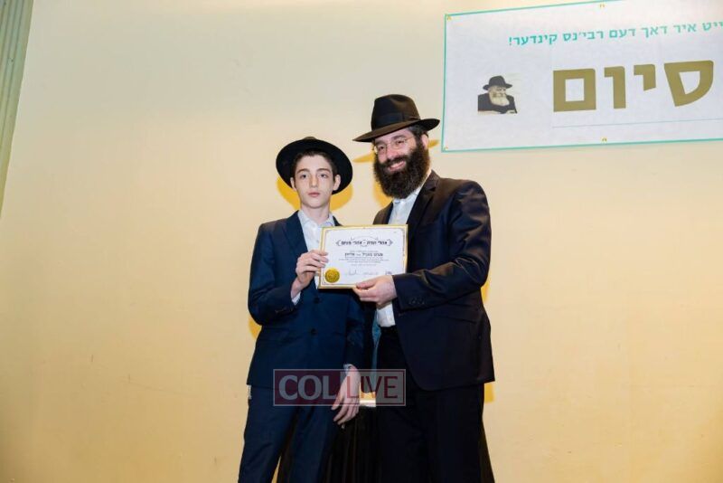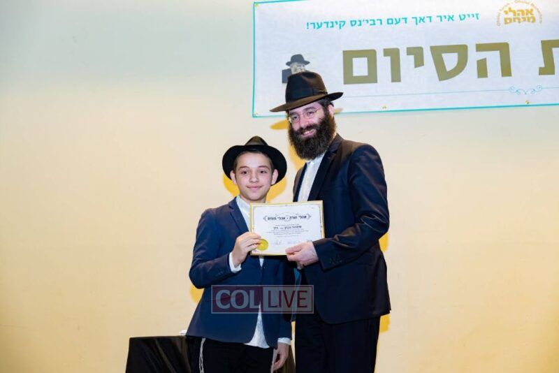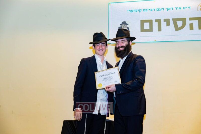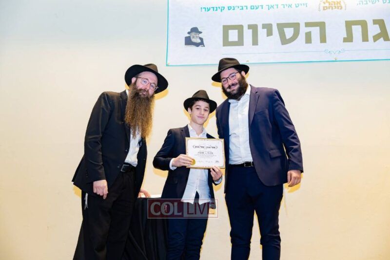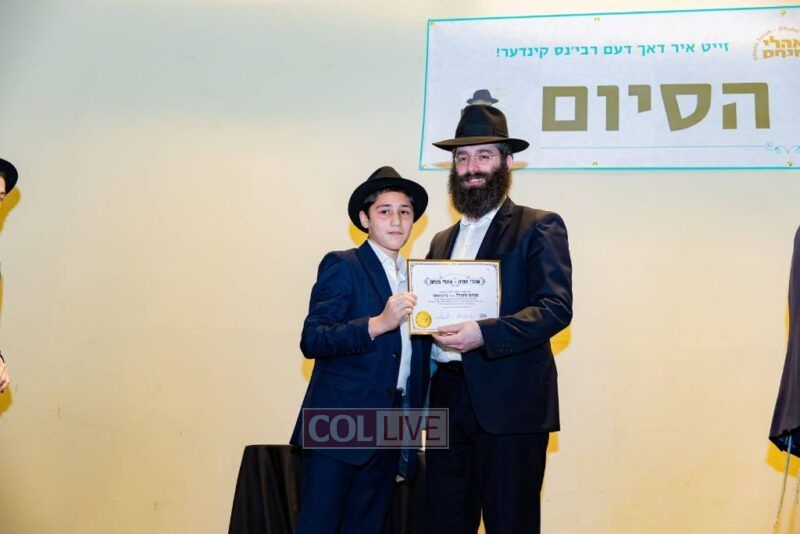 The graduation included a few Siymim made by students; Hatomim Mendel Feldman made a Siyum on a whole Masechta learned this year, Yankel Tzfasman made on Maseches Sota, and Shloime Katz on the entire Sefer Hamada.