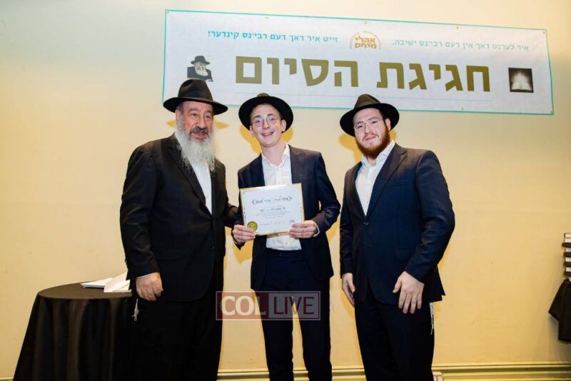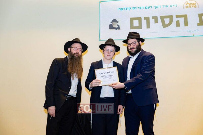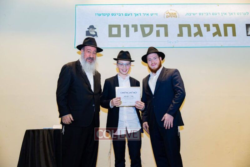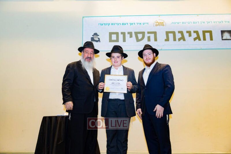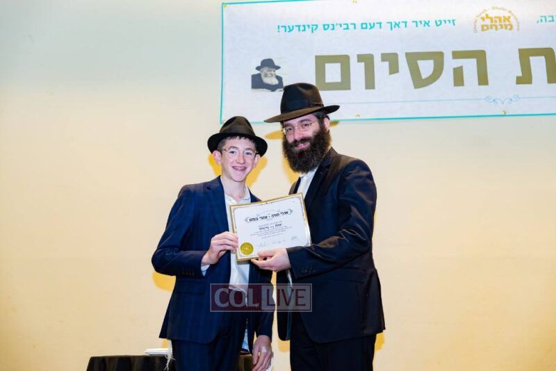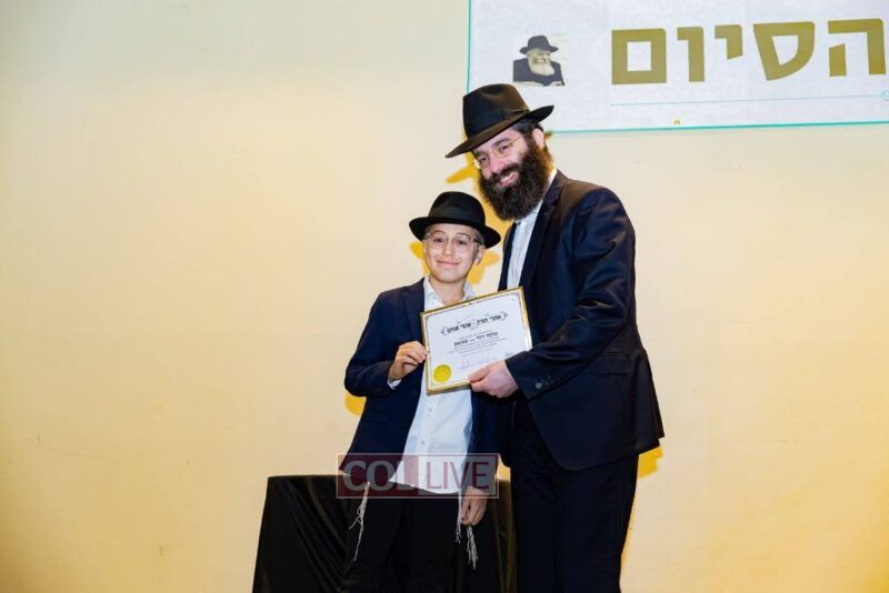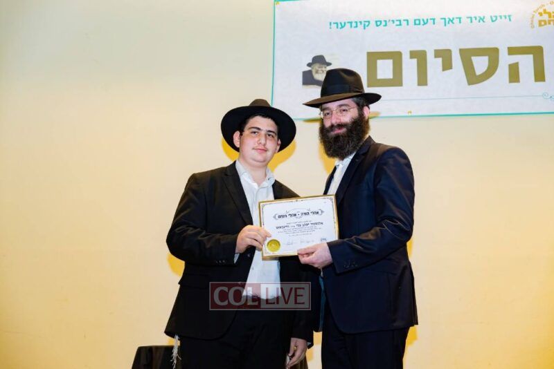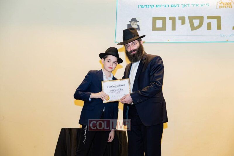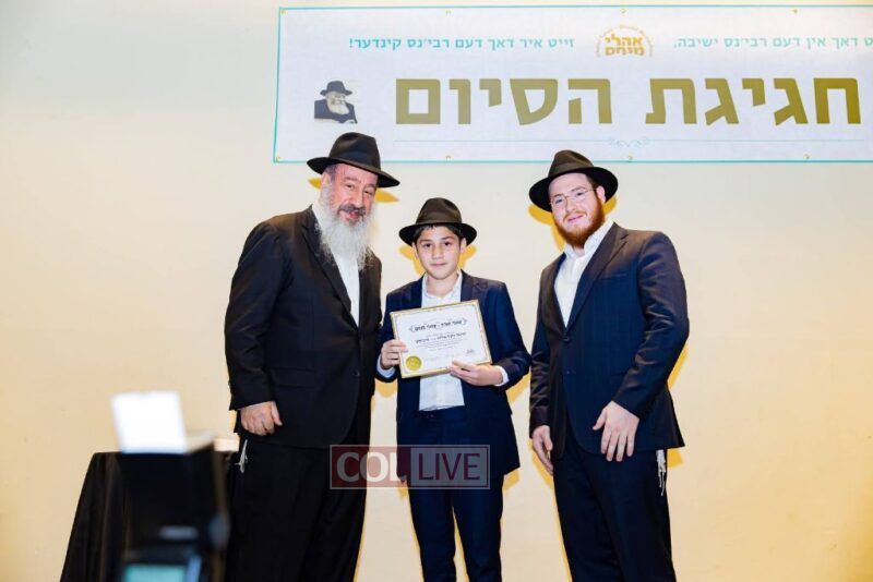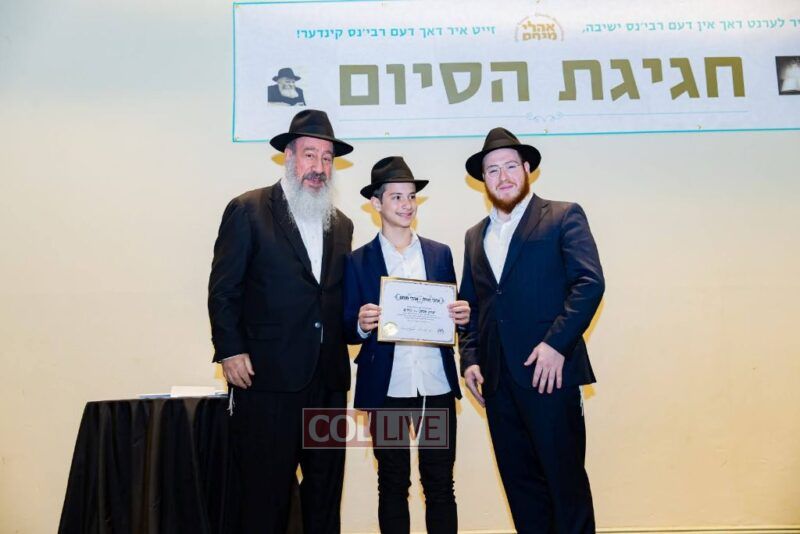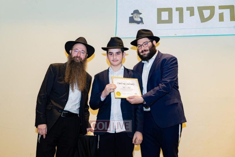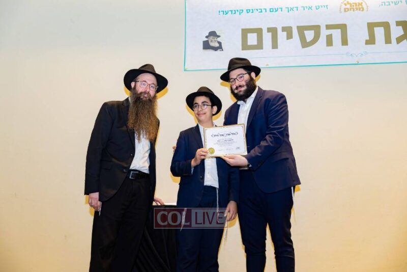 The graduation included a few Siymim made by students; Hatomim Mendel Feldman made a Siyum on a whole Masechta learned this year, Yankel Tzfasman made on Maseches Sota, and Shloime Katz on the entire Sefer Hamada.