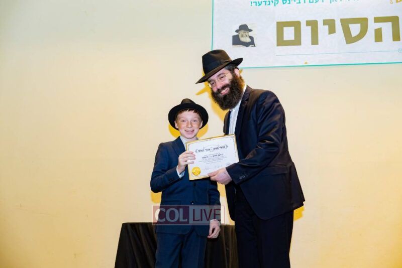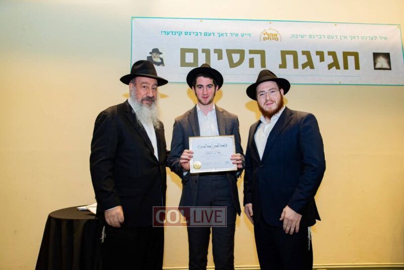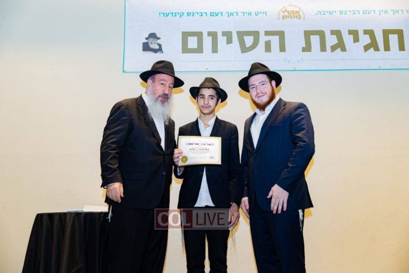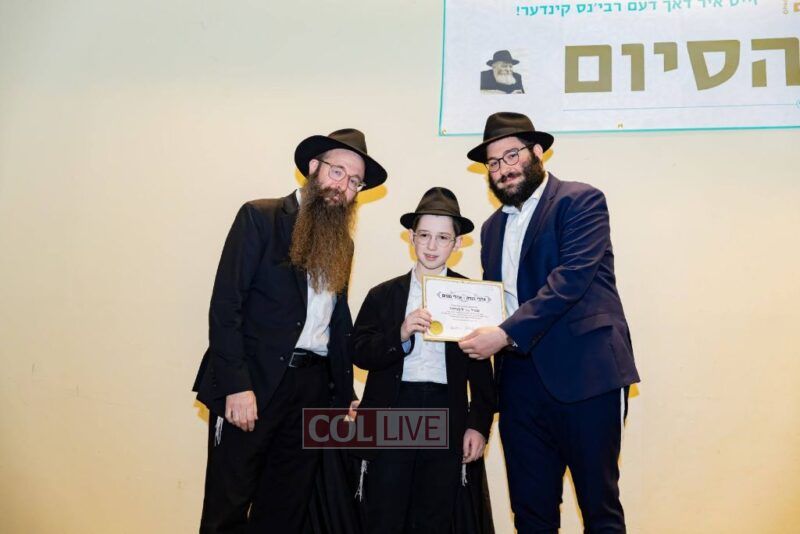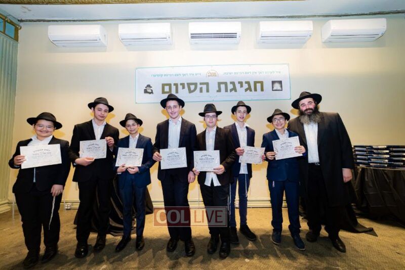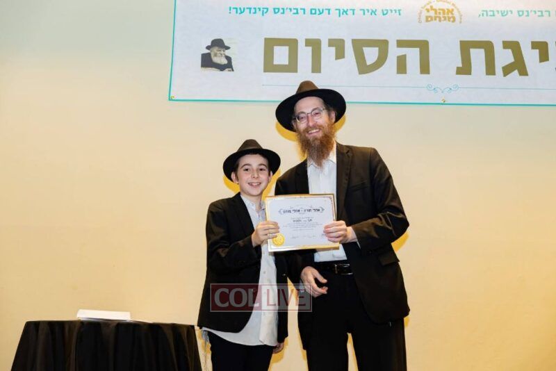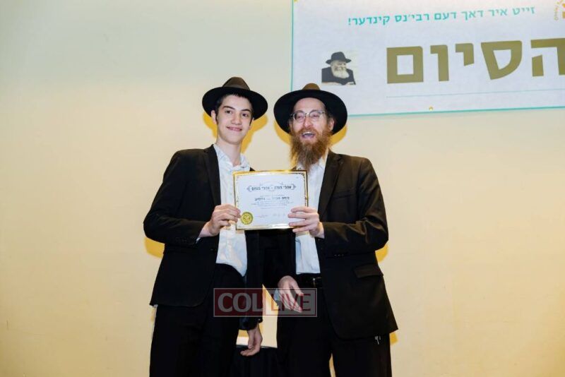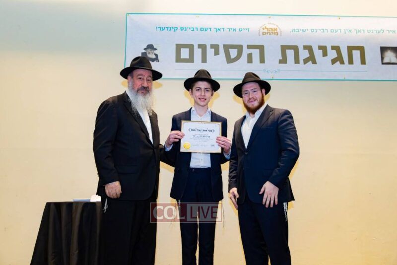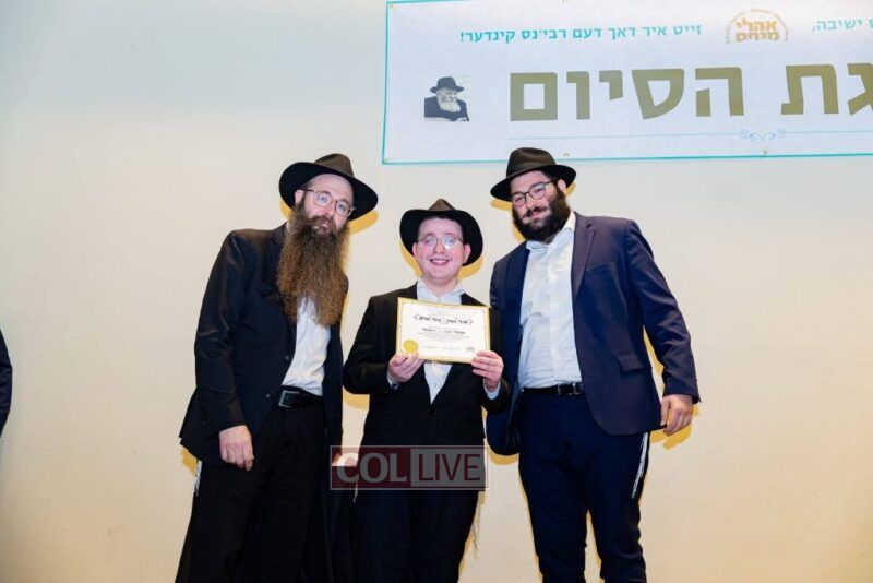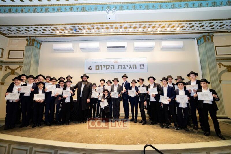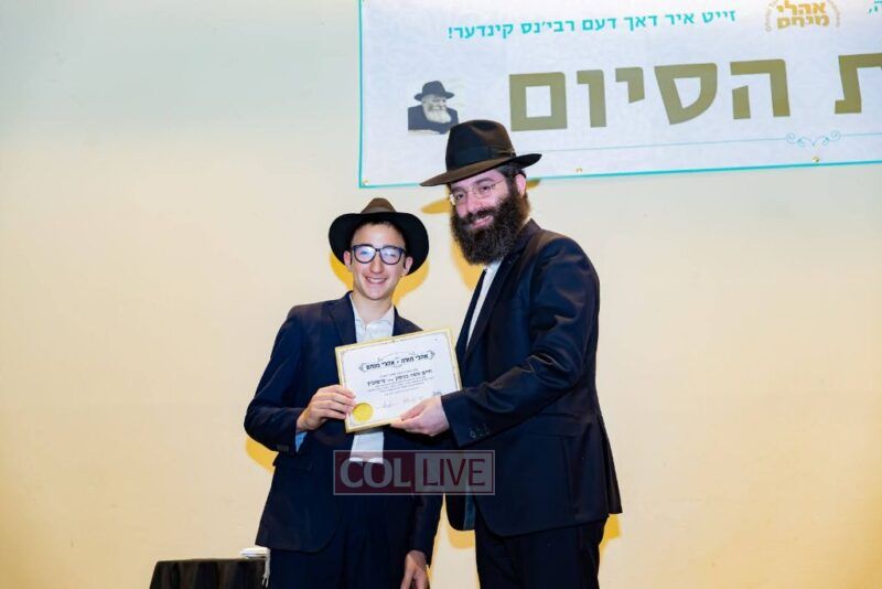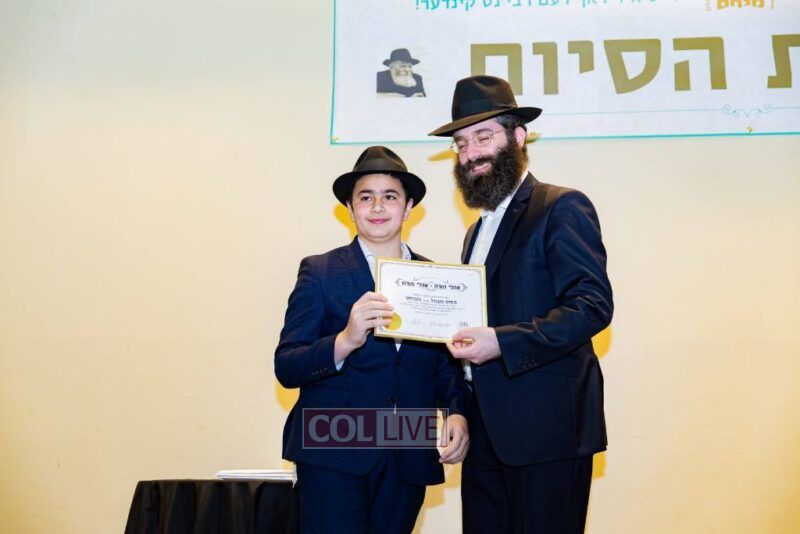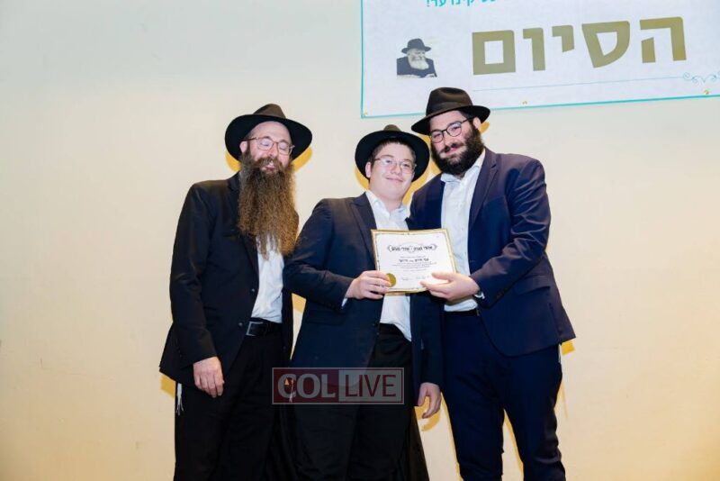 The graduation included a few Siymim made by students; Hatomim Mendel Feldman made a Siyum on a whole Masechta learned this year, Yankel Tzfasman made on Maseches Sota, and Shloime Katz on the entire Sefer Hamada.