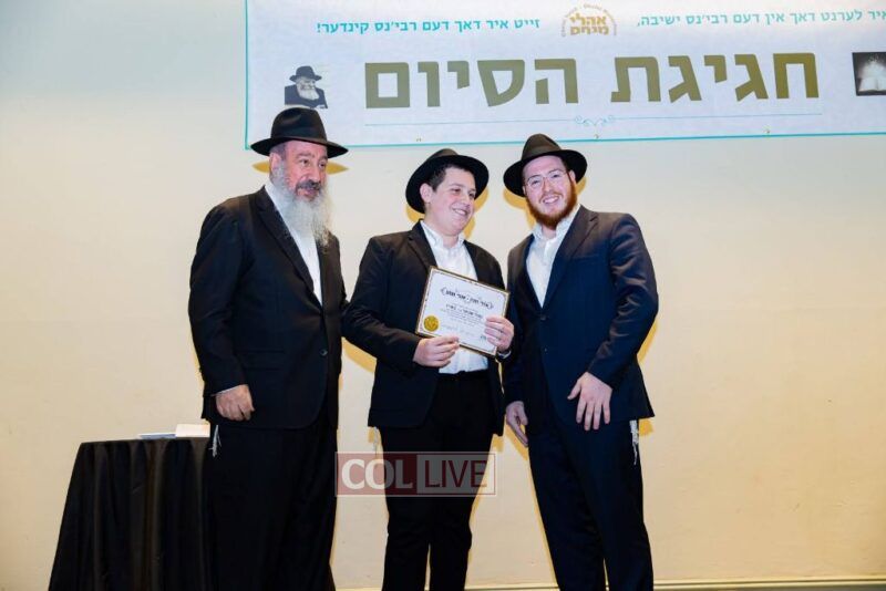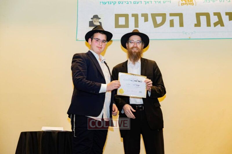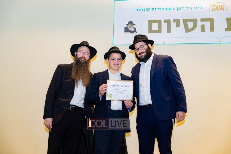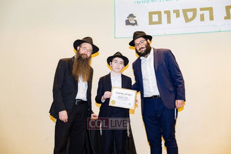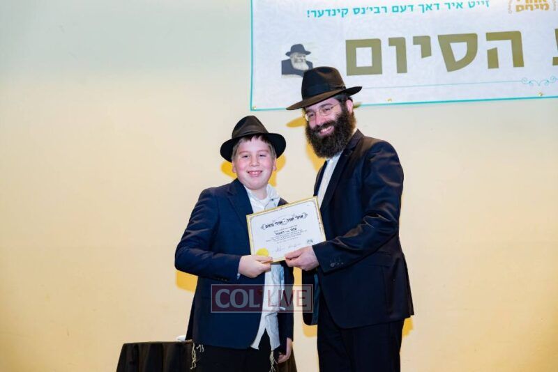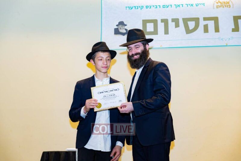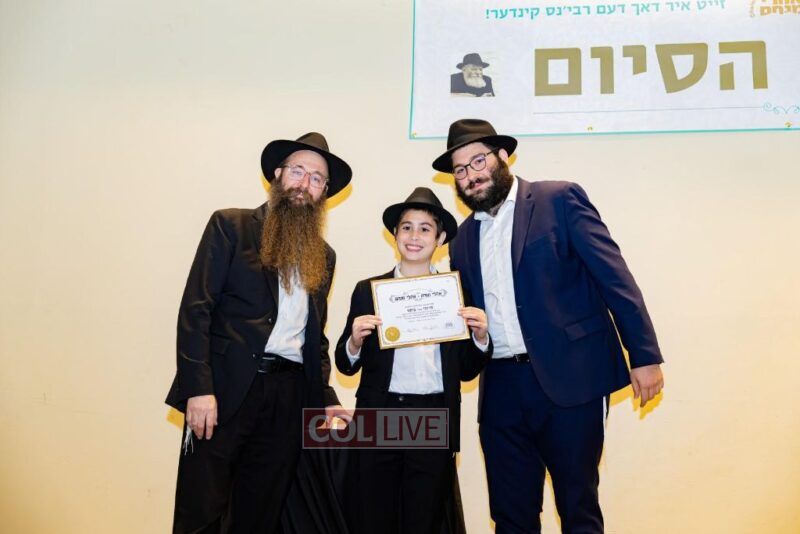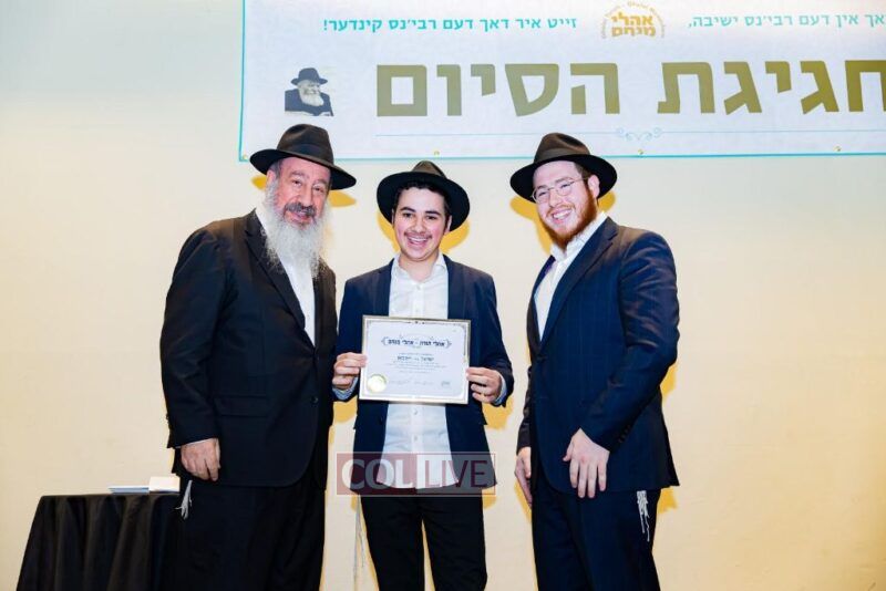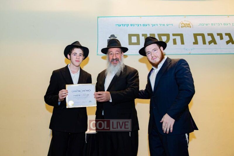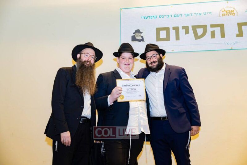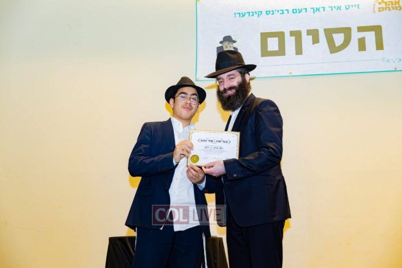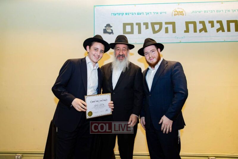 The graduation included a few Siymim made by students; Hatomim Mendel Feldman made a Siyum on a whole Masechta learned this year, Yankel Tzfasman made on Maseches Sota, and Shloime Katz on the entire Sefer Hamada.