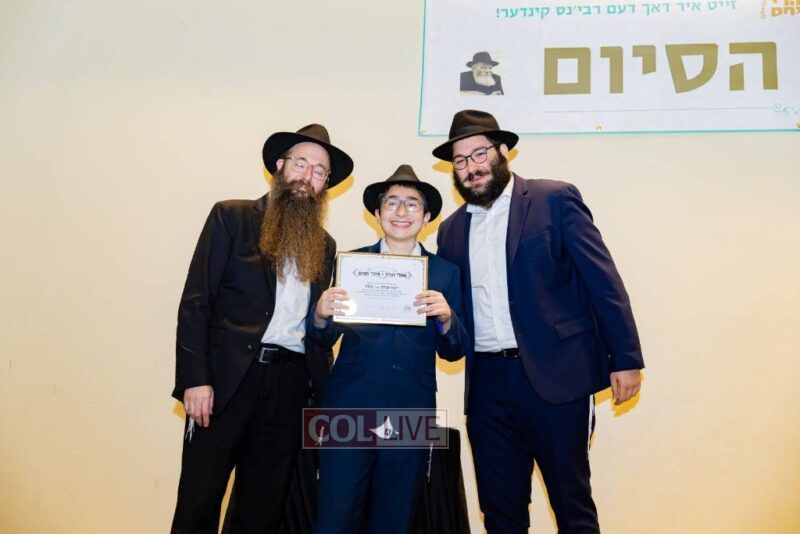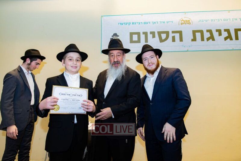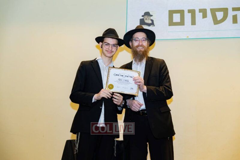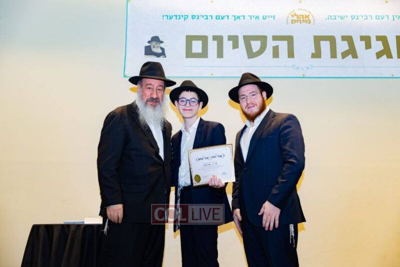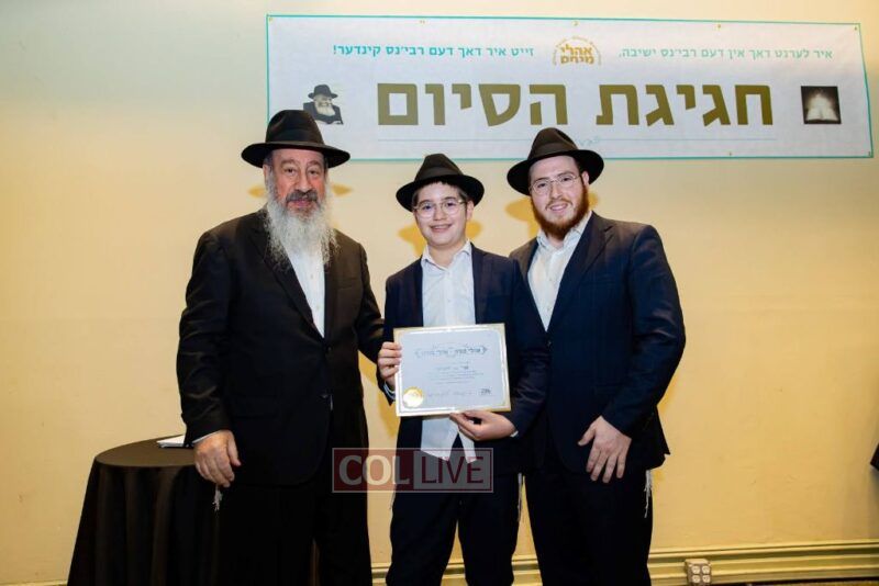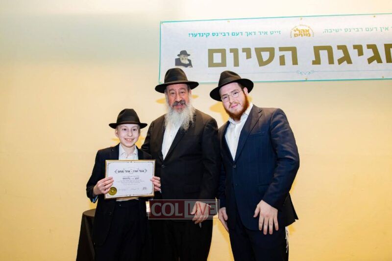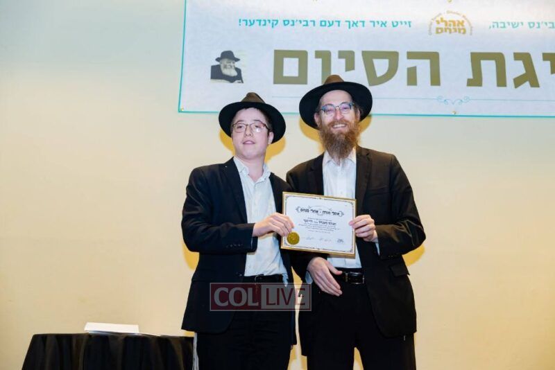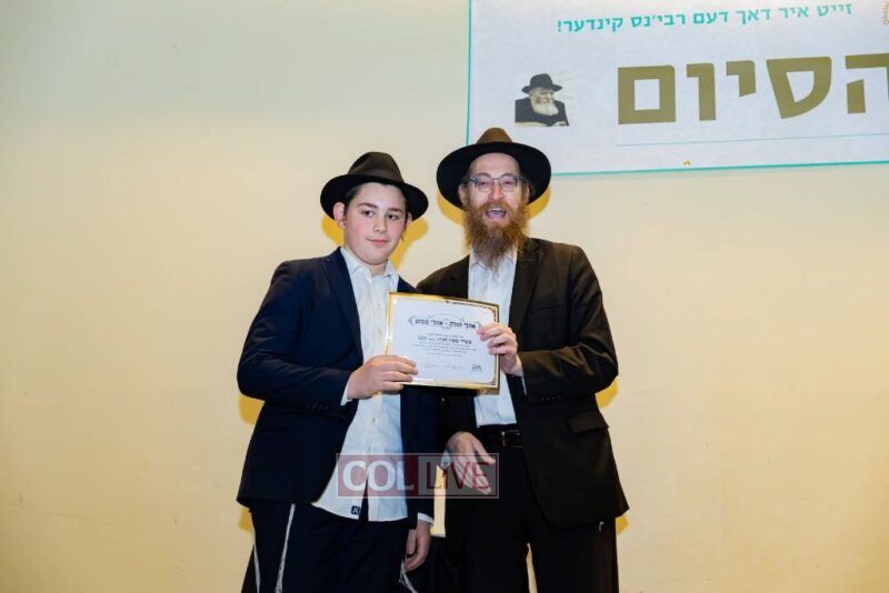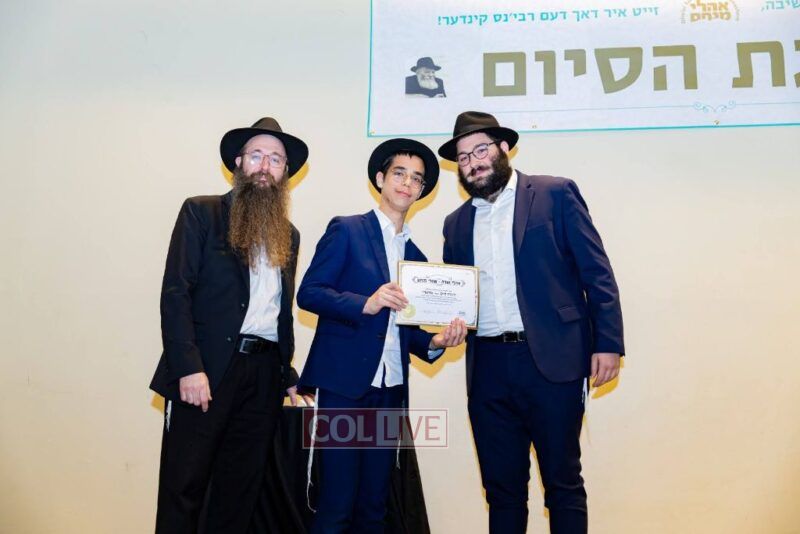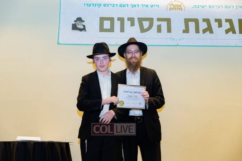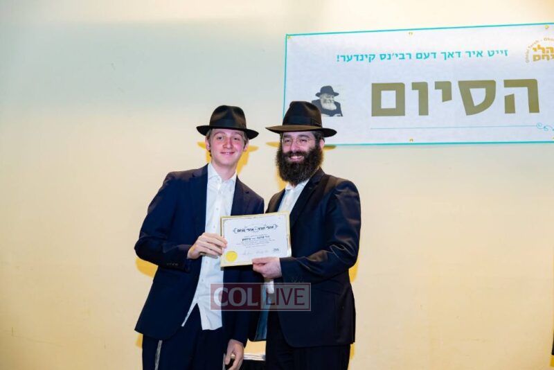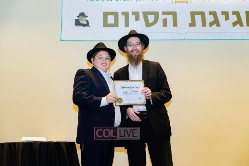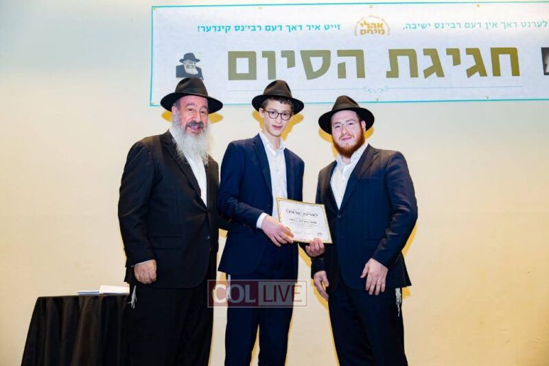 The graduation included a few Siymim made by students; Hatomim Mendel Feldman made a Siyum on a whole Masechta learned this year, Yankel Tzfasman made on Maseches Sota, and Shloime Katz on the entire Sefer Hamada.