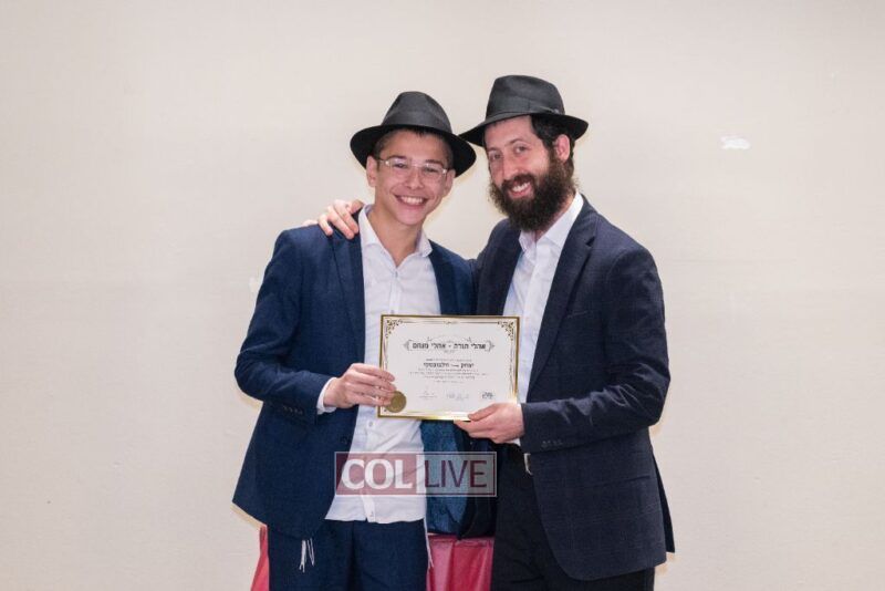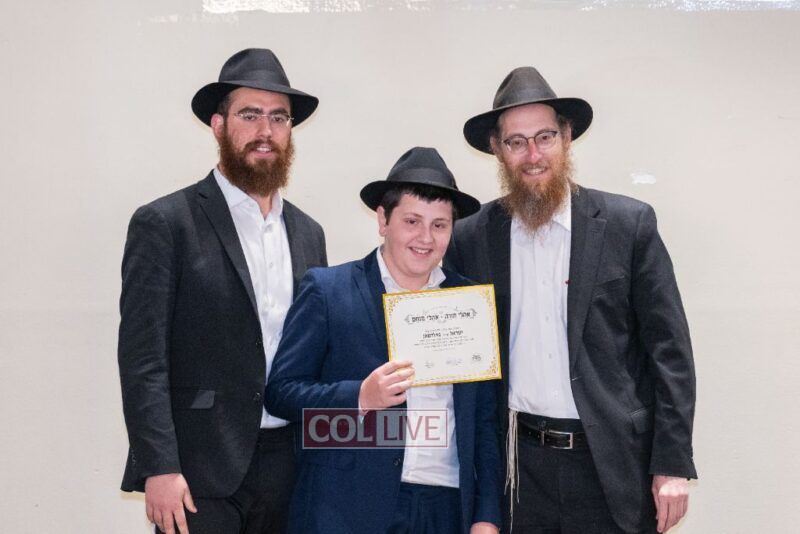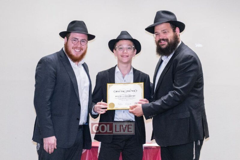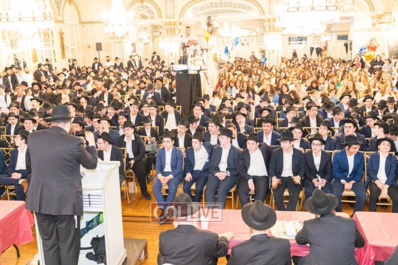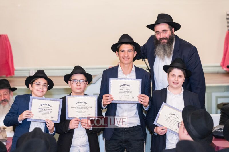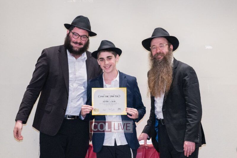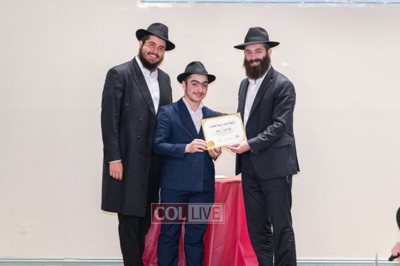 The event was a moving display of personal recognition and warmth. Every single student—without exception—was individually acknowledged with a few sincere words, a gift, and a handshake from his Menahel Rabbi Chaim Wilhelm, greeted by enthusiastic applause.