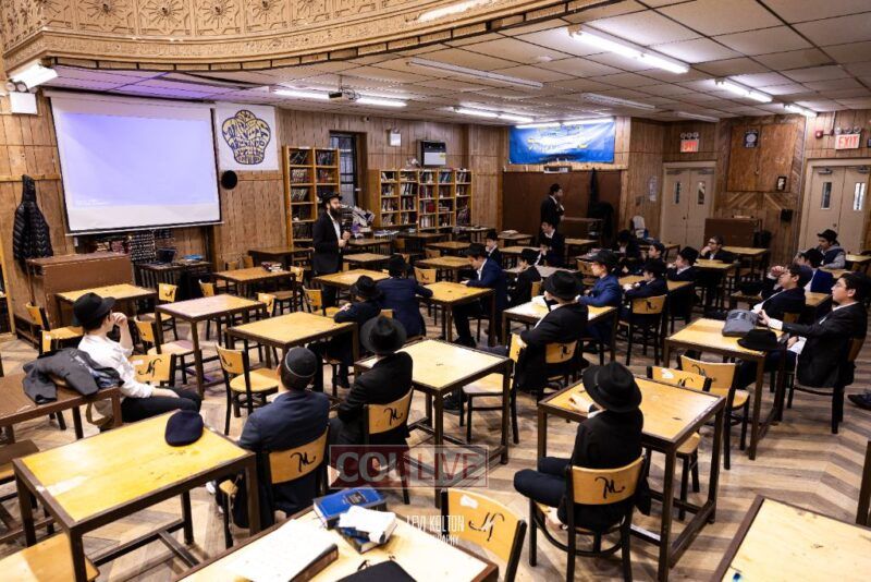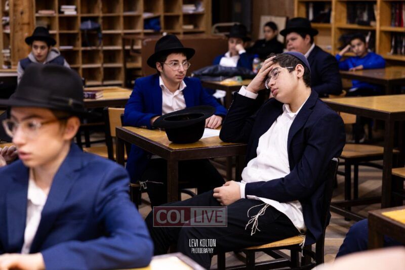 Oholei Torah 8th Grade joined for a Kinus of Torah, Tefila, and Tzedoka, in their Yeshiva on Troy Avenue in the merit of the safety of Israel. Photos