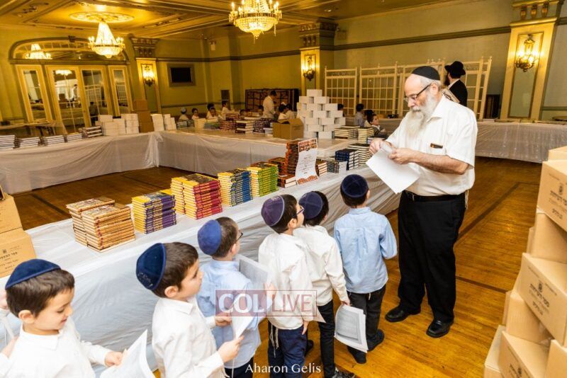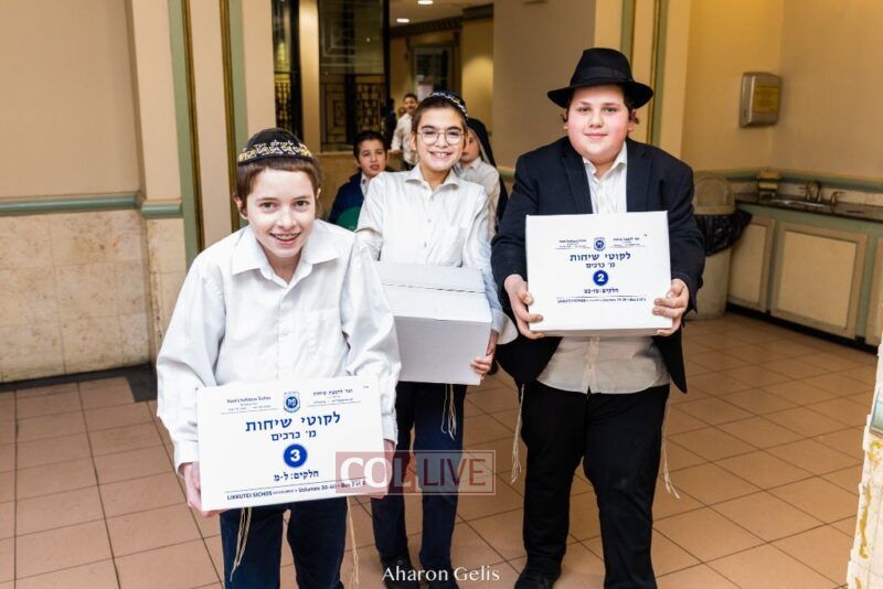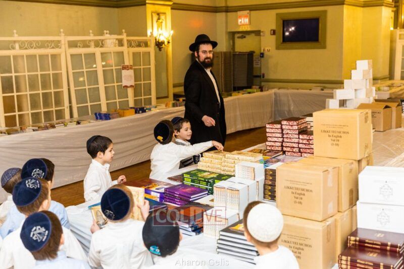 Several Rabbeim seized the opportunity to lead their students on visits to the Rebbe’s Library. The boys witnessed firsthand the long lines of Chassidim diligently shopping in Kehot, faithfully adhering to the Rebbe’s instruction to use the day to expand the Libraries.