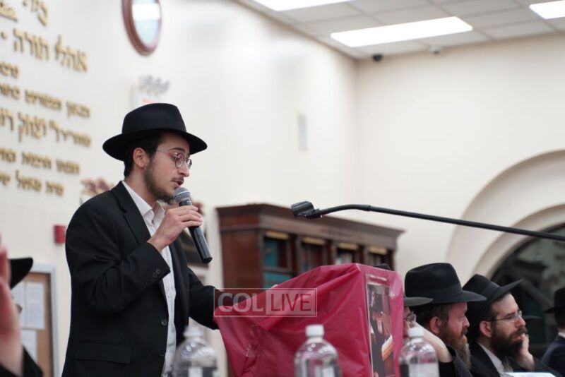 A number of bochurim spoke as well, including Yerachmiel Wolowik of the Five Towns, who made a siyum on Meseches Gittin, Levi Wilhelm of Boulder, CO; Yosef Lesches of Melbourne, Australia, Avrohom Matusof of Calgary, Canada, and Shneur Gurevitch of Los Angeles, CA.