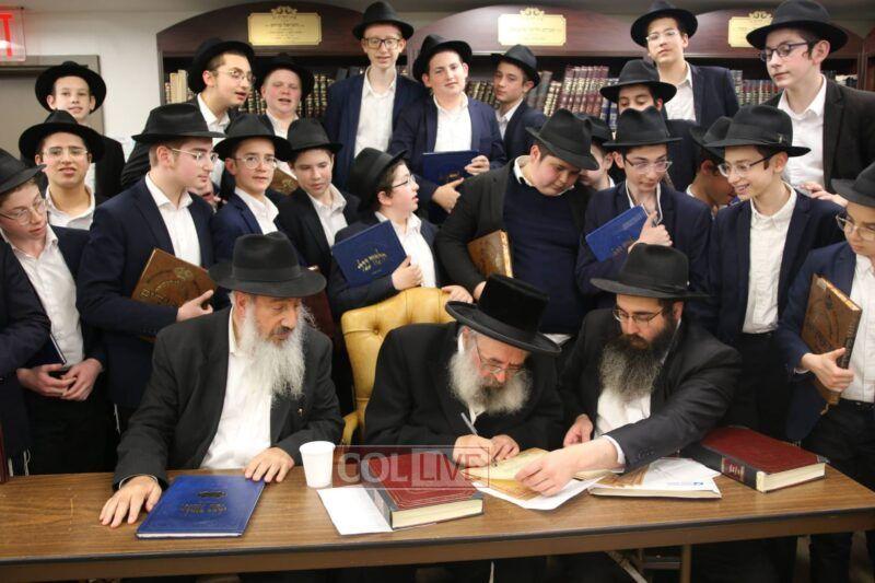 In the footsteps of the 29-year tradition initiated in the Mesivta Oholei Torah by their Menahel, Rabbi Zushe Wilhelm, a”h, 35 talmidim of the Mechina Oholei Torah undertook to learn the entire Gemara Makkos ba’al peh and were tested on it yesterday by the renowned halachic authority, Hagaon Harav Gavriel Zinner, of Boro Park.