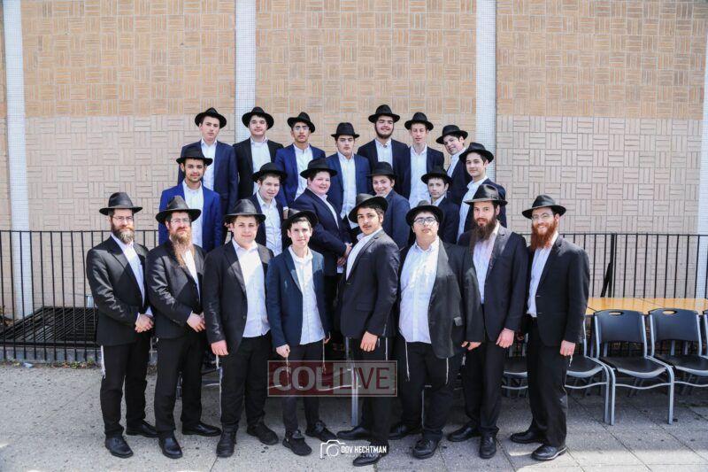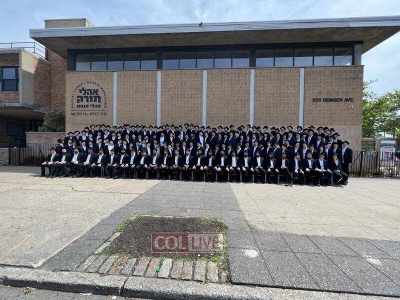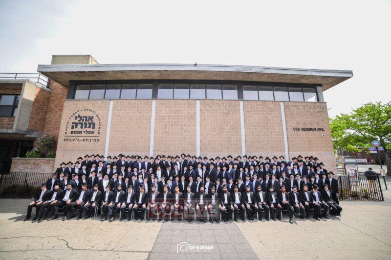 Oholei Torah Mesivta gathered for a group photo at their new building on Remsen Avenue on Thursday, with Menahalim, teachers and staff members. More