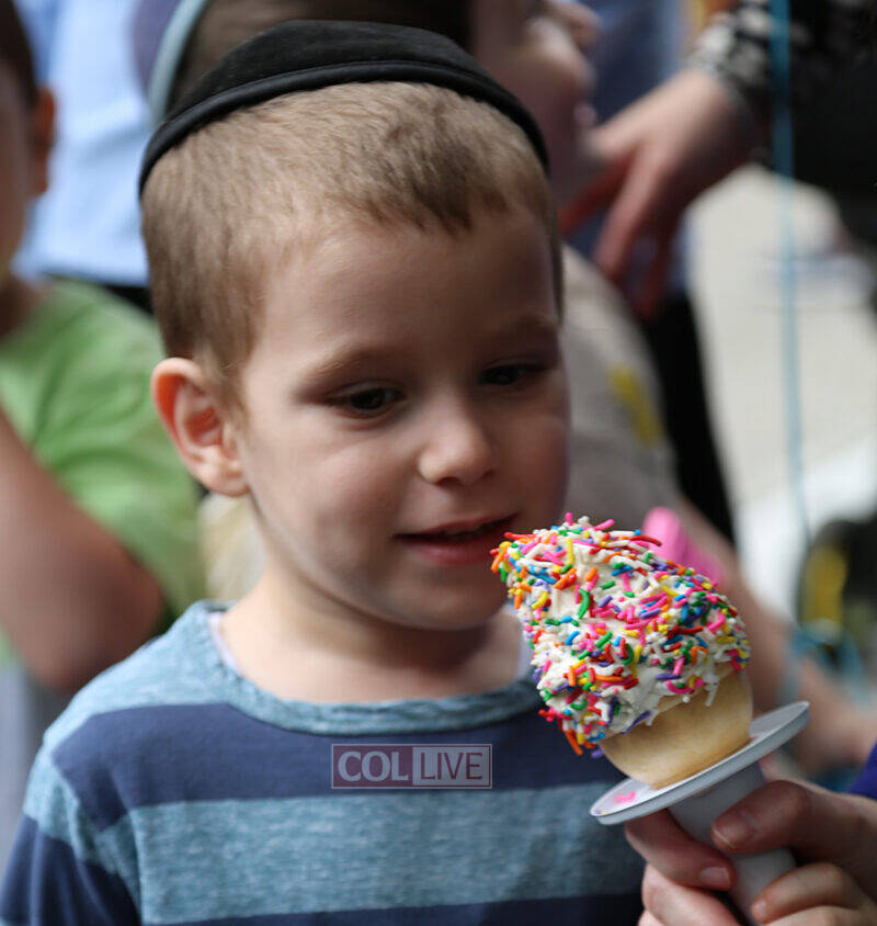 The children were greeted by Morah Leah, Morah Dini and Morah Mushky, and were delighted to receive balloons, gifts and prizes. They recited the Pesukim and enjoyed a special ice cream treat.