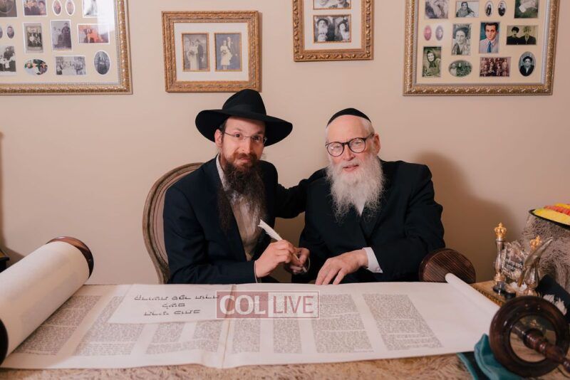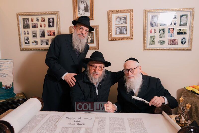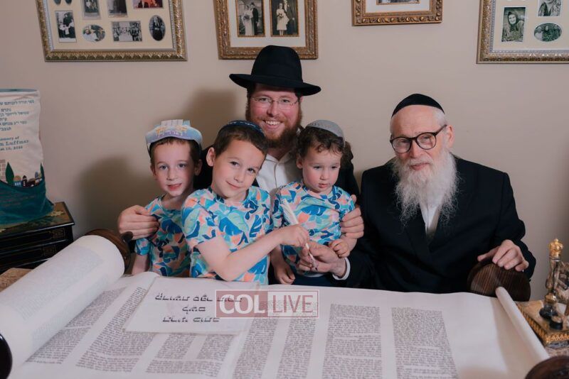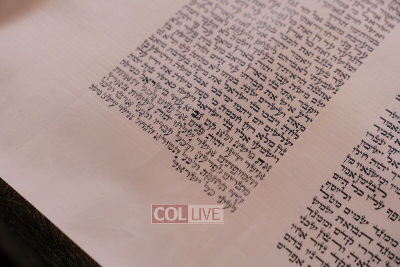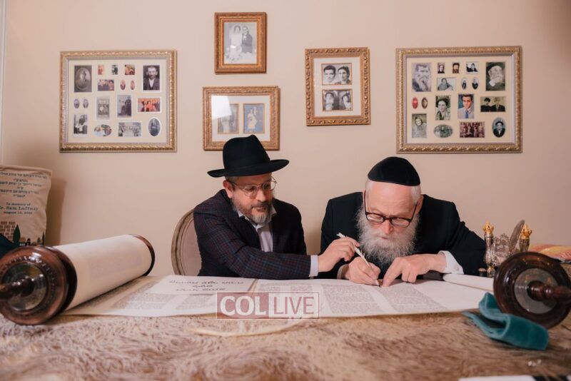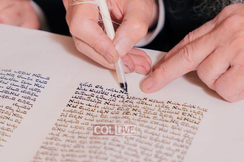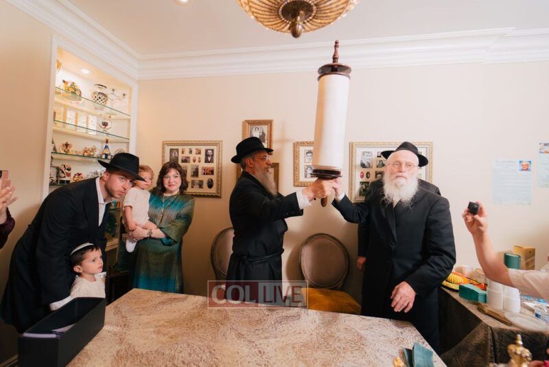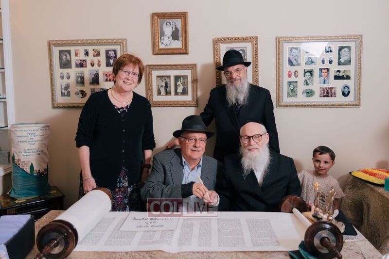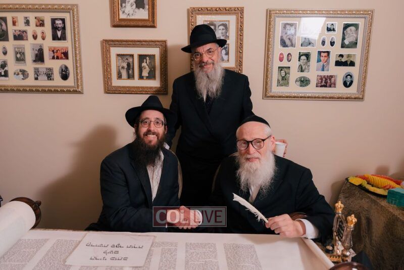 The gathering began at the Blumes residence, where sofer Rabbi Moshe Klein guided and assisted all those who wrote the final letters. From there, the sefer Torah was passed from person to person, and everyone present had the opportunity to hold and share in this momentous occasion. The Sefer Torah was then brought to Oholei Torah, where it will be utilized by the talmidim.