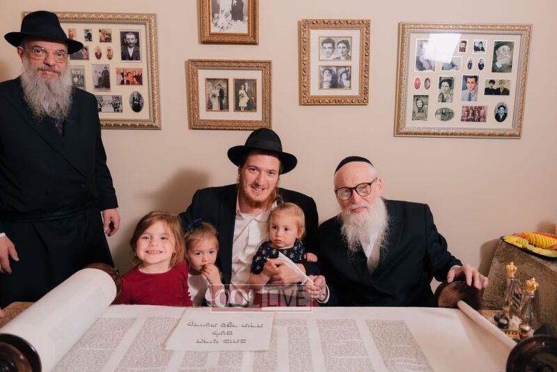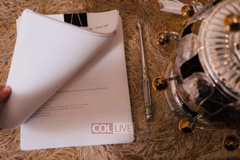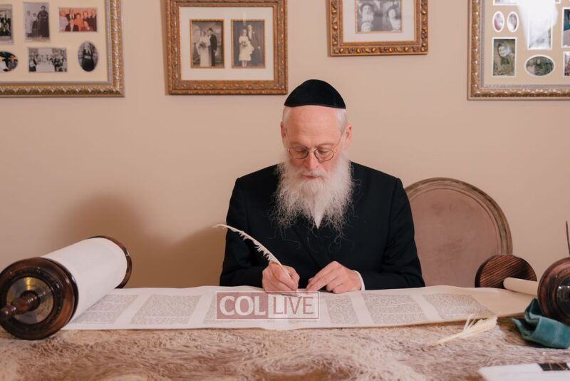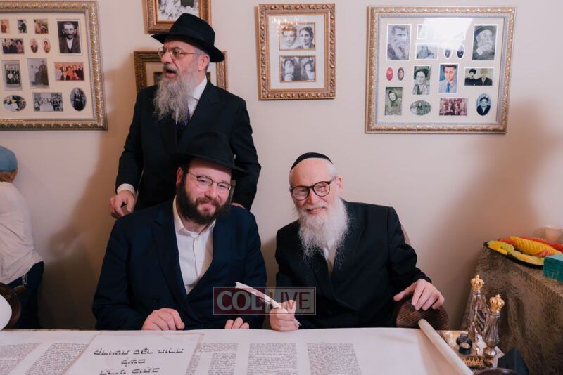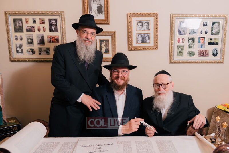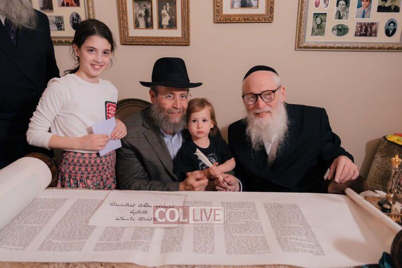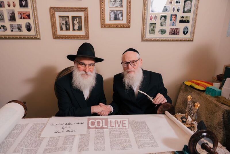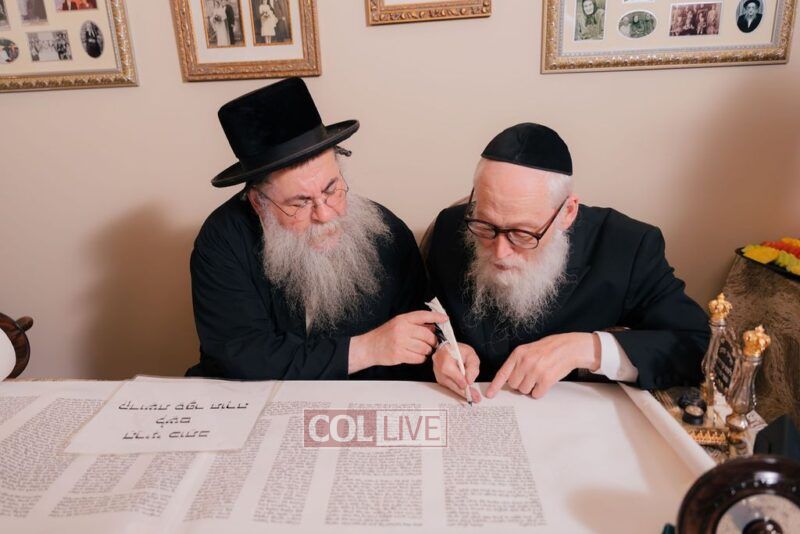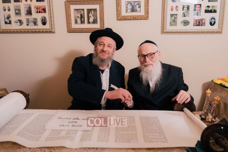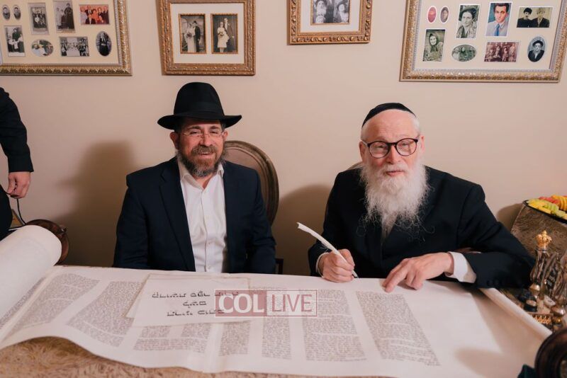The gathering began at the Blumes residence, where sofer Rabbi Moshe Klein guided and assisted all those who wrote the final letters. From there, the sefer Torah was passed from person to person, and everyone present had the opportunity to hold and share in this momentous occasion. The Sefer Torah was then brought to Oholei Torah, where it will be utilized by the talmidim.