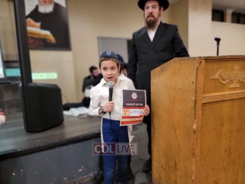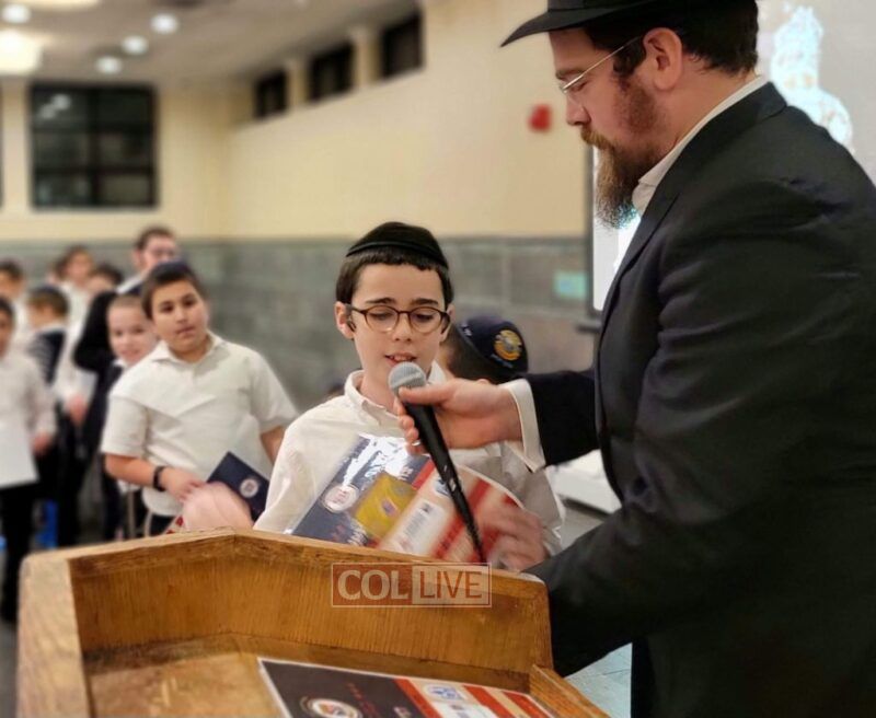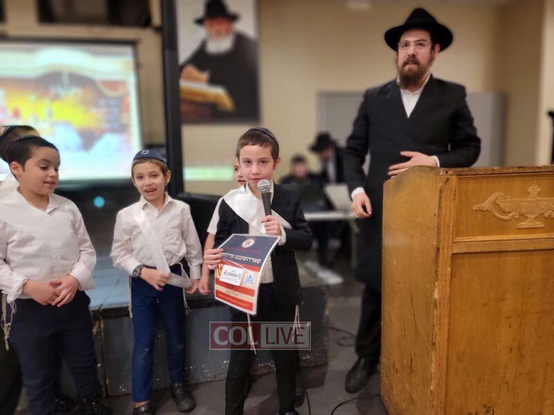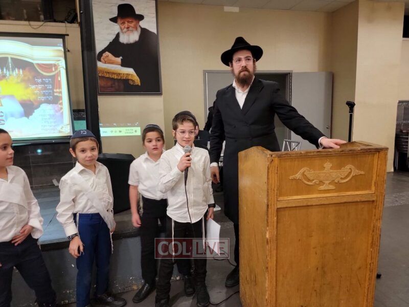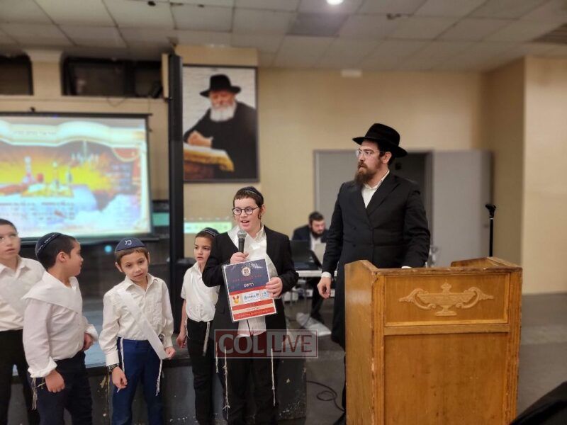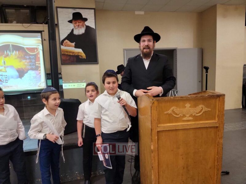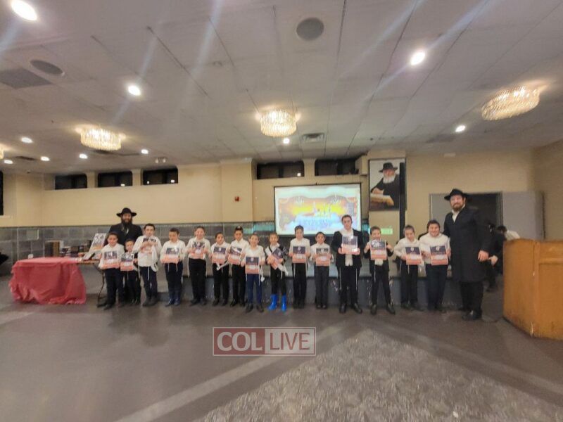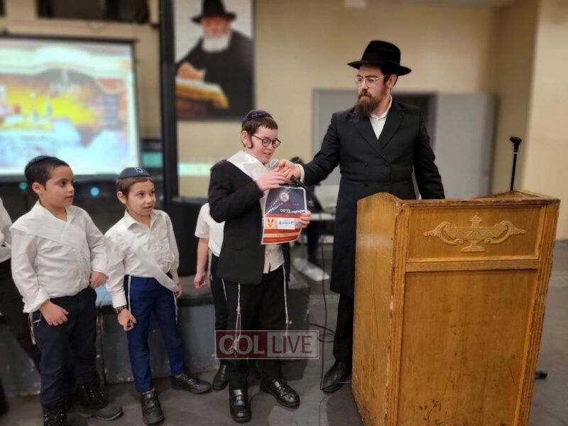 Rabbi Chanoch Hecht, who co-produced the event with Rabbi Avrohom Rainitz, thanked the teachers for their dedication, which result in entire classes being fluent in full Prokim of Tanya by-heart. Boys who had already received their Seforim following the dancing at the end of the event.