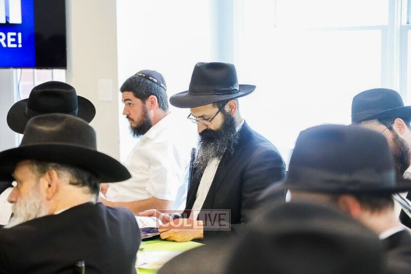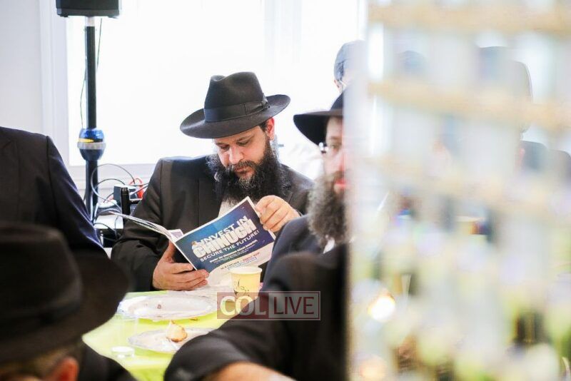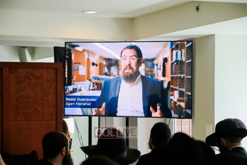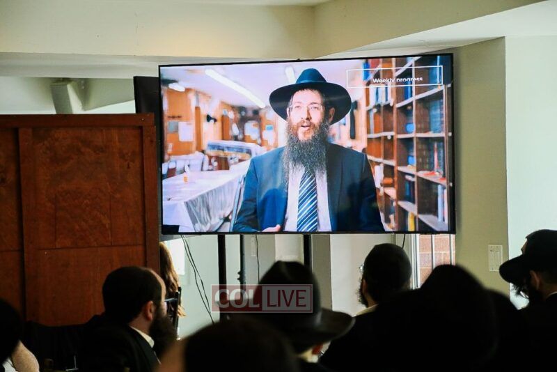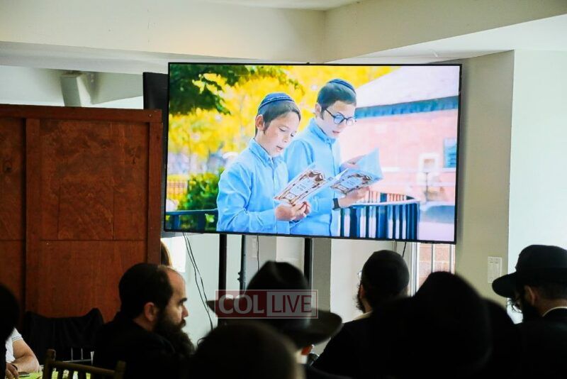Then all watched together a special video presentation depicting the Day-to-Day at cheder, produced by Rabbi Avrohom Rainitz and Berl Groner.