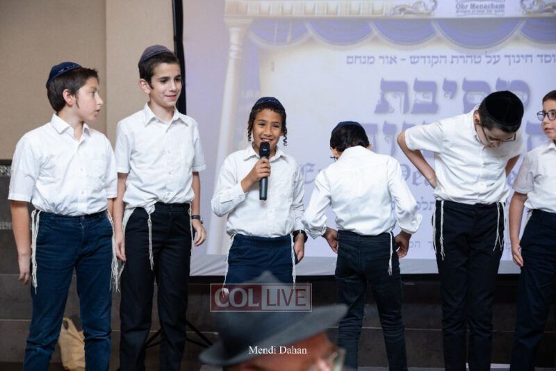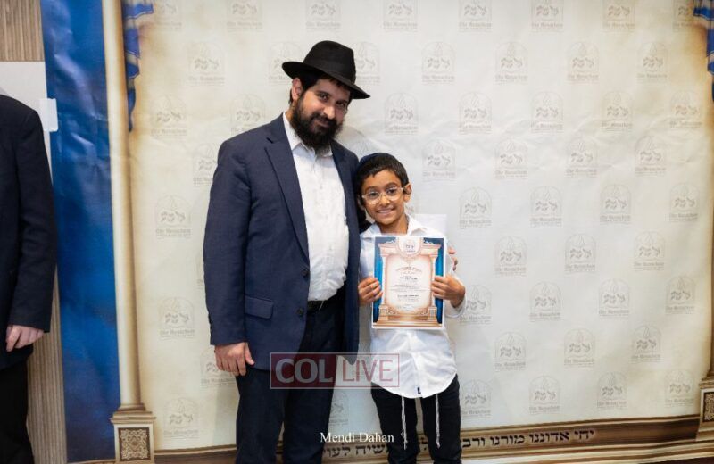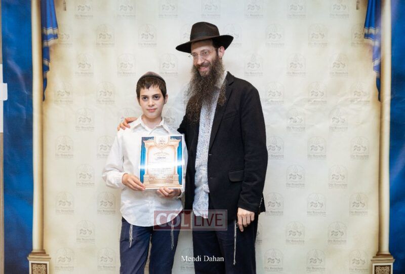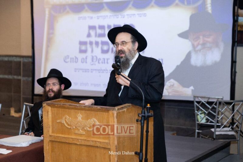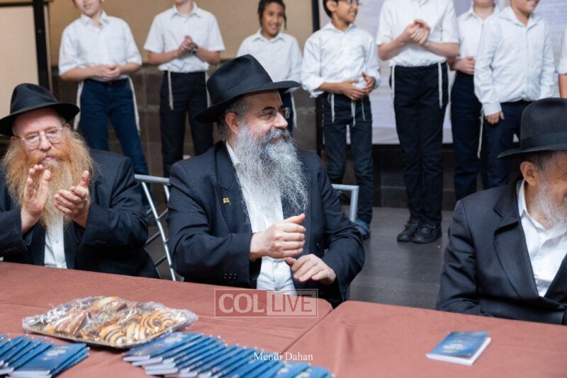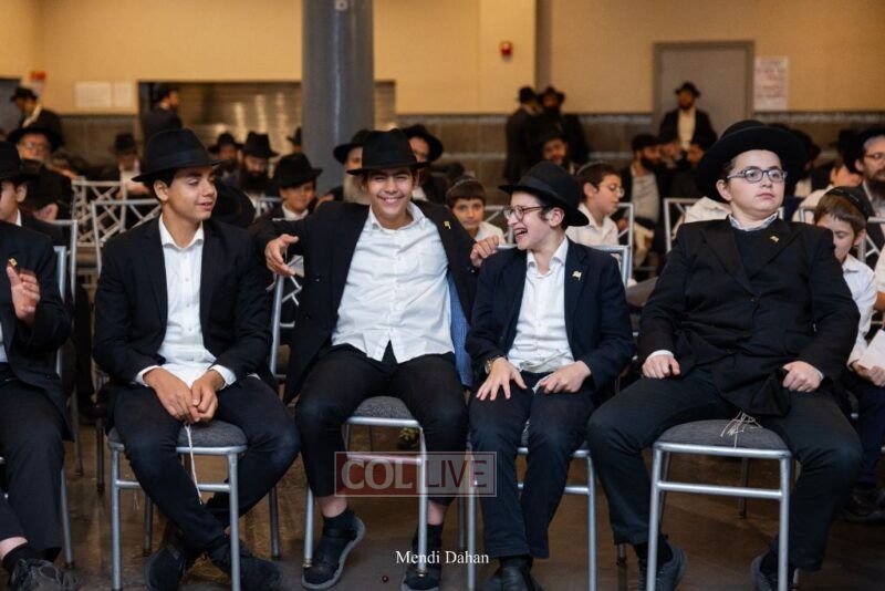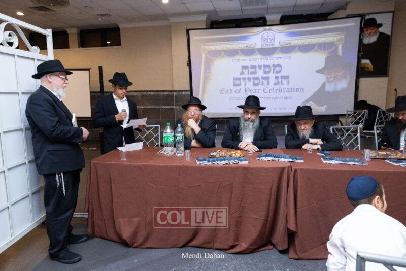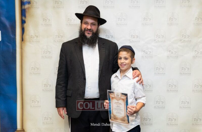The emcee invited Rabbi Itche Mishulovin to lead the Rebbe’s Kappitel, followed by Birkas Cohanim from Rabbi Mendel Hendel, Menahel Kloli of Ohr Menachem and its continuum of mosdos. Rabbi Mendel Yusewitz, Menahel, expressed joy at completing a year of true growth, marked by tremendous Limud HaTorah, Kiyum Mitzvot B’Simcha, and middos tovos. He presented each student with their end-of-year certificate, highlighting the unique praise (Shevach) chosen by their Melamed to define their individual light and contribution to the class.