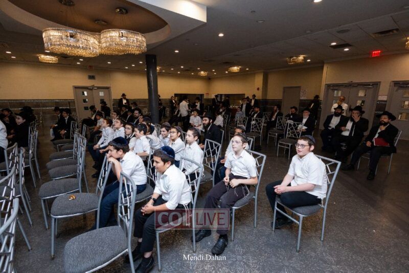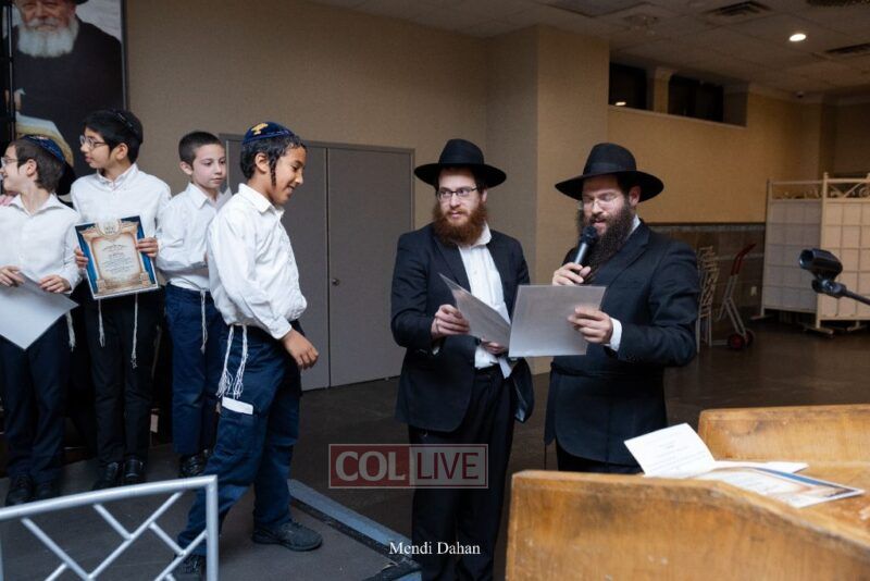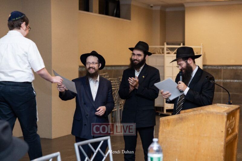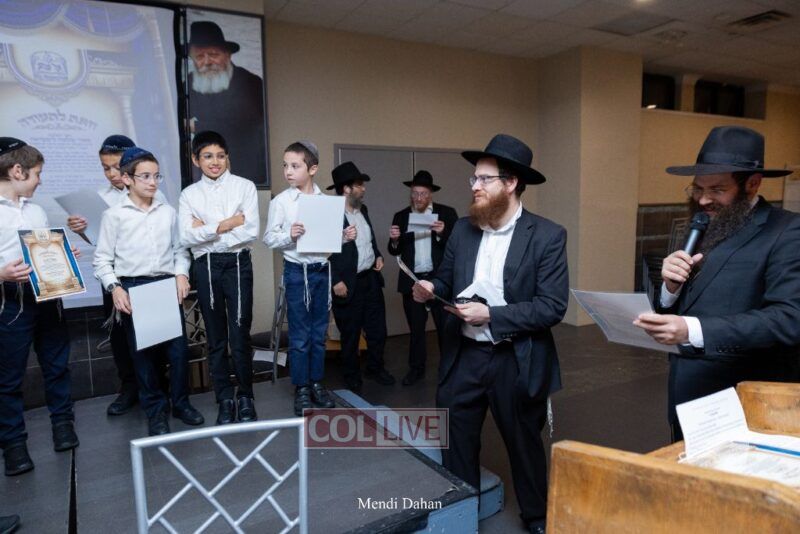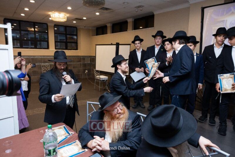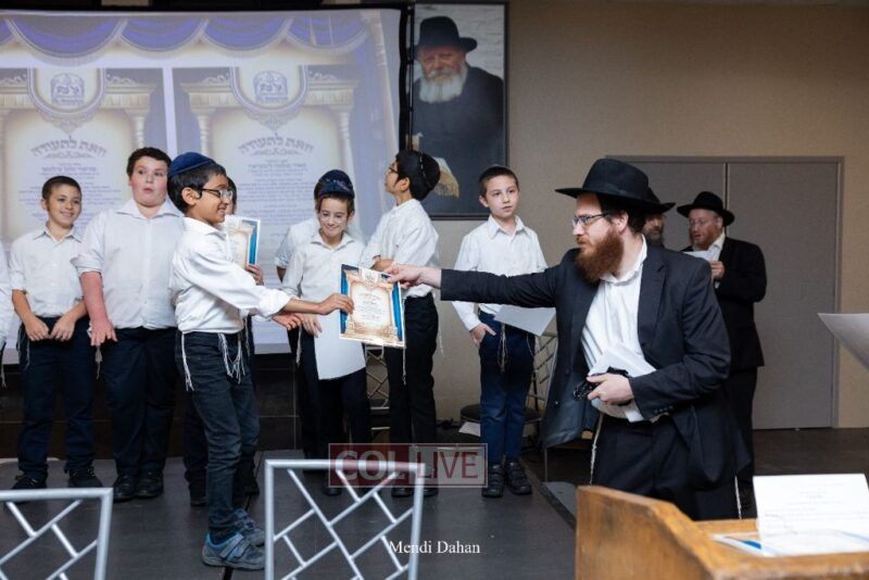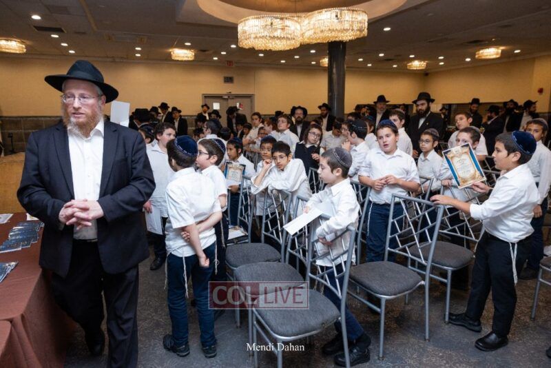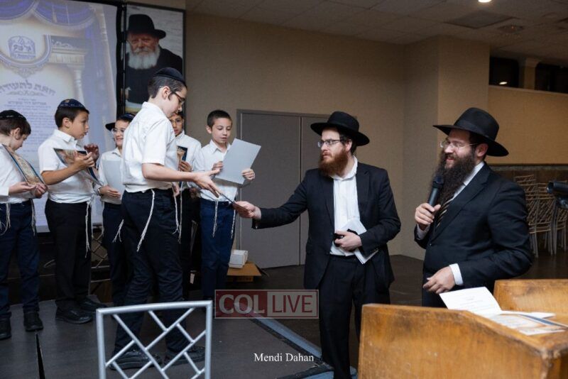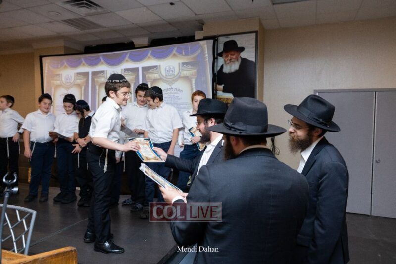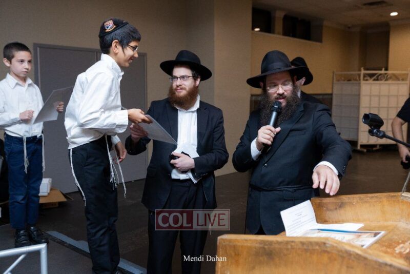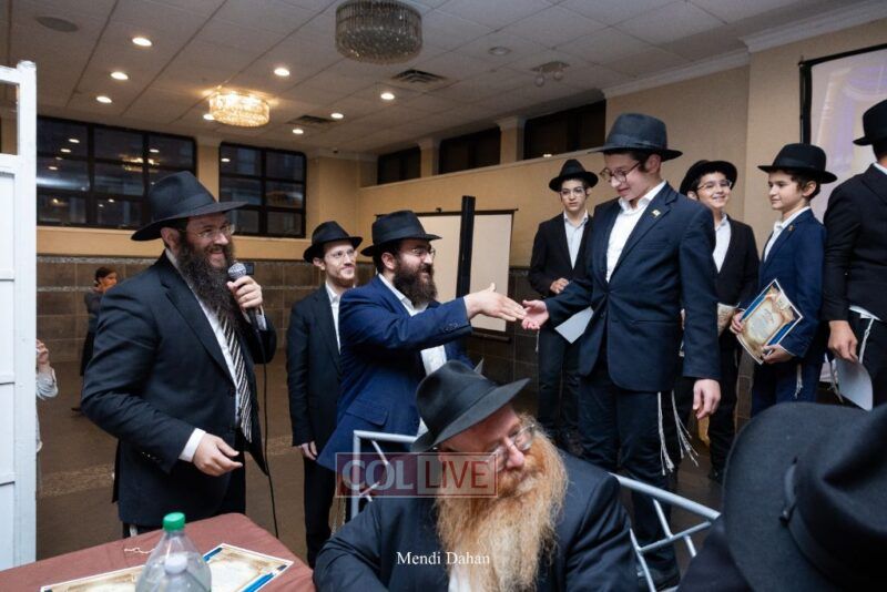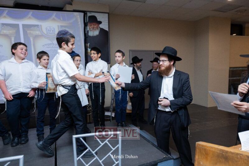 Rabbi Yossef Overlander, vice principal, awarded special Seforim vouchers to students who excelled in Mishnayos Baal Peh. The Menahel presented each student with a beautiful Cheder “Mincha Maariv” gift, thanking Hashem publicly for the privilege of working with a unique and special team of educators. He also thanked the event producers, Rabbi Avrohom Rainitz, Rabbi Chanoch Hecht, and Reb Shlomo Frishman.