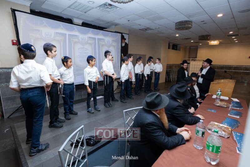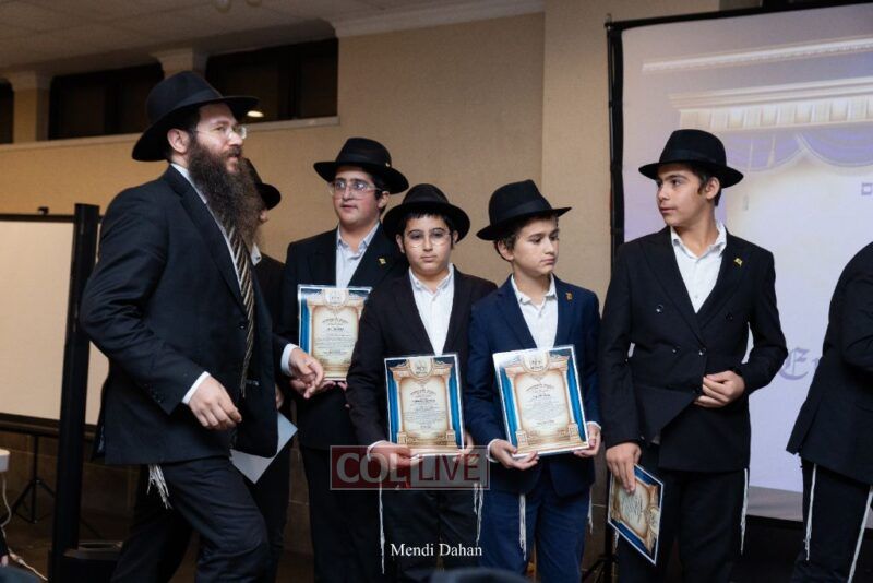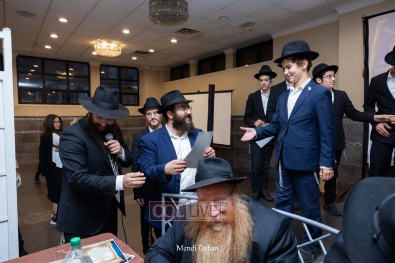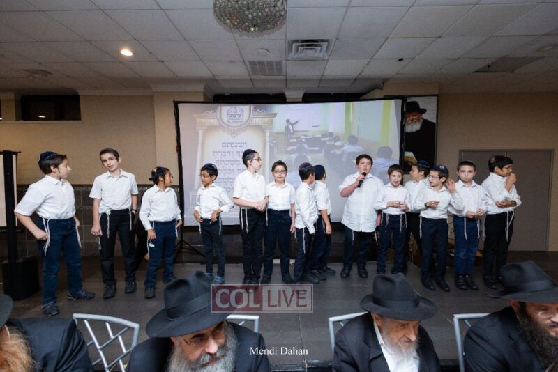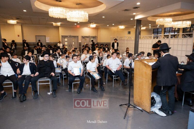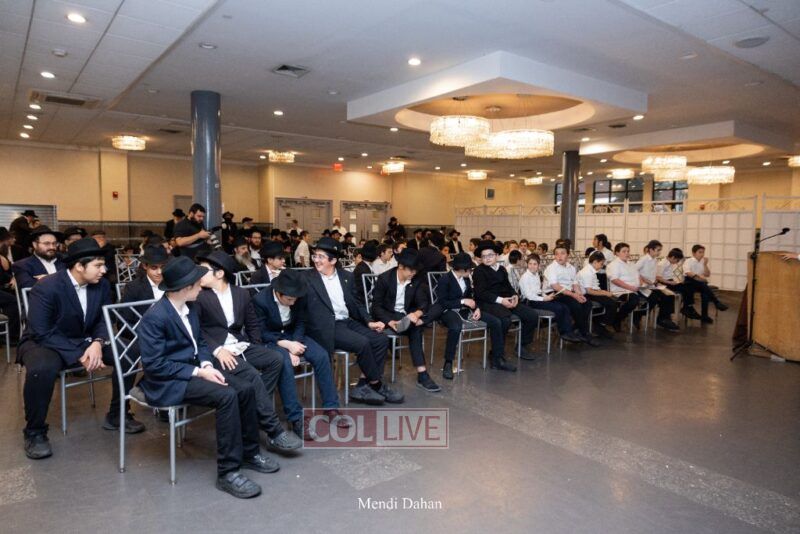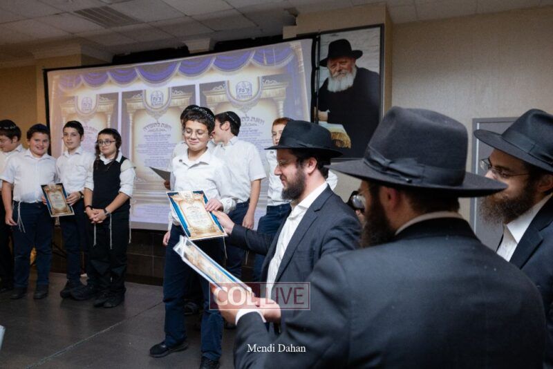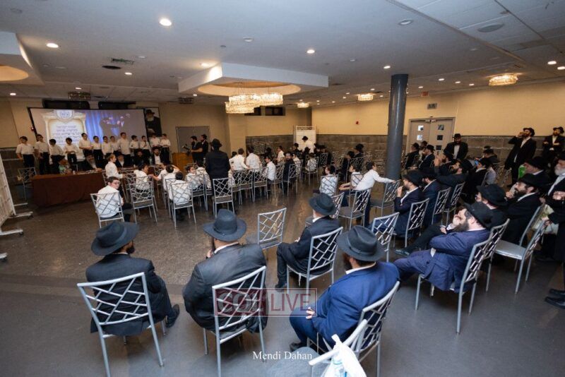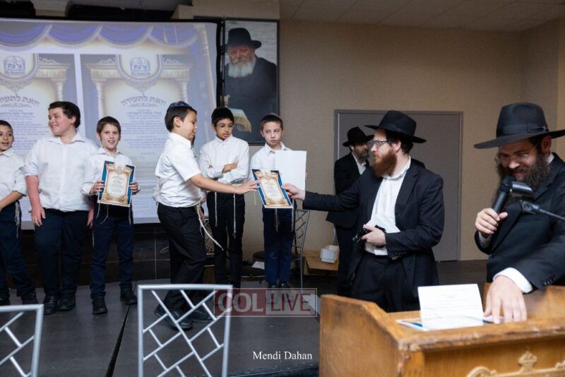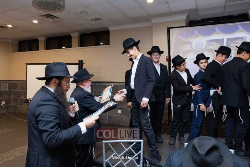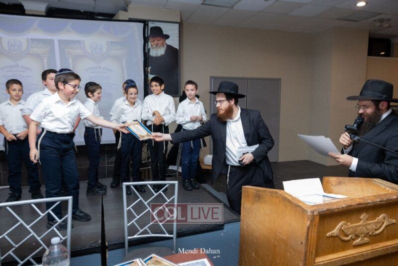 Rabbi Yossef Overlander, vice principal, awarded special Seforim vouchers to students who excelled in Mishnayos Baal Peh. The Menahel presented each student with a beautiful Cheder “Mincha Maariv” gift, thanking Hashem publicly for the privilege of working with a unique and special team of educators. He also thanked the event producers, Rabbi Avrohom Rainitz, Rabbi Chanoch Hecht, and Reb Shlomo Frishman.