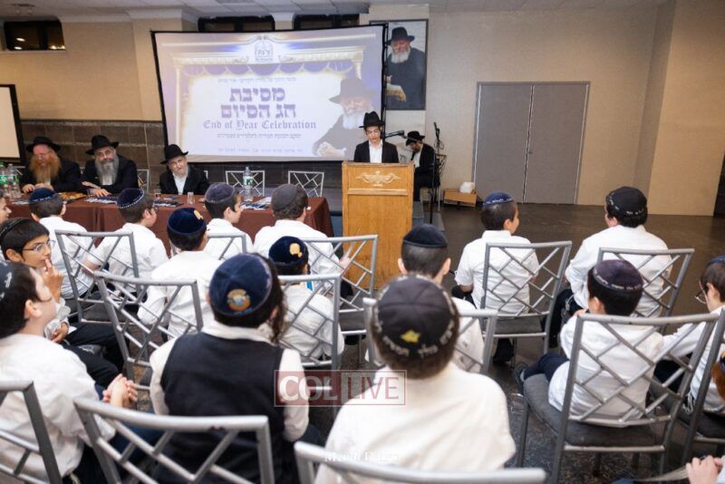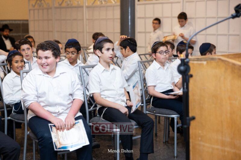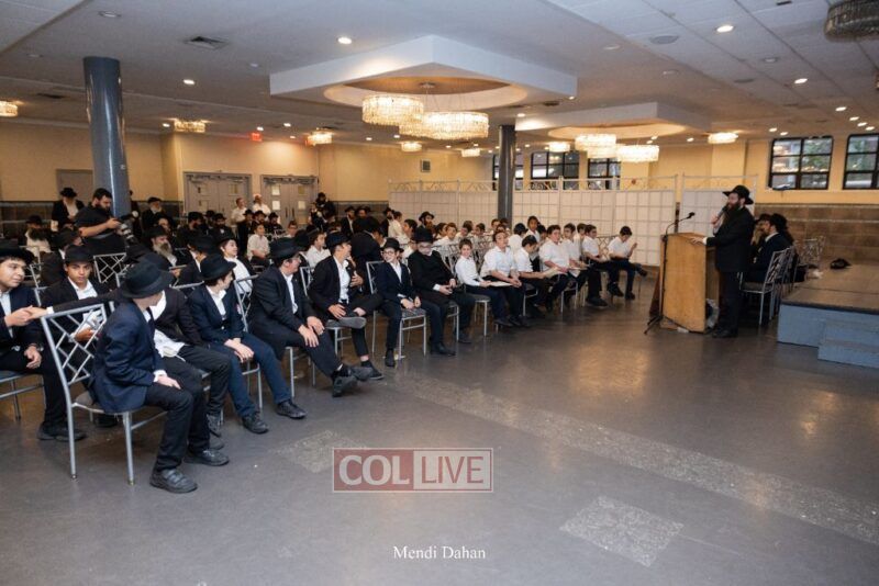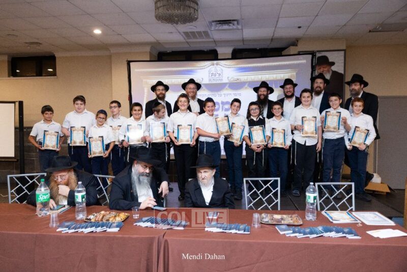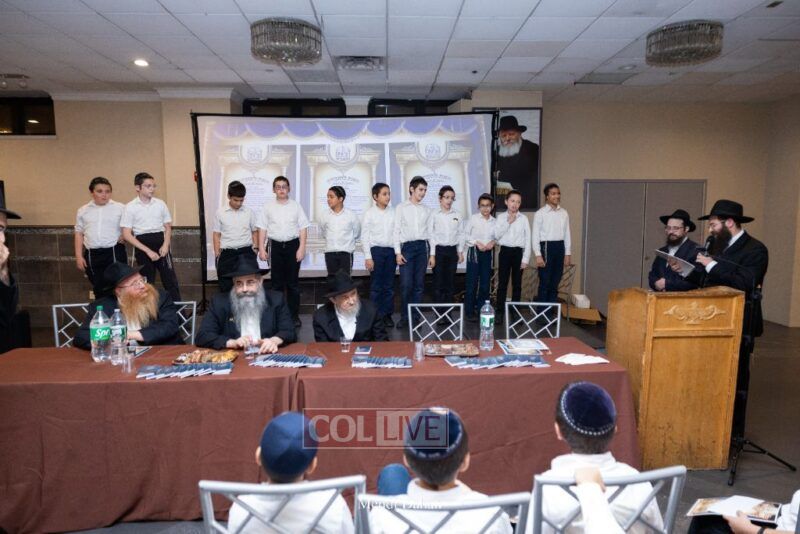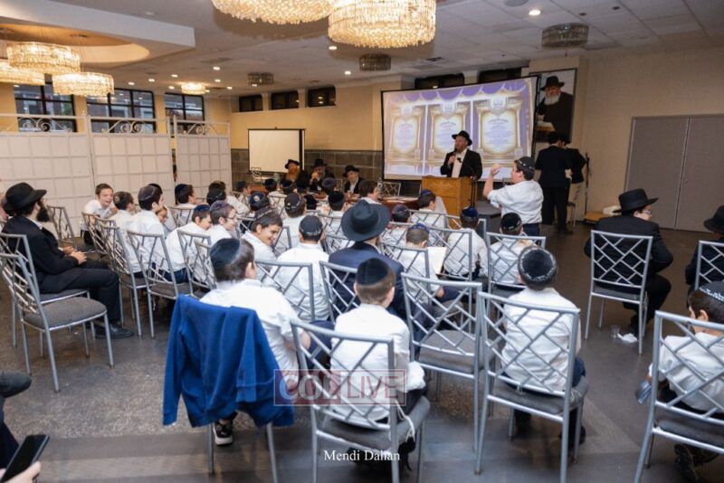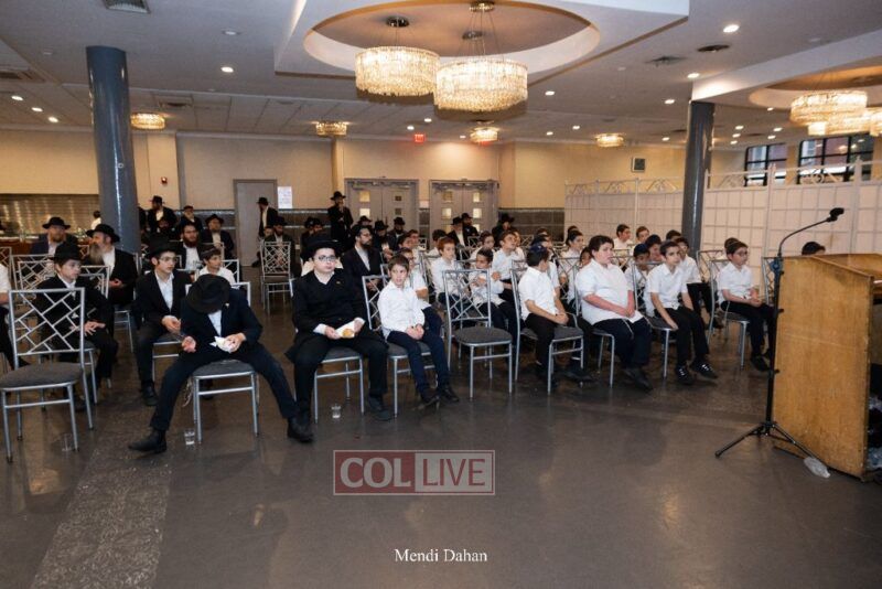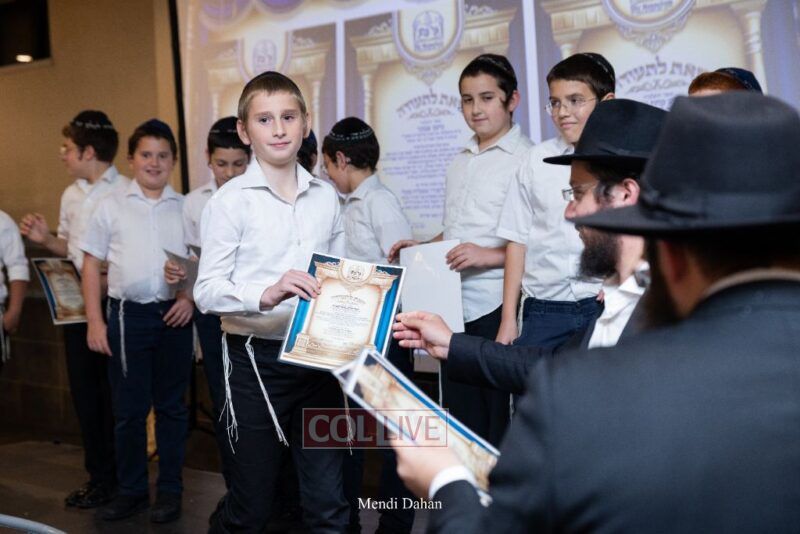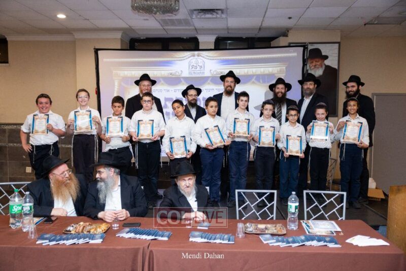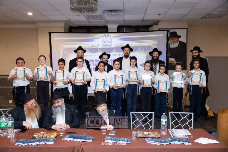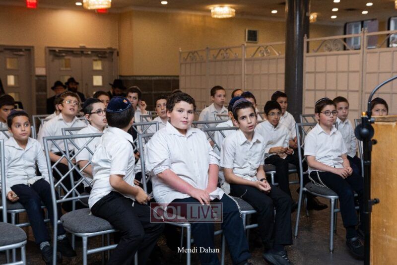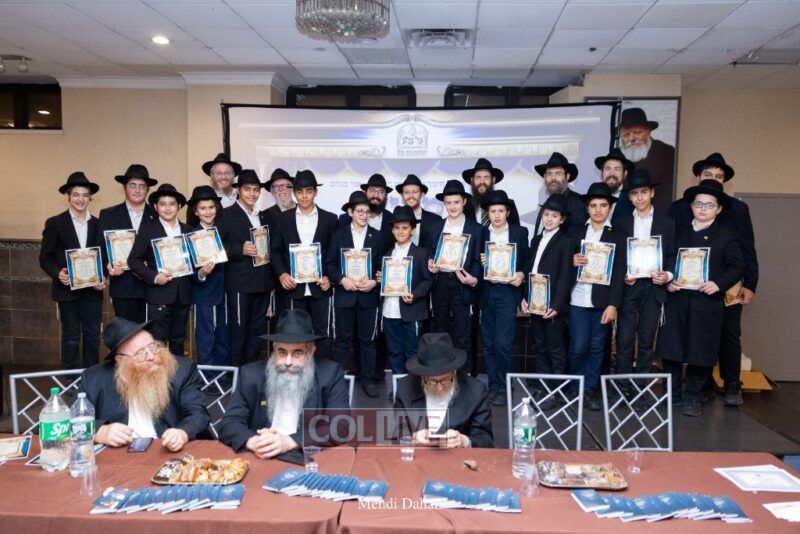 Rabbi Yossef Overlander, vice principal, awarded special Seforim vouchers to students who excelled in Mishnayos Baal Peh. The Menahel presented each student with a beautiful Cheder “Mincha Maariv” gift, thanking Hashem publicly for the privilege of working with a unique and special team of educators. He also thanked the event producers, Rabbi Avrohom Rainitz, Rabbi Chanoch Hecht, and Reb Shlomo Frishman.