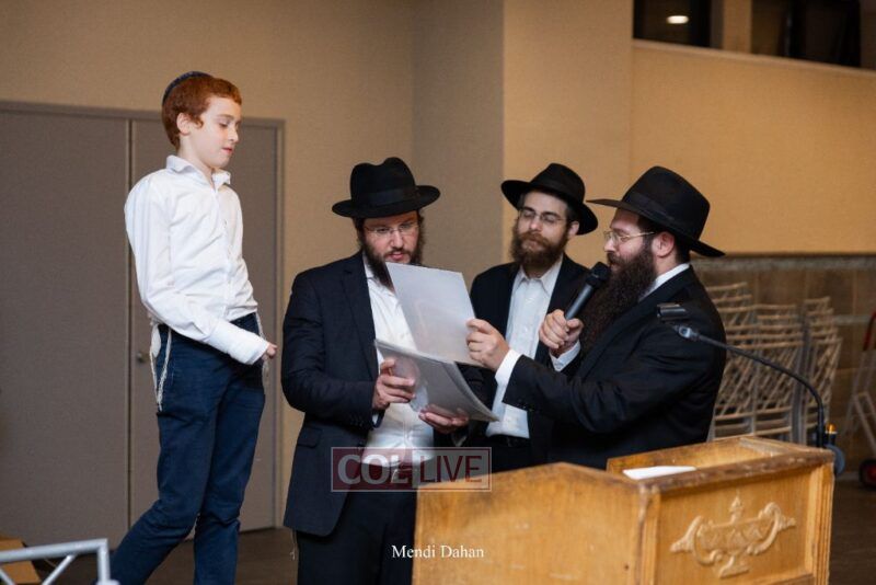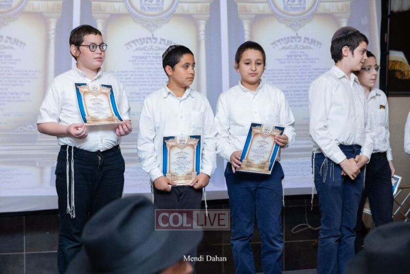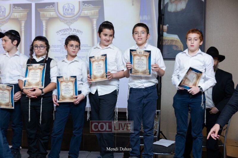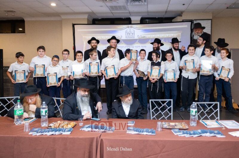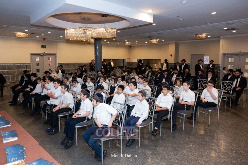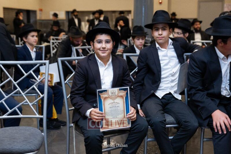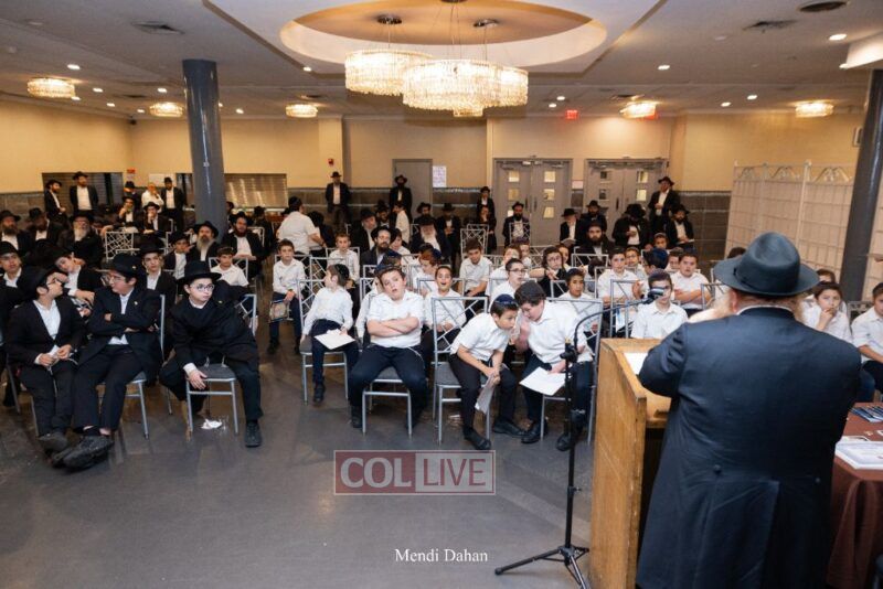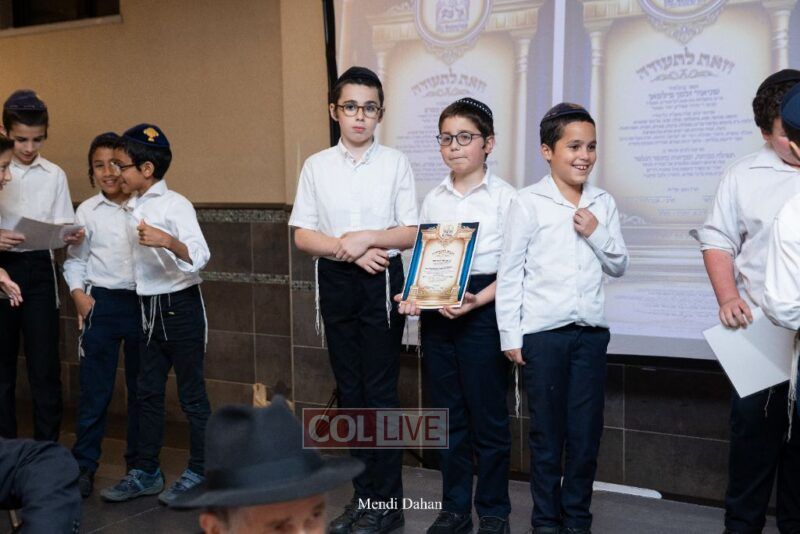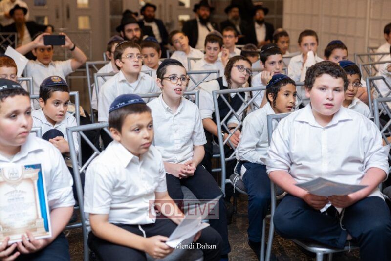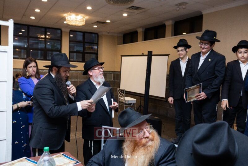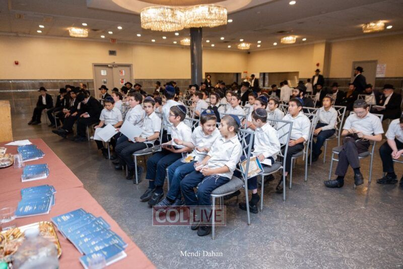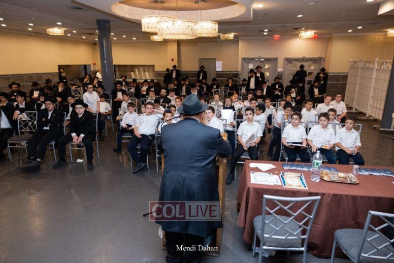 Rabbi Yossef Overlander, vice principal, awarded special Seforim vouchers to students who excelled in Mishnayos Baal Peh. The Menahel presented each student with a beautiful Cheder “Mincha Maariv” gift, thanking Hashem publicly for the privilege of working with a unique and special team of educators. He also thanked the event producers, Rabbi Avrohom Rainitz, Rabbi Chanoch Hecht, and Reb Shlomo Frishman.