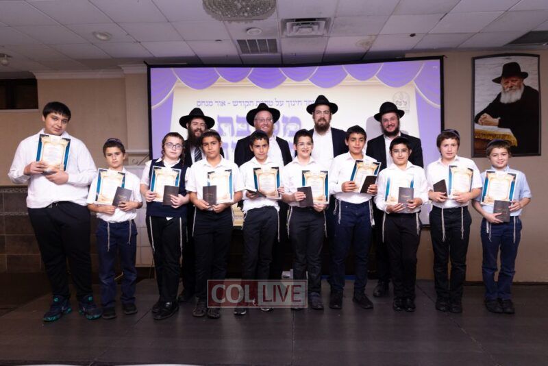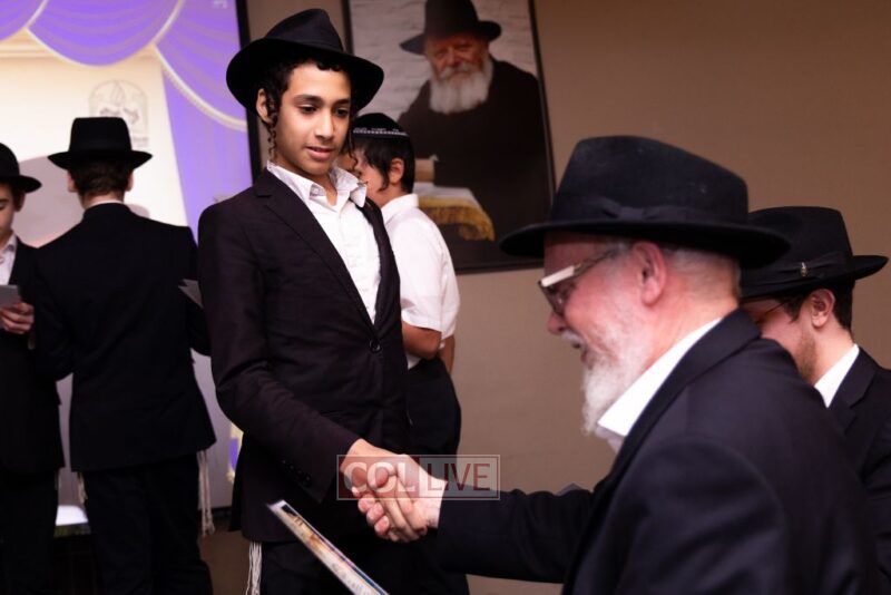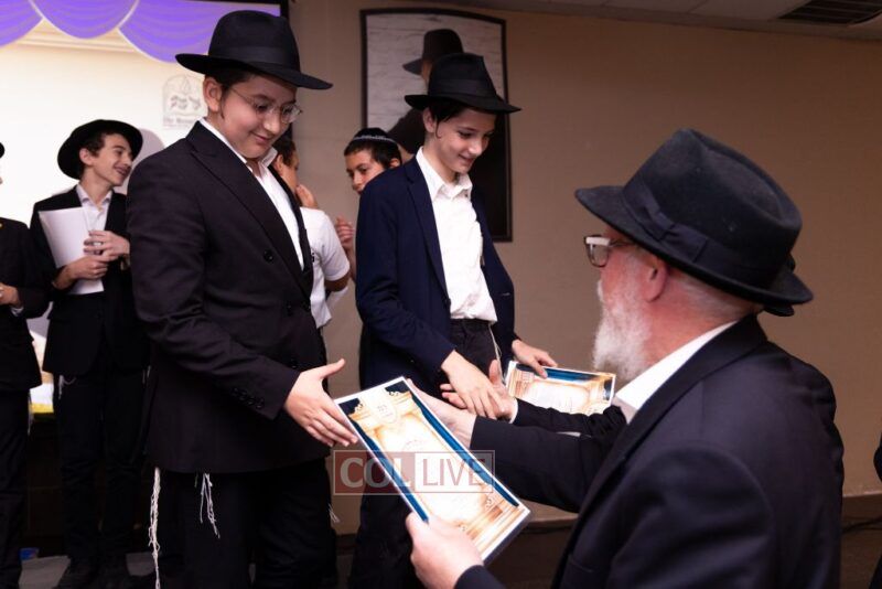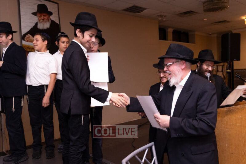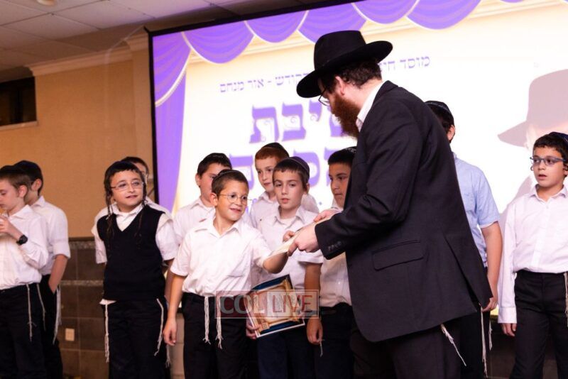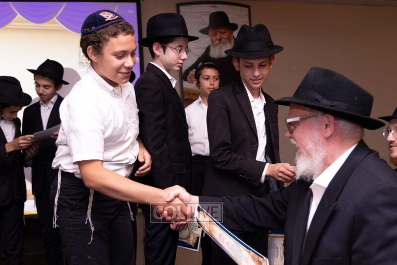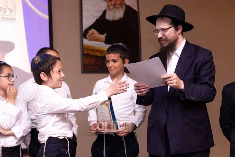 The Menahel Rabbi Menachem Mendel Dov Yusewitz then presented each boy with his end of year certificate while emphasizing the unique Shevach-praise chosen by his Melamed to define his unique light and addition this year to the class.