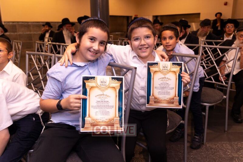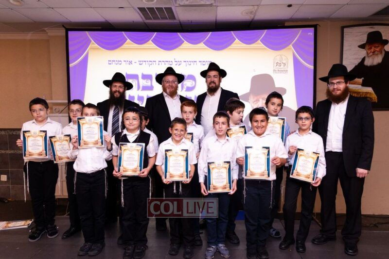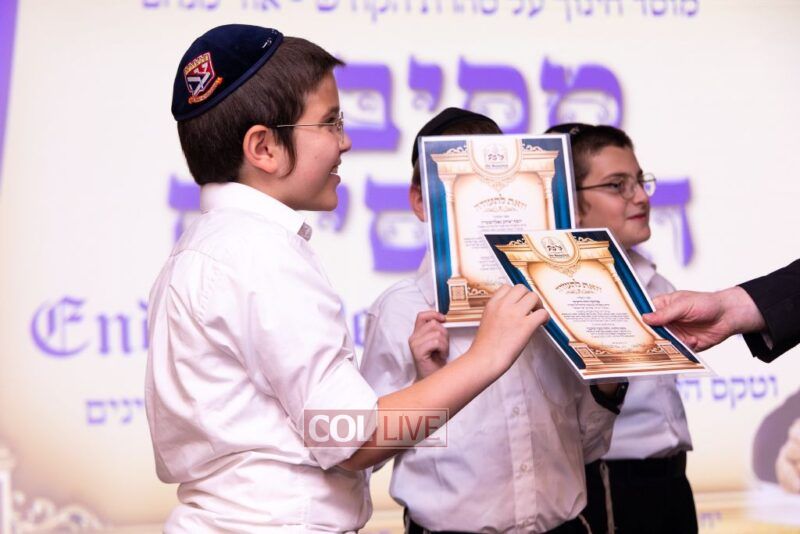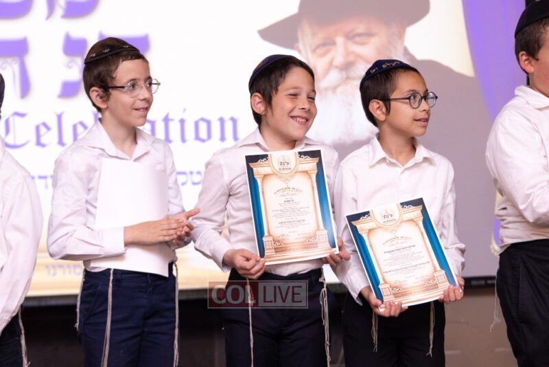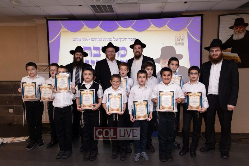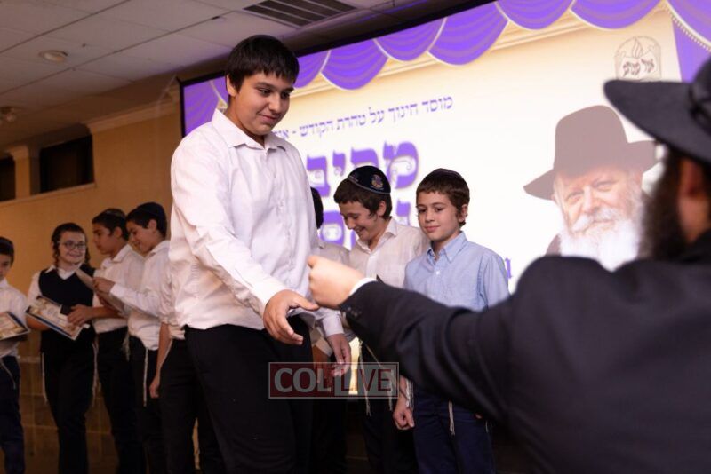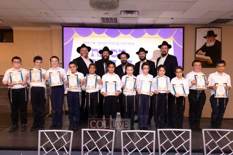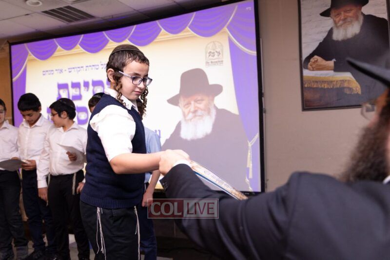 The Menahel Rabbi Menachem Mendel Dov Yusewitz then presented each boy with his end of year certificate while emphasizing the unique Shevach-praise chosen by his Melamed to define his unique light and addition this year to the class.
