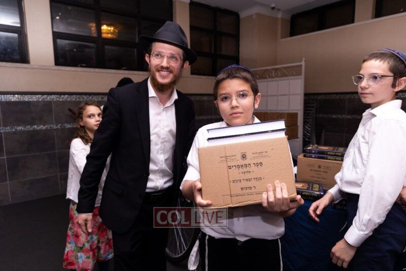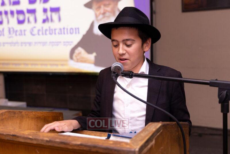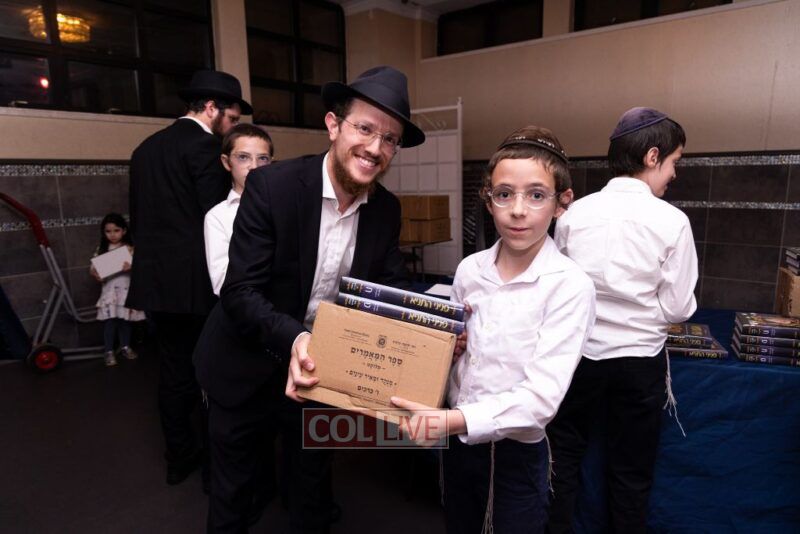 The vice principal Rabbi Yosef Overlander then thanked the producers of the event, Rabbi Avrohom Rainitz and Reb Shlomo Frishman. Then he called upon Rabbi Chanoch Hecht – who coordinated the Tanya Baal Peh program- bring the event to its culmination and highlight: Talmidim receiving their Seforim gifts for their major accomplishments in Tanya and Mishnayos Baal Peh.