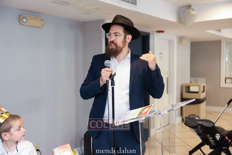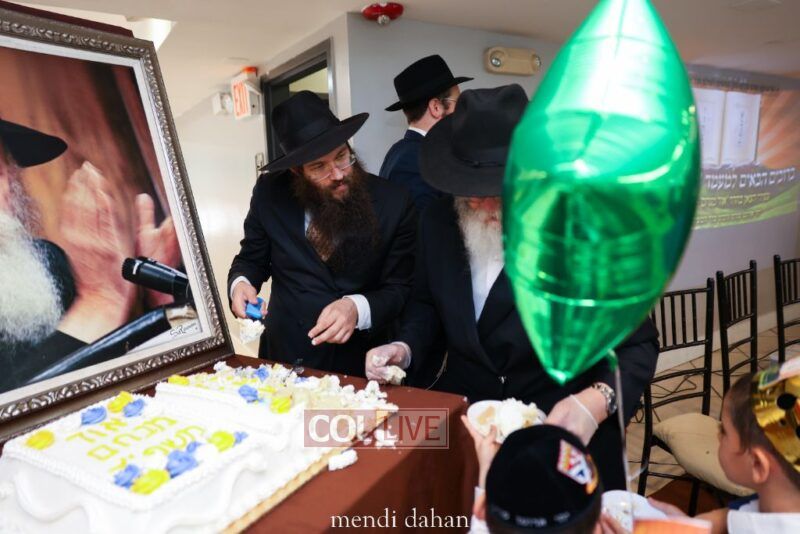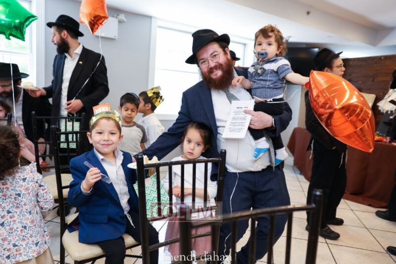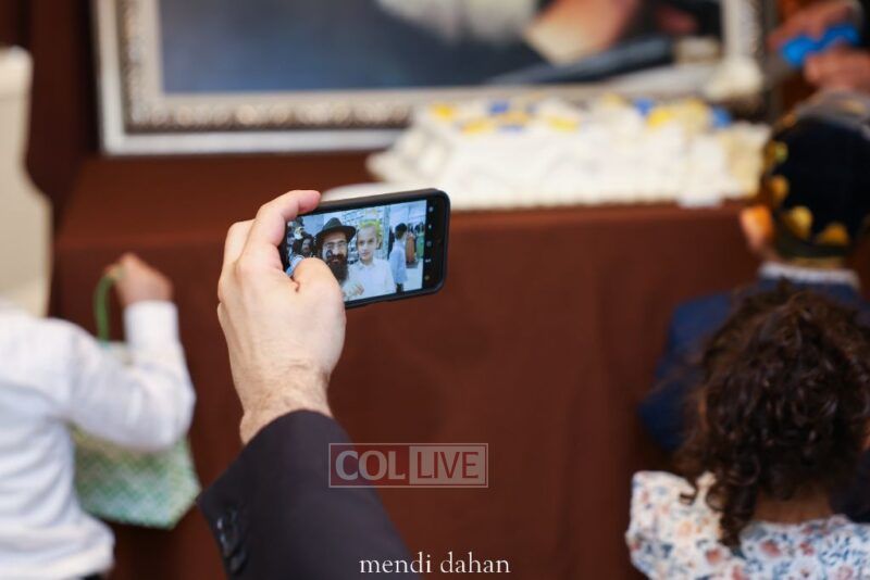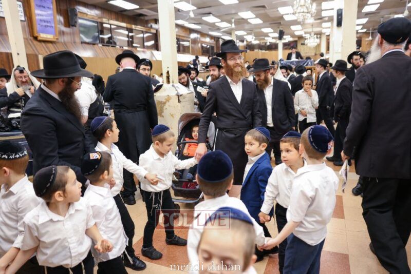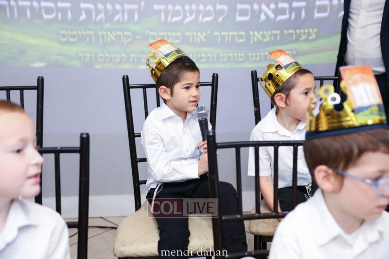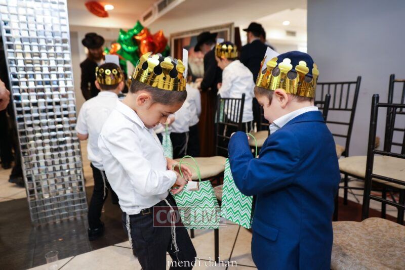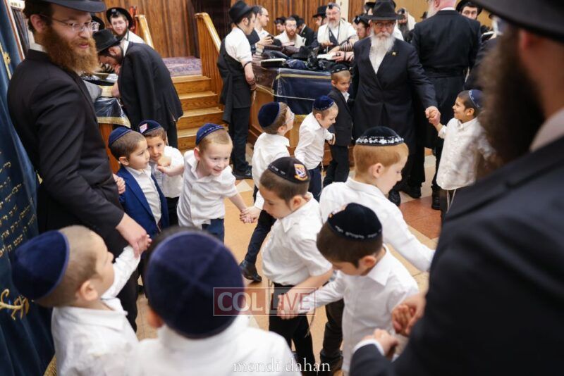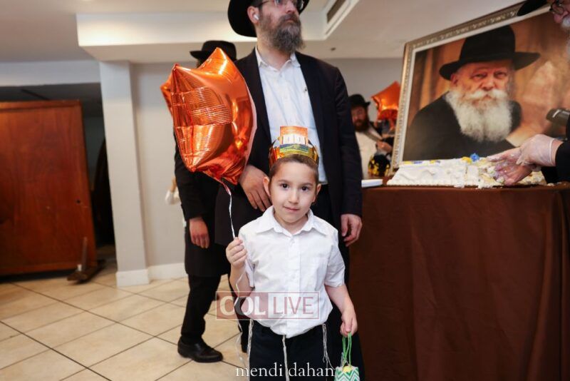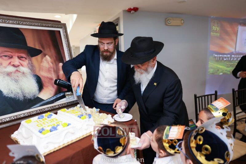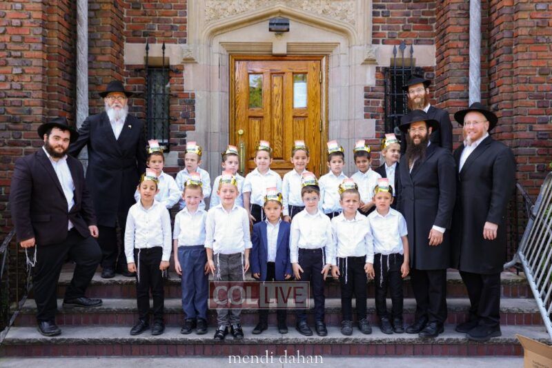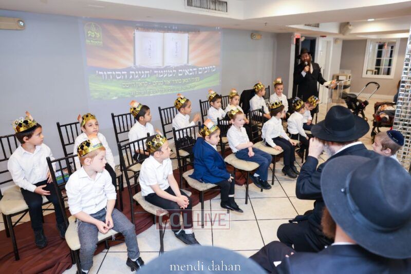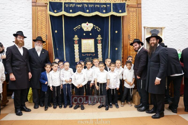 The children then received Birkas Kohanim from the Menahel Hamosdos Rabbi Menachem Mendel Hakohen Hendel, followed by singing and dancing. Each student was presented with their very own Siddur and a special cake from their Melamed.