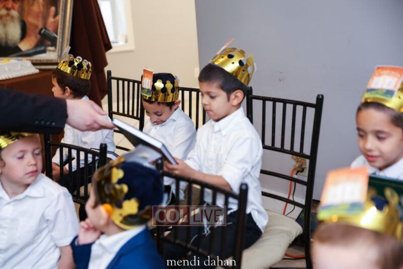 The day began and they were warmly greeted like every morning by their Melamed, Rabbi Menachem Mendel Nemirovski, and Rabbi Levi Nemirovski. Today, the culmination of the Hachonos with their Melamed for davening with their first Siddur in Gan Eden Hoelyon.