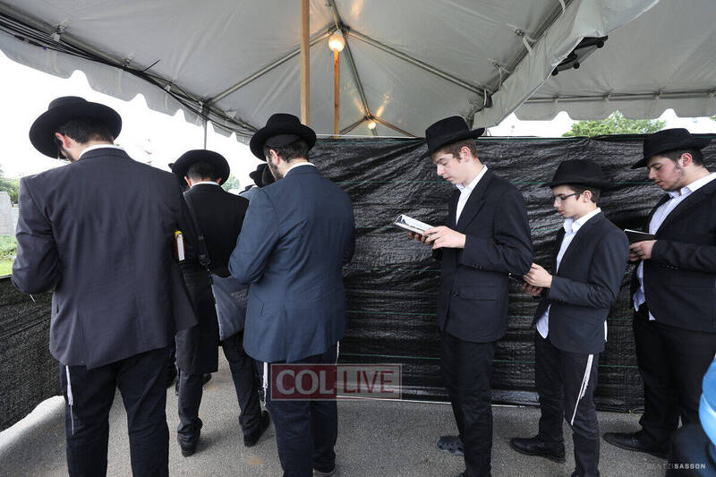 Special tents were set up in the Old Montefiore Cemetery to accommodate the long lines. Videos of the Rebbe were playing in a loop as many began their davening and reading Tehillim while they wait to enter.