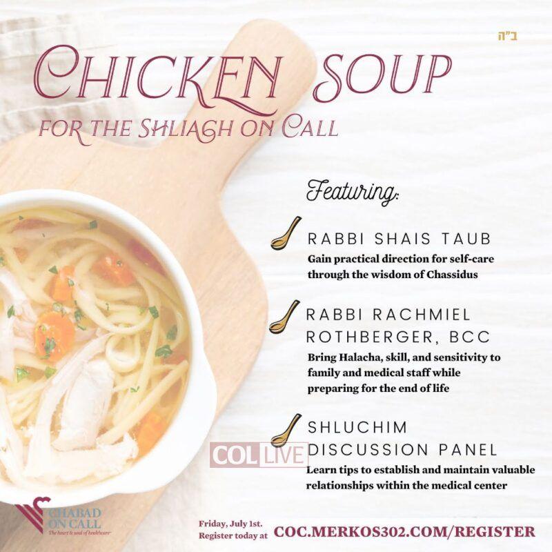 The upcoming “Chicken Soup for the Shliach on Call” conference gives Shluchim tools and inspiration for navigating hospital visitations, illness, and grief. Hosted by Chabad on Call, the conference will run from 9 am, to 2 pm in the Jewish Children’s Museum, this July 1st, 2 Tammuz.