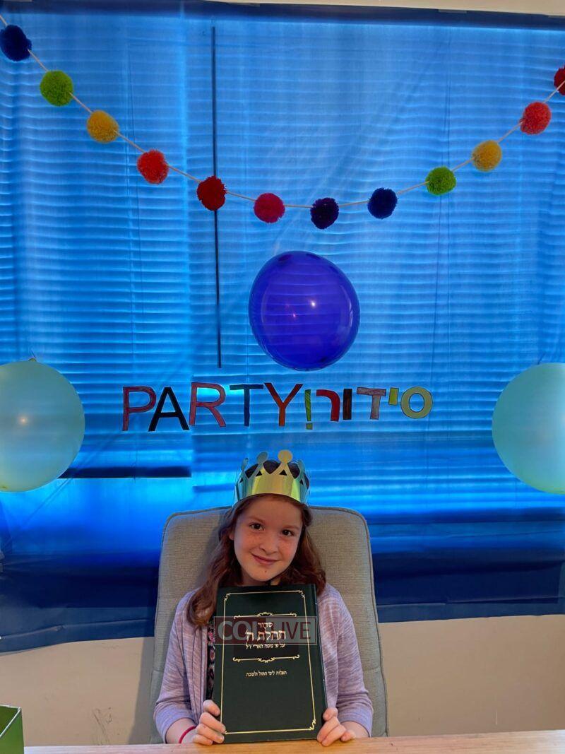 The celebration is a culmination of a year’s hard work of students learning Nekuda by Nekudah until being able to now fully read. Before the program, each student received a special package in the mail complete with a crown, a treat, backdrop and a Siddur for the party.