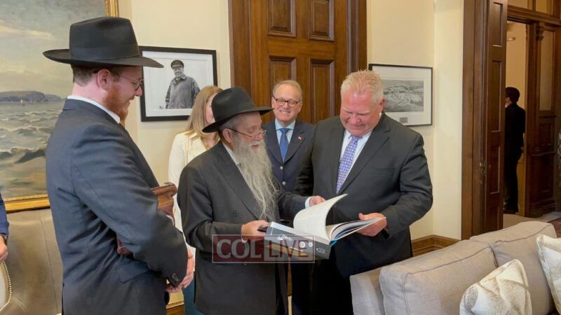 In honor of the Rebbe’s birthday, Ontario Premier Doug Ford presented Head Shliach Rabbi Zalman Grossbaum with a proclamation recognizing the 35 Chabad Centres’ impact in the Province of Ontario.
