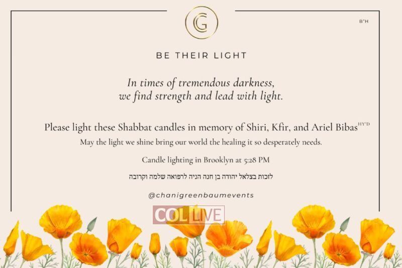 An initiative has been launched to encourage Jewish women and girls to light Shabbos candles this Friday night in memory of Shiri, Ariel and Kfir Bibas HYD who were murdered while in captivity by Hamas in Gaza.