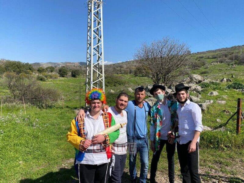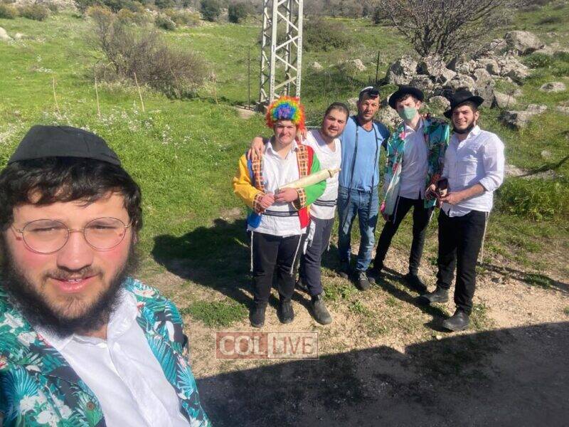 One middle-aged man who was stopped by the Bochurim excitedly accepted the offer to put on Tefillin and insisted that we take a picture with the beautiful snow-topped Har Chermon in the background, which immediately led to an exciting spirited Purim dance.