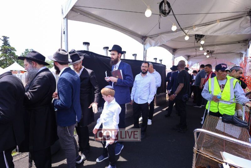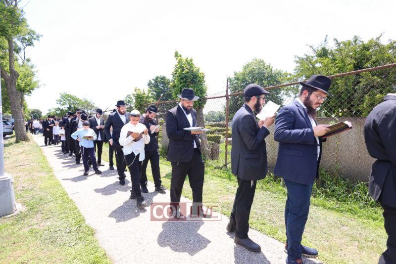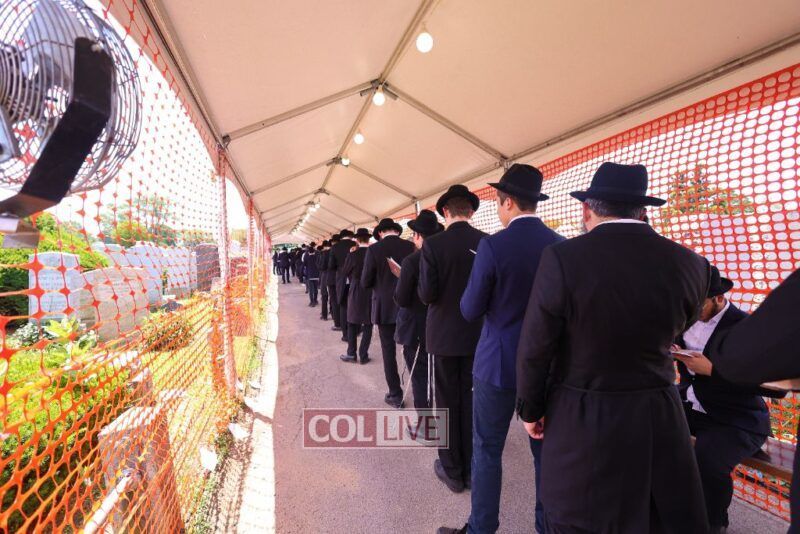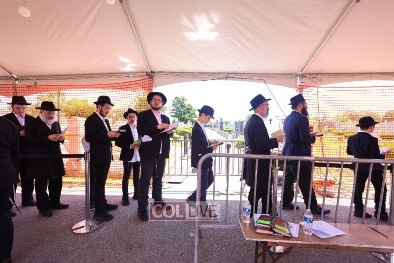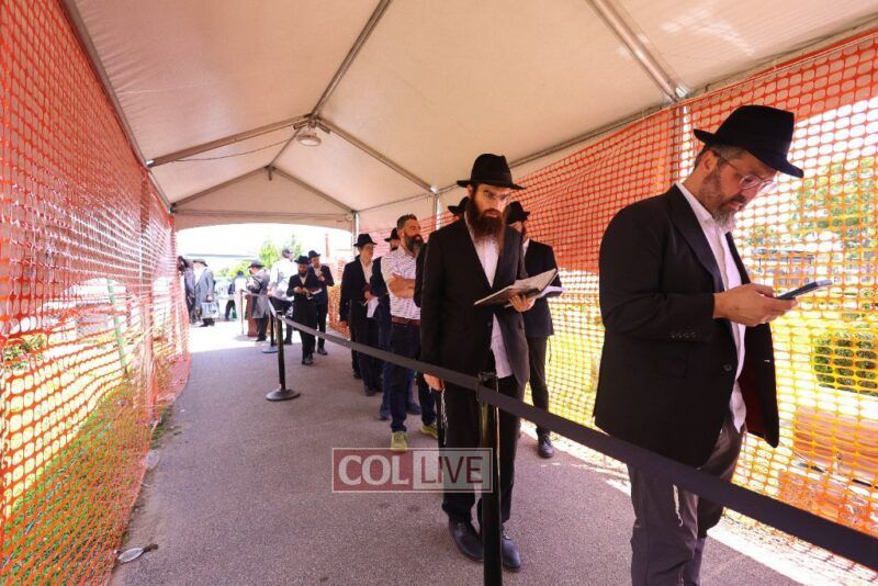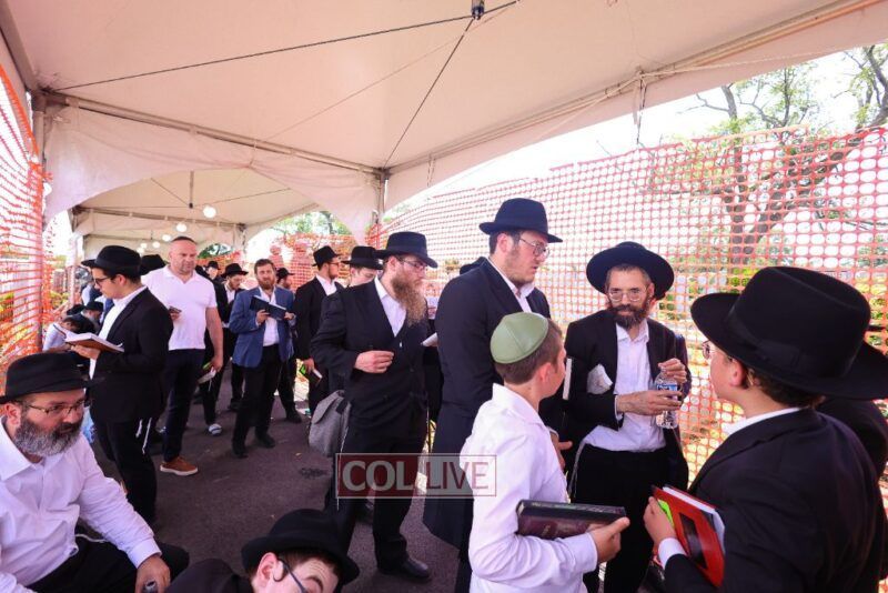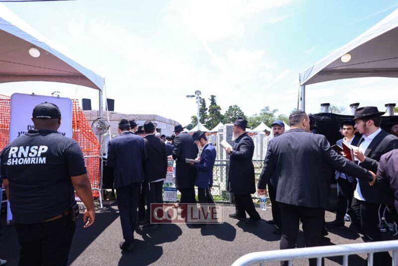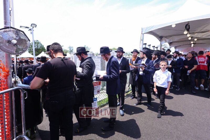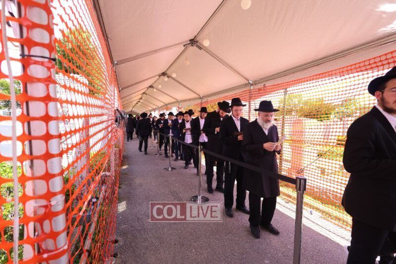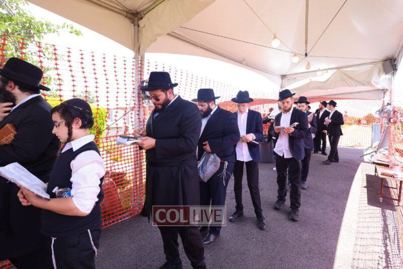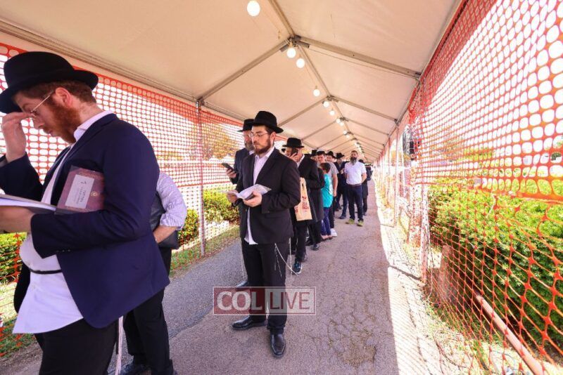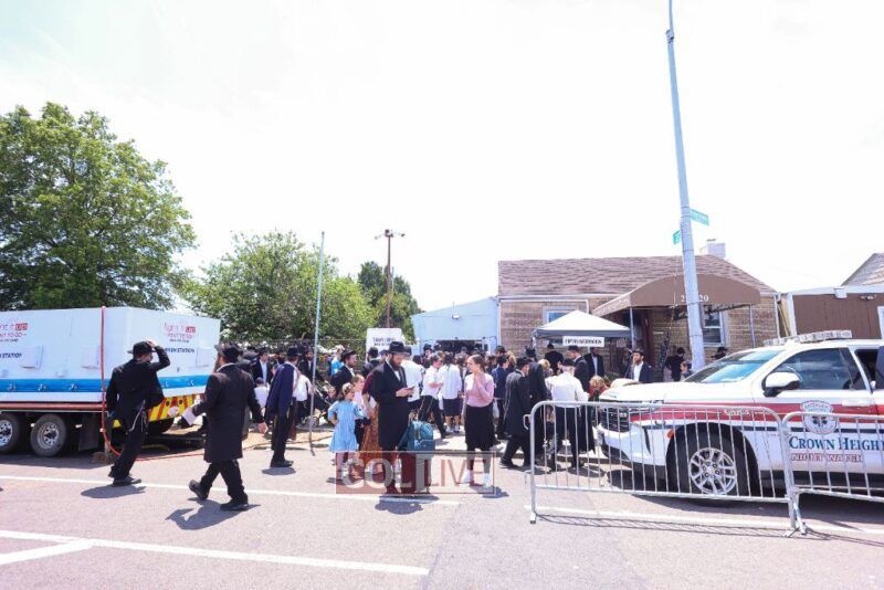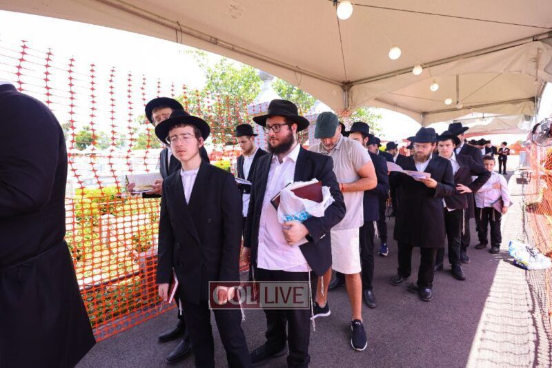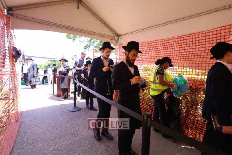 Exiting calmly through the newly constructed northern door of the Ohel building, known as the “Candle Room,” visitors quickly reached stations offering cold and hot beverages, sandwiches, fruits, and snacks to replenish. Many Chassidim fast until they enter the Ohel, and under the sweltering New York Tammuz heat—reaching 100°F—they permitted themselves only water sipped from coolers placed along the extensive line, which during peak hours meant waiting up to three hours.